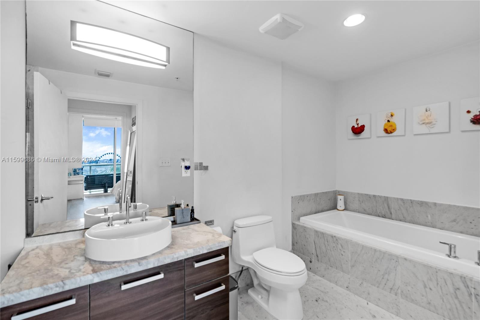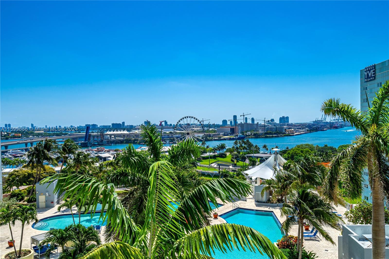 In the heart of vibrant downtown Miami, enjoy spectacular unobstructed views facing the three pools, palm trees, the Bay and the Port of Miami. Nice floor plan 1bed/1bath, with a balcony large enough to enjoy the breeze. Tile floor, washer and dryer in the unit, large walking closet, storage unit bonus and assigned parking space. The Vizcayne South condo offers a unique service, exceptional and unique location, with one of the best amenities in town : multi level gym, spa, 4 pools, bar, 24h concierge/security. Across from Bayside Mall, Kaseya arena, Museum Park, Adrienne Arsht center for the Arts. Miami International Airport and the beaches are a short drive away! lso great for investors, with the opportunity to do short term rent (minimum 30 days).