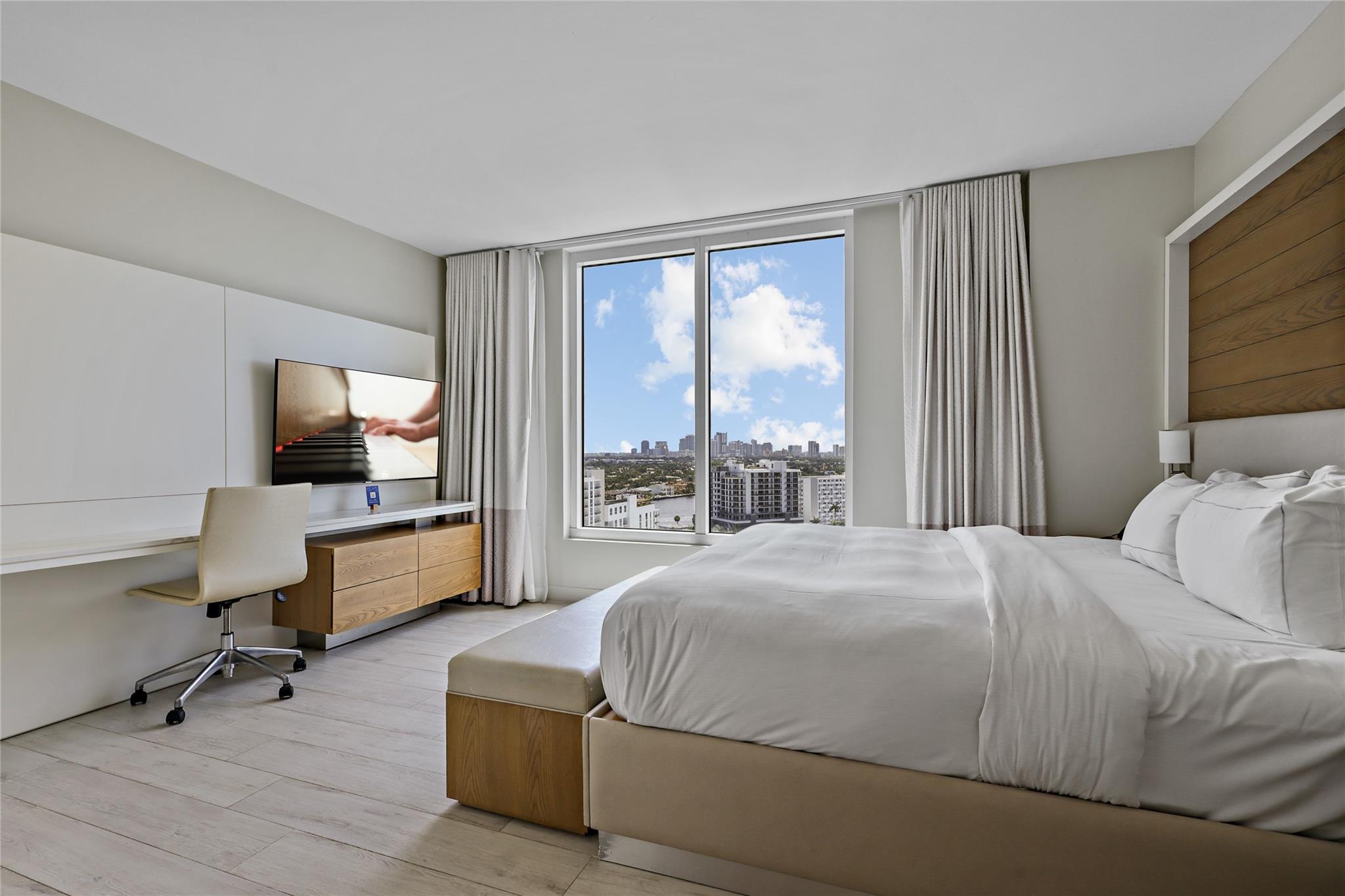Welcome to the luxurious Q Club condo hotel! This fully furnished two-bedroom, two-bathroom unit boasts floor-to-ceiling impact windows and a well-positioned balcony with stunning ocean views. Enjoy first-class resort amenities including restaurant bars, concierge, 24-hour fitness center, spa, tropical pool deck, room service, and business center. Managed by Hilton's rental program, this is an unparalleled opportunity for elegant coastal living.