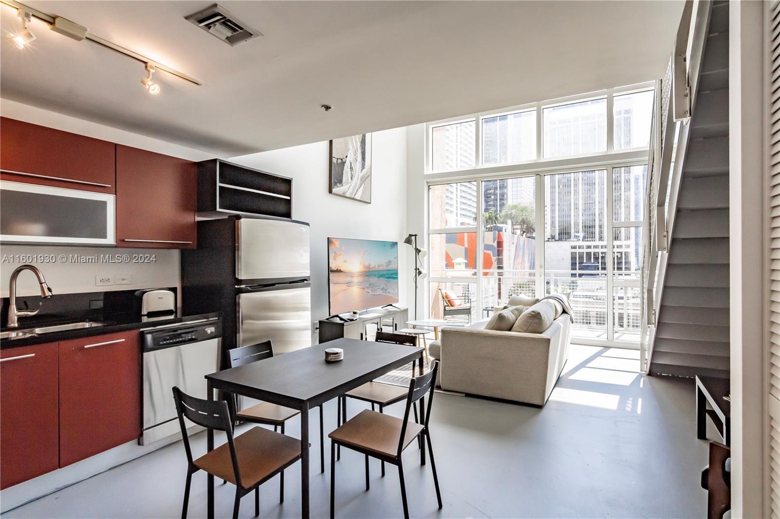 Fully Furnished turnkey sophisticated urban living in this exceptional downtown loft. This two-story loft features all the upgrades a homeowner could desire including 19-foot floor-to-ceiling impact windows, electronic blinds and an upgraded kitchen, bathroom, and tile floors to complement your upscale lifestyle. It also includes a washer/dryer, assigned parking space on the same floor and valet service. Enjoy 4 pools with a poolside Tiki bar, indoor and outdoor hot tubs, a media room, a private spa, a party room with a pool table, a kitchen, and a bar. The unit comes with an extra storage space. The apartment is available for rent with a minimum lease of 30 days making it appealing to investors that focus on midterm rentals.