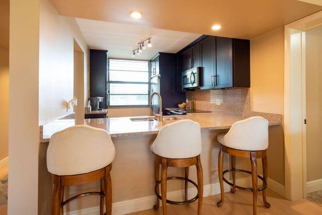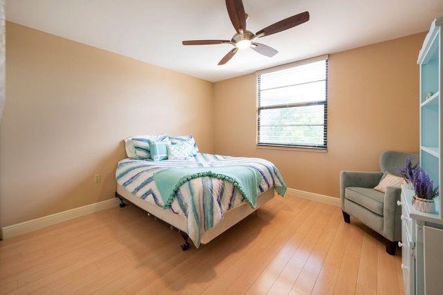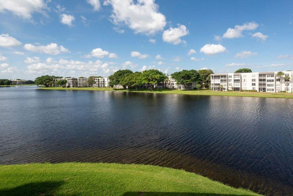 This unit has the WOW Factor! Beautifully Updated, Lakefront Corner Unit, Very Private no one walks past your Bedroom. Open Kitchen with Large Quartz countertops for Bar Top Seating with SS Appliances and extra Counter space for your Home Coffee Shop. Lovely Laminate Flooring, Hurricane Impact Windows, Updated Bathrooms with Seamless Shower Doors, Big Walk-In closet in the Primary Bedroom and Lots of Closets in Guest. Community has Pool & Jacuzzi, you have access to the Private Country Club with Tennis, Gym, Pool, Sports Bar, Tot Lot, Restaurant, BBQ/Picnic, Golf. Water and Trash included in Monthly Assoc Fee. Sorry No Pick Up Trucks allowed, No Renting for first 2 years of ownership One Assigned parking spot plus Guest.