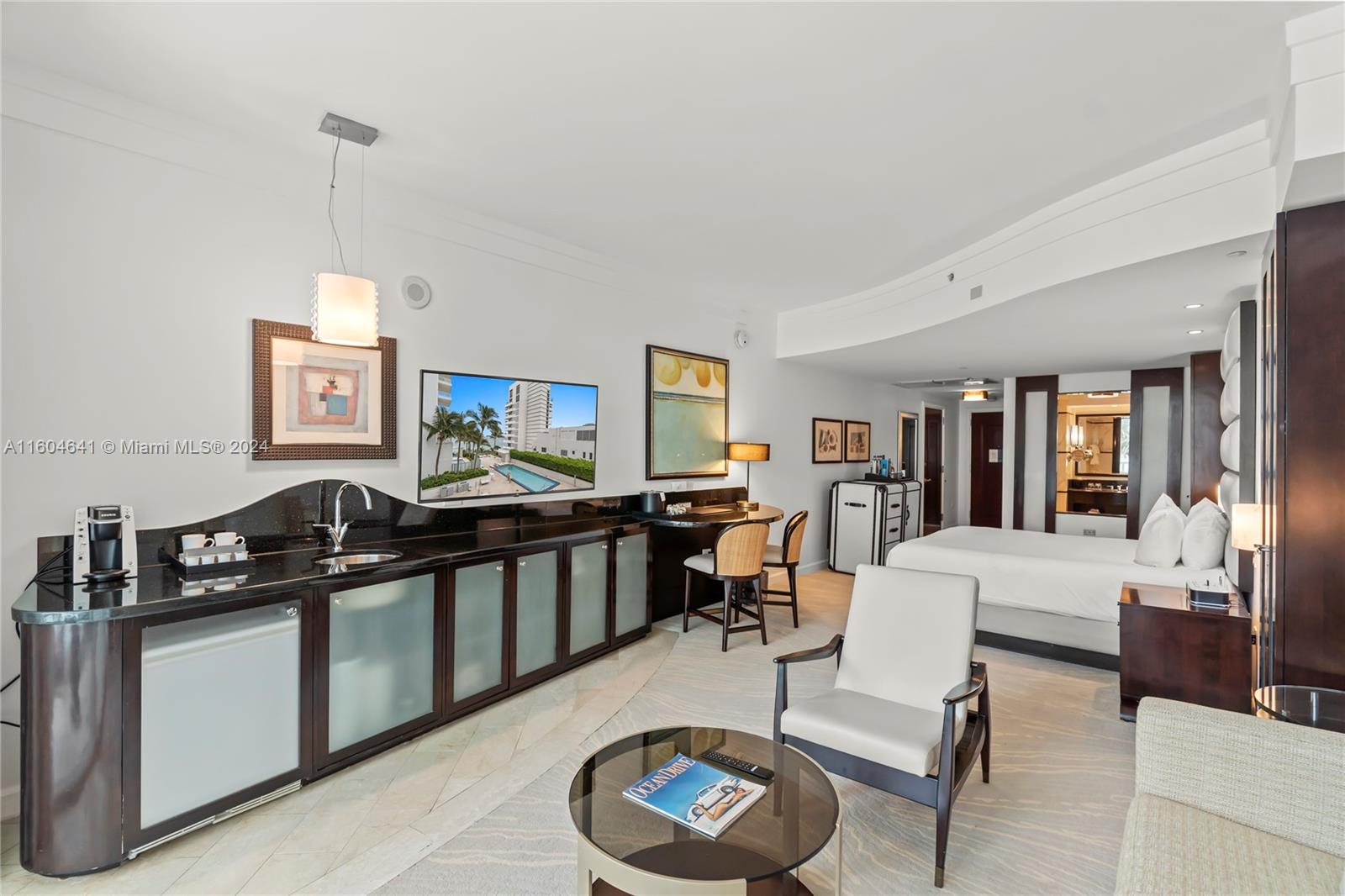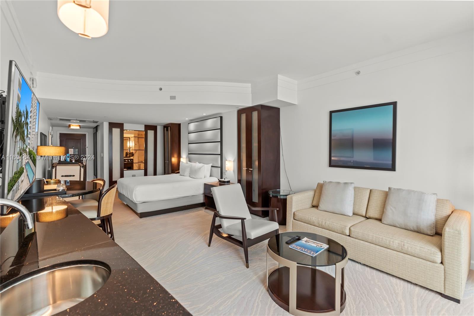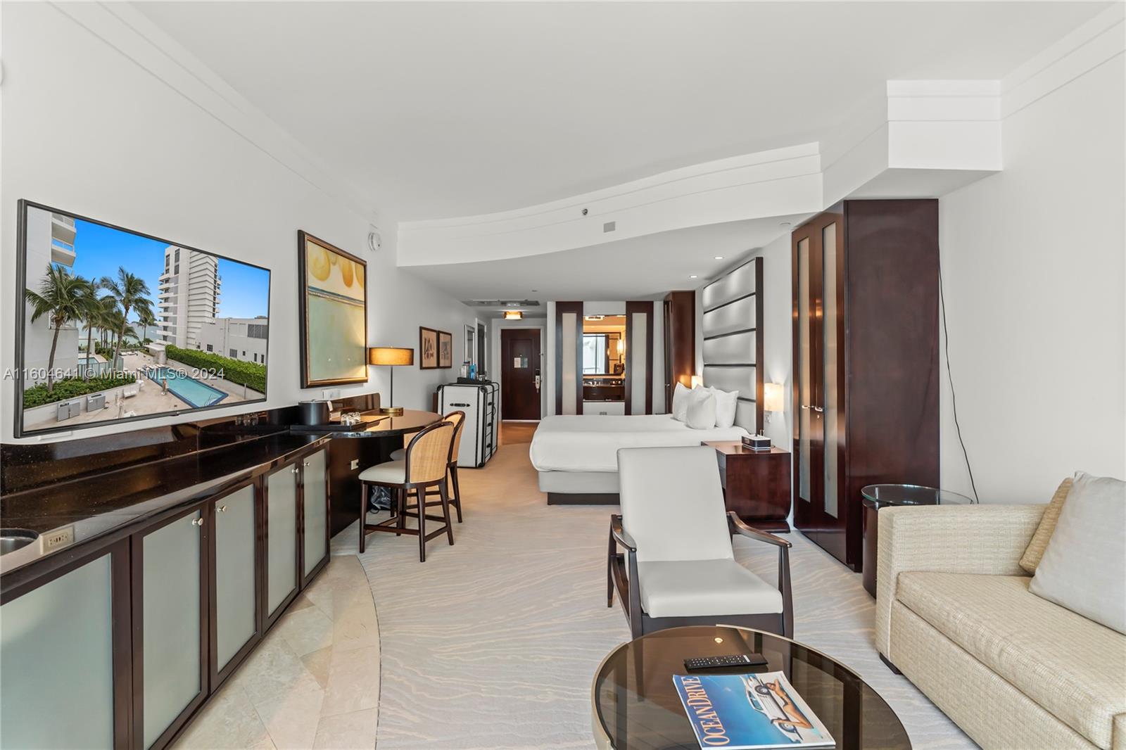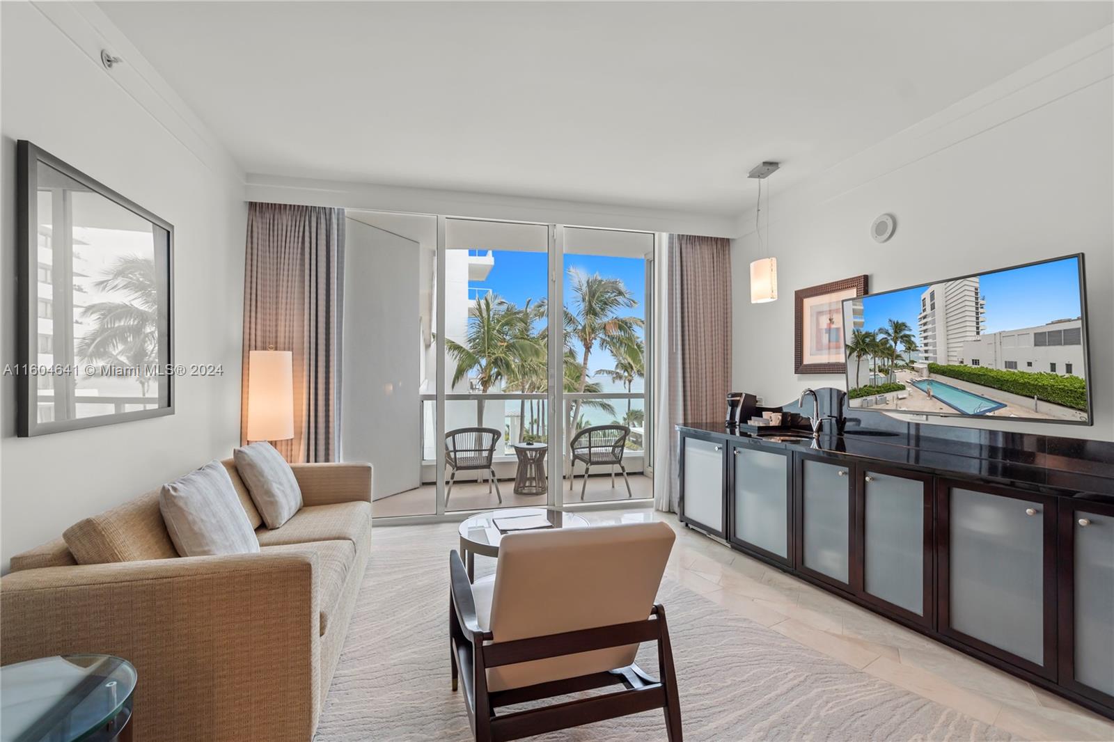 Stunning Fontainebleau III Jr Suite with unobstructed direct ocean and pool views. Enjoy full-service, vacation style living with luxury amenities on 22 oceanfront acres in Miami Beach. Furnished turnkey with a king bed and sleeper sofa. (Door in unit connects to the #721 unit next door that is also available for sale.) Option to enroll in hotel rental program & receive income while away! The Fontainebleau resort offers award-winning restaurants, LIV night club, Lapis spa & state-of-the-art fitness center, bakery, shops, full-service salon and more. Maintenance fees include all utilities: AC, internet, cable, local calls, electricity, valet + daily free breakfast in owner's lounge. Please click the virtual tour link to see a video of the property.