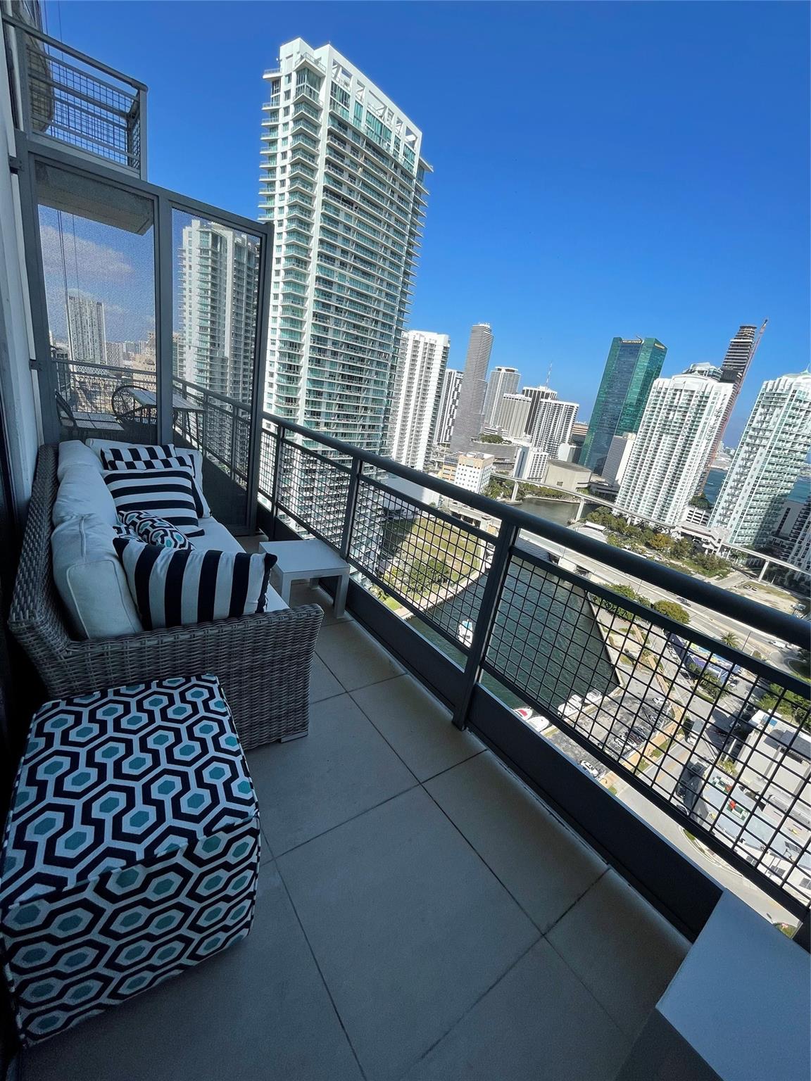 BACKUP OFFERS! 180 degrees water, skyline views. 2 story loft, sub penthouse level upgrades are motorized blinds, LARGEST 1 Bed floor plan with full walk-in closet, best view lines in the building east facing ! modern railings, furniture negotiable. I have lived here since 2010. This is a great area and a great building, the mgmt company is fantastic,The elevators & valet are fast and you will never wait long, Very friendly residents and extremely safe, all residents must be screened, Brickell is one of, if not the hottest neighborhoods in Miami, and the river district is equally hot, with 2 current new developments starting at $900/sqft, not only is this a great place to live but a wise investment!! Great for boat lovers, tons of amenities and activities laundry, car wash service