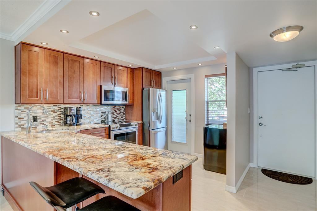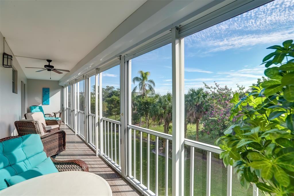 Beautifully remodeled fully furnished 2/2 with gorgeous views in an over-55 building in the desirable Hillcrest community. Light, bright and spacious, with a screened double balcony accessible from living areas and primary bedroom. Relax and enjoy your morning coffee or afternoon margarita. Porcelain tile throughout. Open kitchen has granite countertops, wood cabinets, SS appliances. Lots of cabinet and closet space. Brand new A/C. Storm shutters. Parking space right in front, steps from elevators and laundry room. Amenities include fitness room next door, pool and BBQ area in adjoining park, clubhouse with kitchen, tennis and pickleball membership available. Minutes from major highways, shopping, downtown nightlife and beaches. No pets. 20% down per association. No leasing