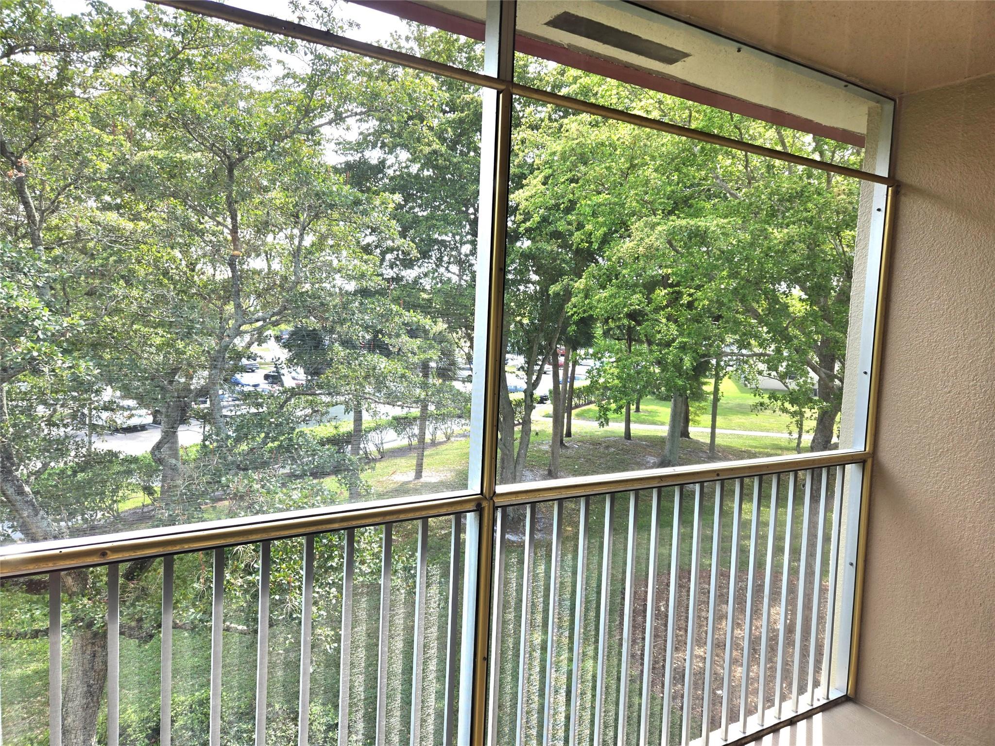 CLEAN AND READY FOR MOVE IN. Top floor unit that has been meticulously maintained! This is a 1/1/1 with lots of room! Come into your LARGE living/dining room combination with kitchen at the right. Walk back to the LARGE master suite with room for all of your furniture. The master includes a nice SCREEND BALCONY and your own master bathroom with walk in shower. AC split keeps this condo nice and cool in the summer, open your slider and embrace the temperate breeze of the Florida winter. You have a half bath in the front off the hallway for guests. Carpet is newer & has been deep cleaned. Enjoy the retirement lifestyle with all of the amenities, including clubs & shows, friendly lifestyle of Century Village, centrally located, close to I-75, shopping and restaurants.