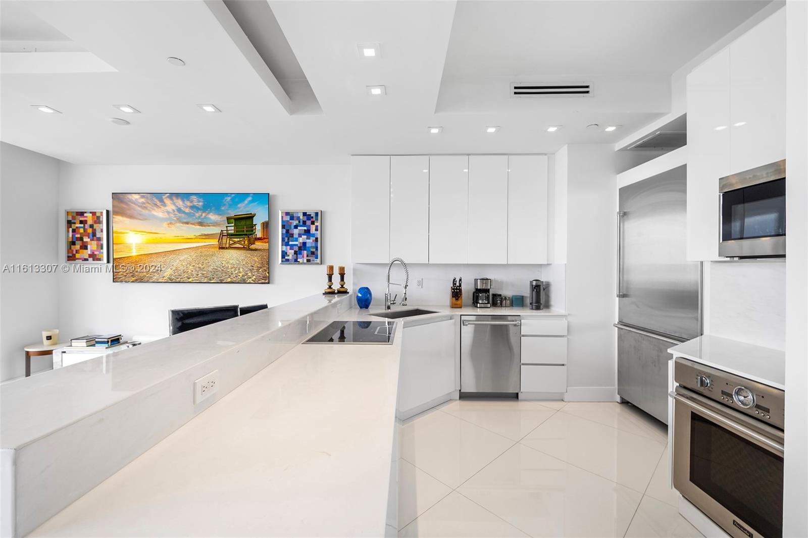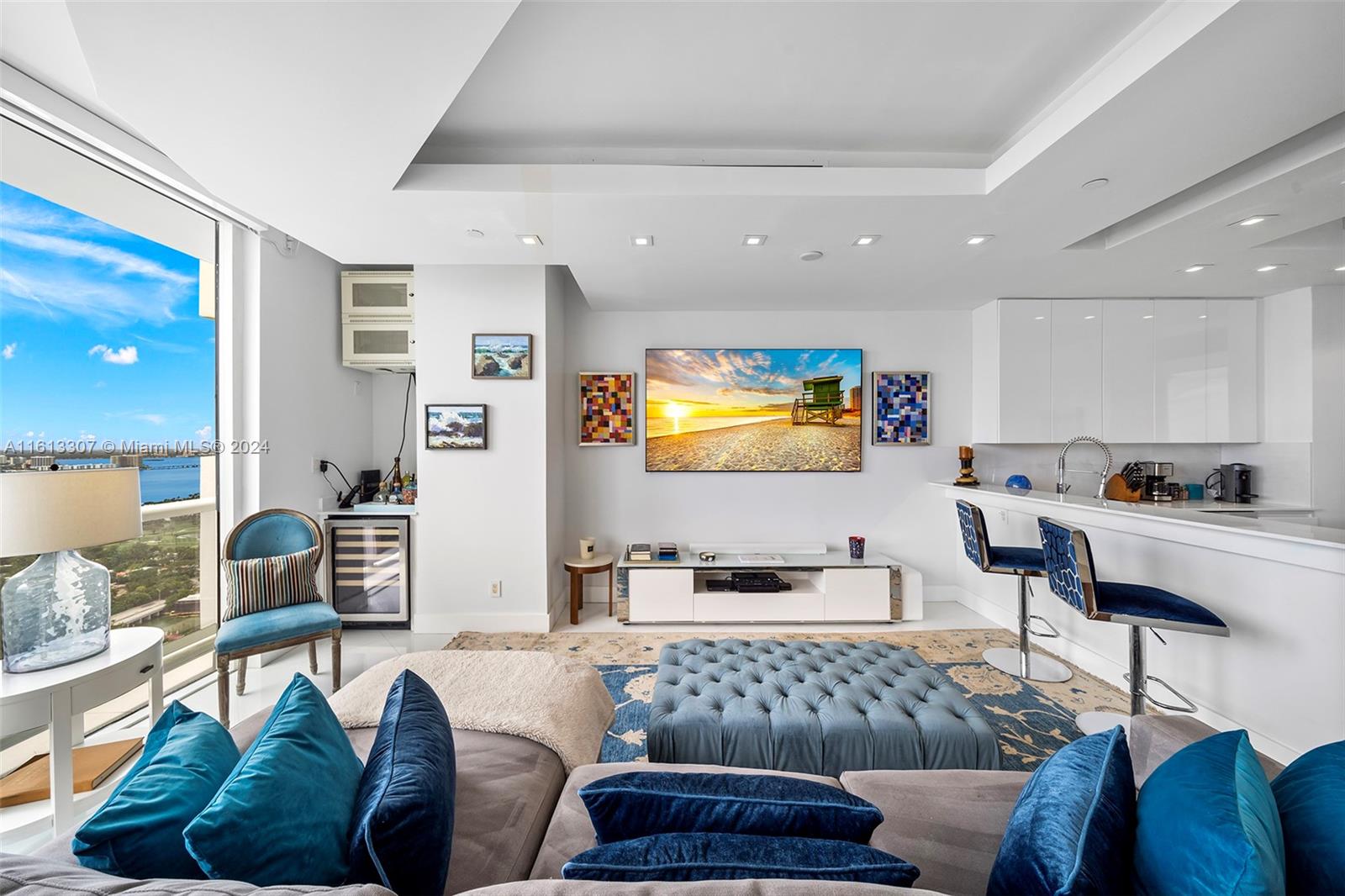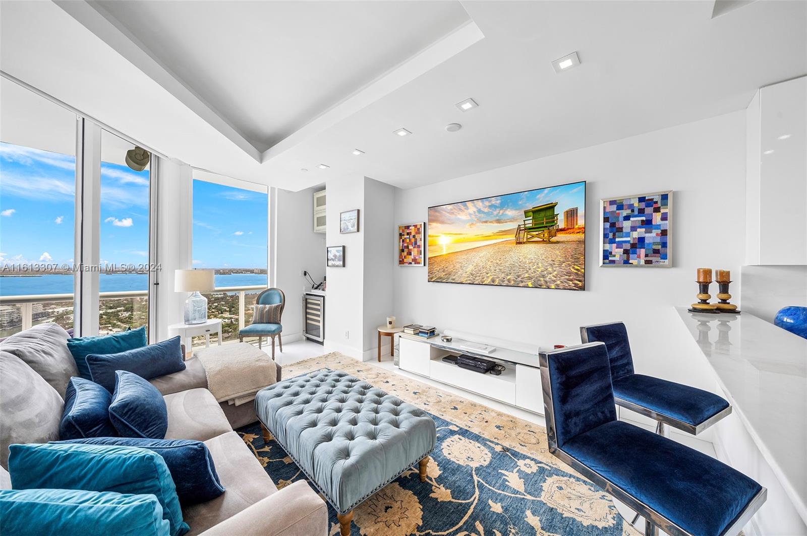 Experience luxury living in this remodeled 1-bedroom, 2-bath penthouse with breathtaking bay and city skyline views. The condo features floor-to-ceiling windows, flooding the space with natural light, complemented by electric shades, custom LED lighting, high ceilings, and gorgeous floors throughout. The state-of-the-art kitchen, equipped with top-tier appliances, flows seamlessly into a spacious living and dining area. The expansive suite bedroom is a true showcase of elegance. Situated in the prestigious Blue Diamond Condo, enjoy unrivaled beachfront living with five-star resort-style amenities.