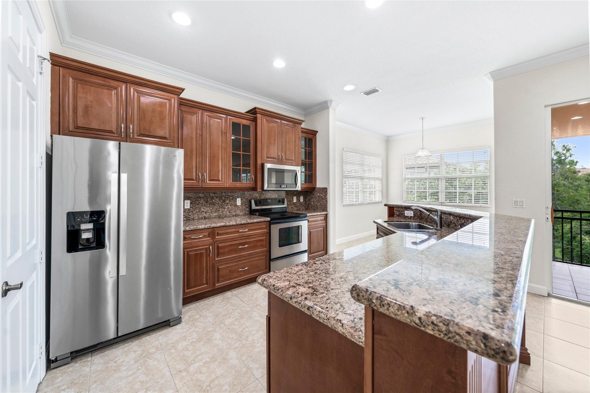 Wow! This 3 bedroom, 2 bathroom, 1-car garage CORNER UNIT offers beautiful & private WATER VIEWS and is completely move-in ready! Enjoy low maintenance living, while also having access to all of Heron Bay's resort-style amenities & Parkland's A-rated schools! Outstanding upgrades & features include: crown molding throughout; stone-look tile in all living areas & brand new Stainmaster carpeting in bedrooms ('24); newly painted interior & garage ('24); brand new A/C ('24); new hot water heater ('23) & garage door opener ('24); open kitchen w/wood cabinets, granite countertops & stainless steel appliances (newer dishwasher, refrigerator, garbage disposal, microwave); split bedrooms; walk-in closets; private garage + double-car driveway & screen-enclosed patio w/stunning views! Don't miss it!