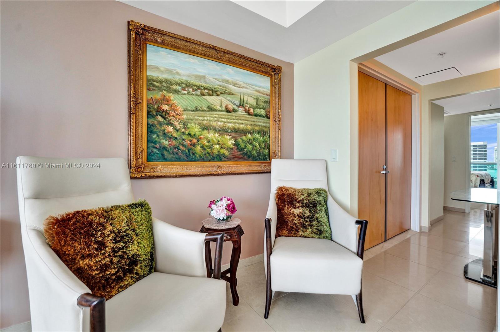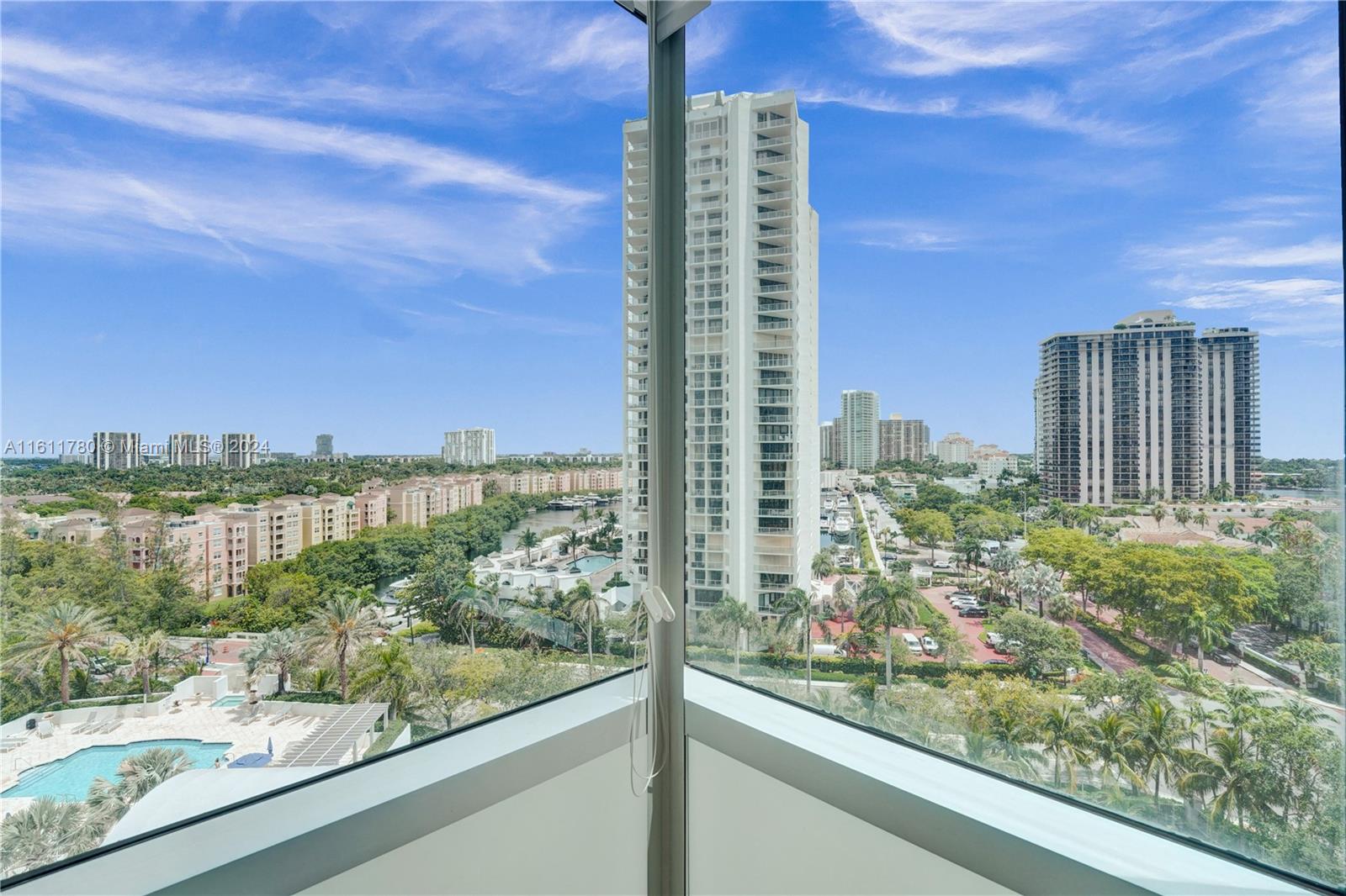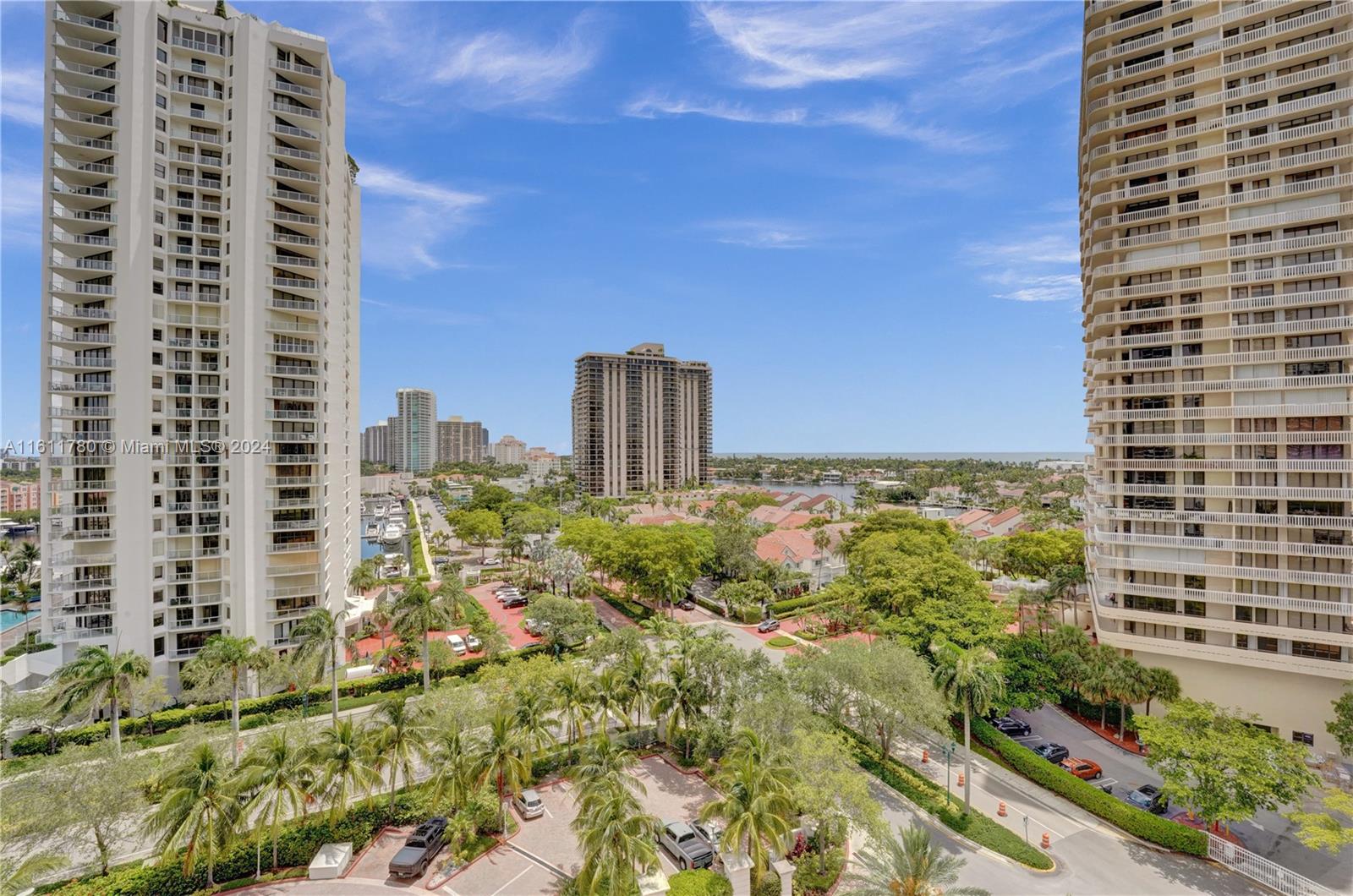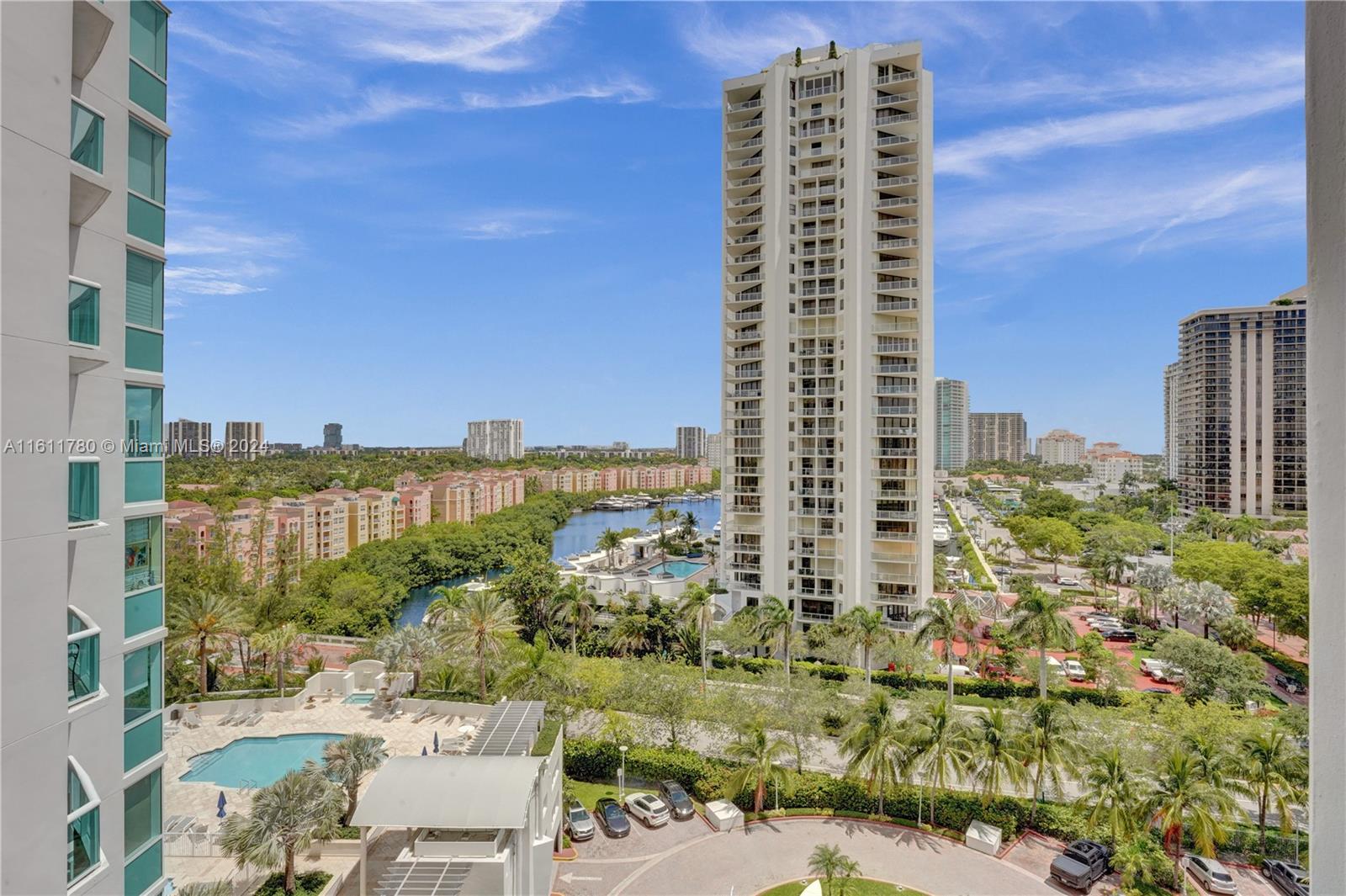 Lovely condo situated in The Parc at Turnberry in the heart of Aventura, boasting views of the Intracoastal, Ocean, and marinas. The unit offers a private elevator and foyer. Kitchen with SS appliances, wood cabinets, granite countertops, tiled backsplash and a stylish breakfast nook. Spacious 2 BD, 3 BA, in addition a versatile closed den with closet that can serve as a third bd. or office, with a full bath next to it. Primary BD features two separate balconies, primary & second BD have its own En-suite bathroom. W/D, Shabbat elevator and Impact windows. Enjoy five-star amenities - pool, kids pool, Jacuzzi, men & women's spa, massage rooms, gym, billiard & party room, business center & children's tot lot. Two pets up to 35 lbs. are welcomed conveniently located near houses of worship.