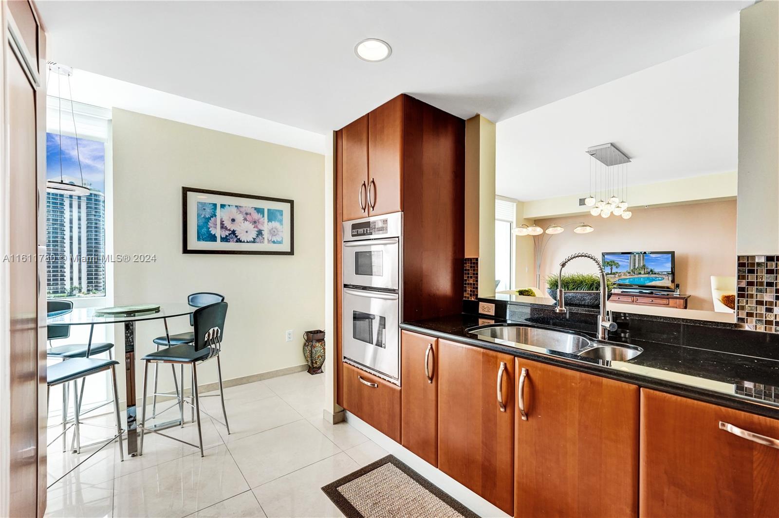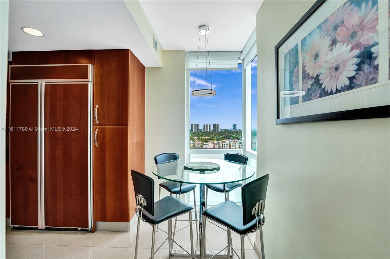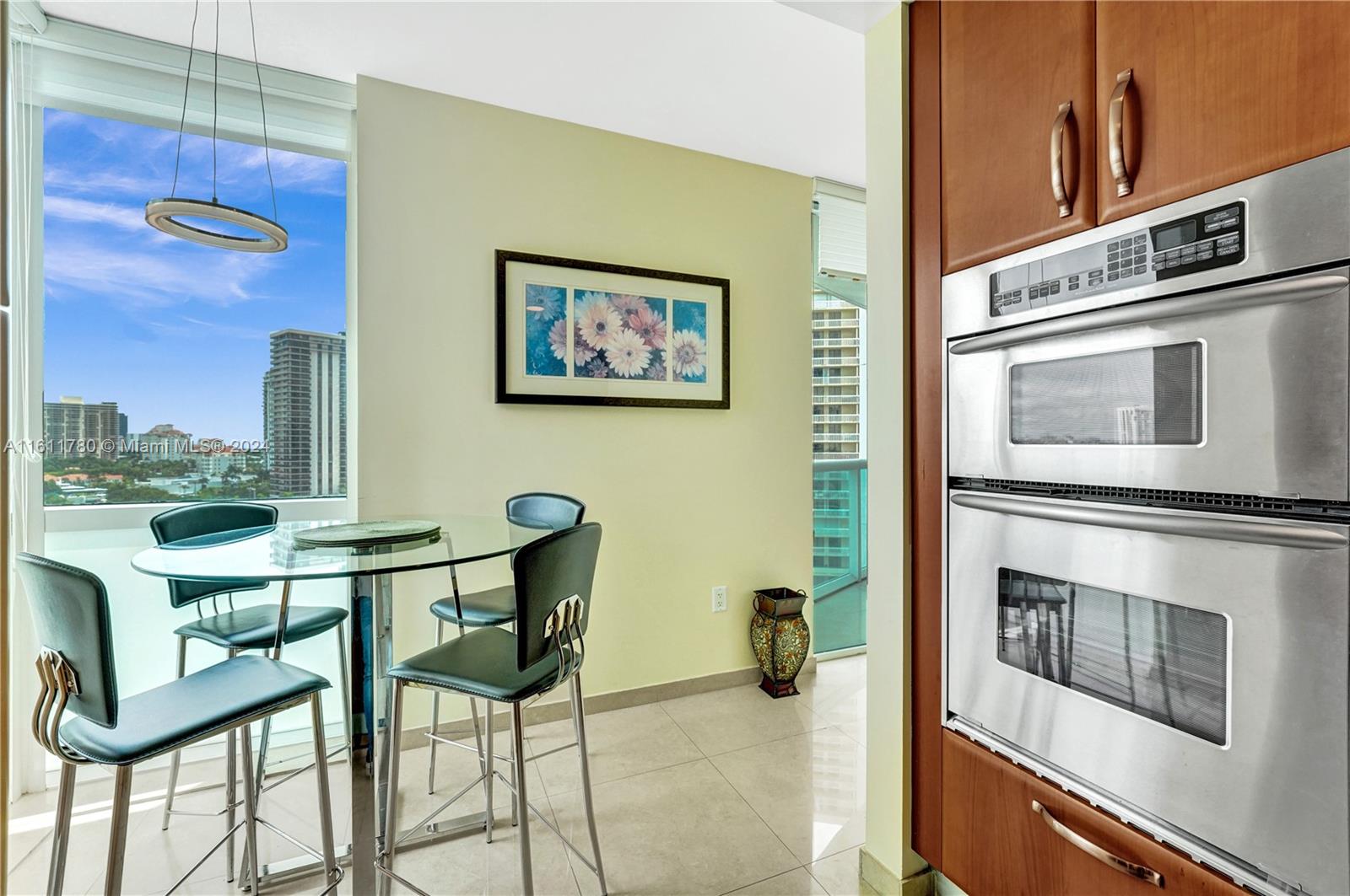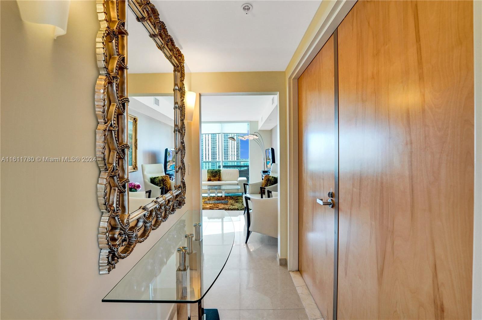 Lovely condo situated in The Parc at Turnberry in the heart of Aventura, boasting views of the Intracoastal, Ocean, and marinas. The unit offers a private elevator and foyer. Kitchen with SS appliances, wood cabinets, granite countertops, tiled backsplash and a stylish breakfast nook. Spacious 2 BD, 3 BA, in addition a versatile closed den with closet that can serve as a third bd. or office, with a full bath next to it. Primary BD features two separate balconies, primary & second BD have its own En-suite bathroom. W/D, Shabbat elevator and Impact windows. Enjoy five-star amenities - pool, kids pool, Jacuzzi, men & women's spa, massage rooms, gym, billiard & party room, business center & children's tot lot. Two pets up to 35 lbs. are welcomed conveniently located near houses of worship.