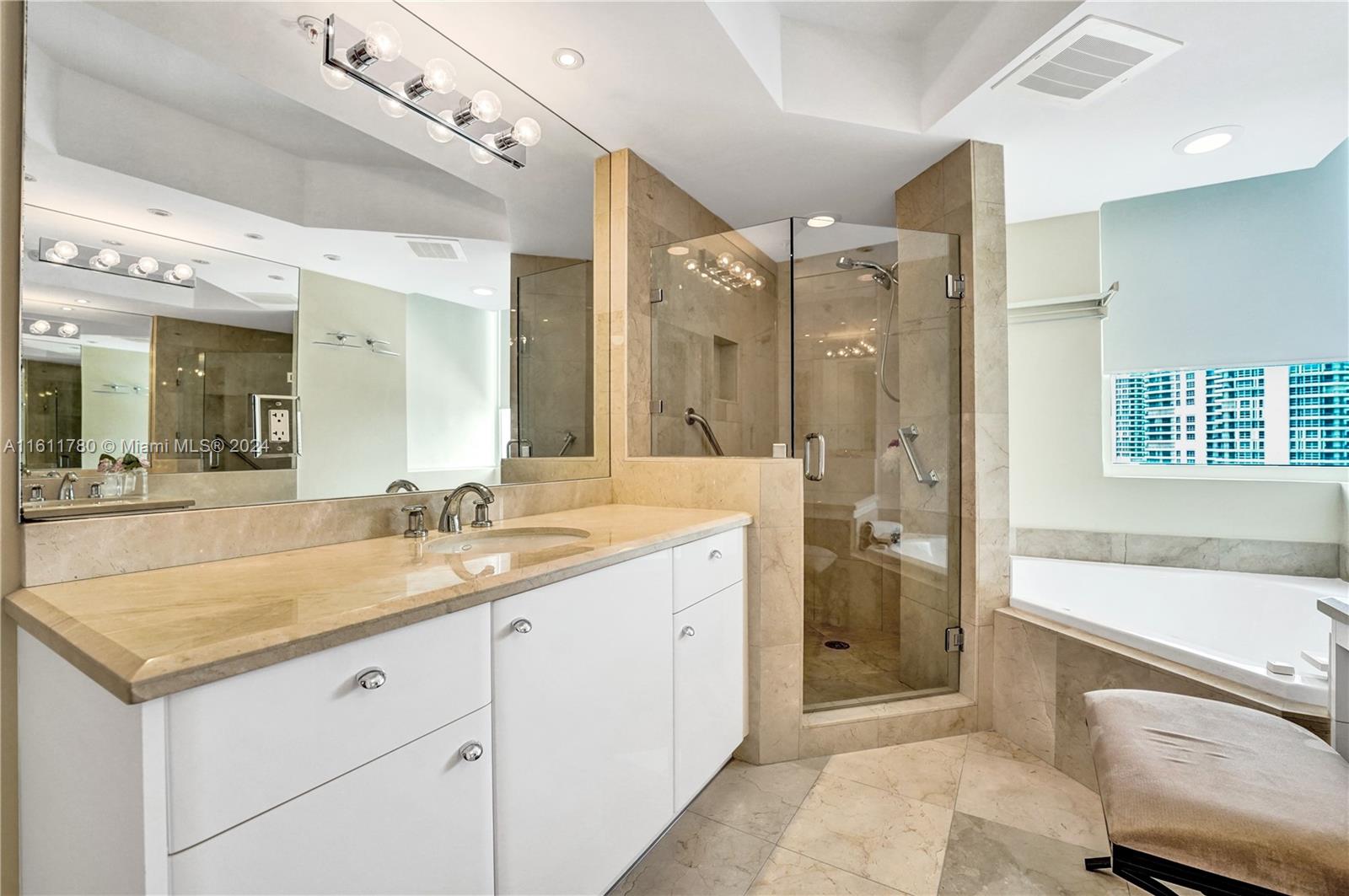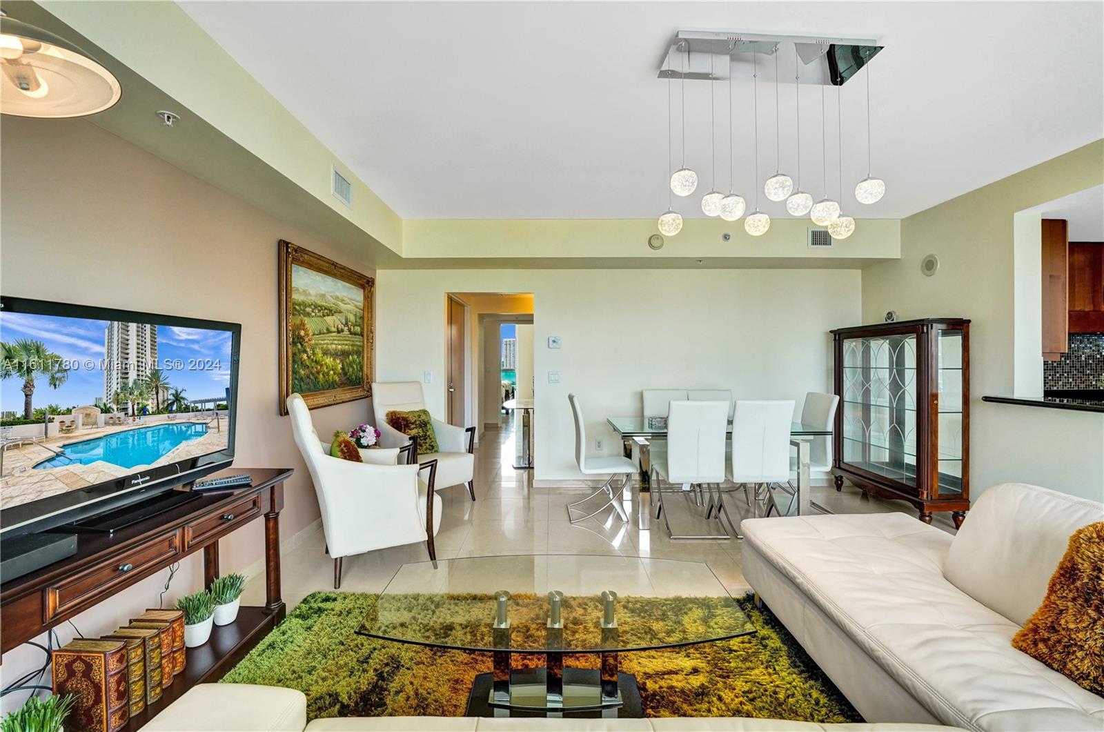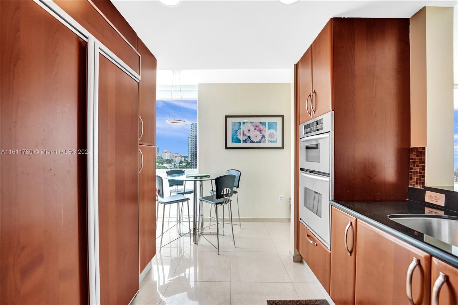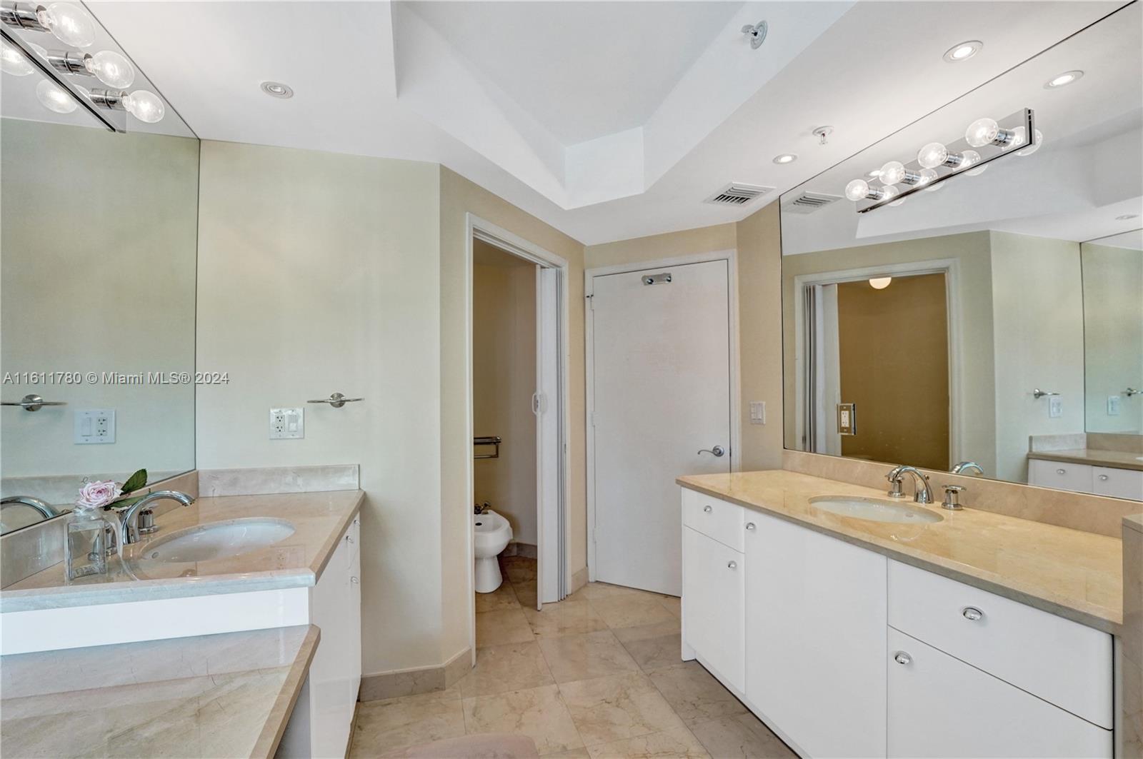 Lovely condo situated in The Parc at Turnberry in the heart of Aventura, boasting views of the Intracoastal, Ocean, and marinas. The unit offers a private elevator and foyer. Kitchen with SS appliances, wood cabinets, granite countertops, tiled backsplash and a stylish breakfast nook. Spacious 2 BD, 3 BA, in addition a versatile closed den with closet that can serve as a third bd. or office, with a full bath next to it. Primary BD features two separate balconies, primary & second BD have its own En-suite bathroom. W/D, Shabbat elevator and Impact windows. Enjoy five-star amenities - pool, kids pool, Jacuzzi, men & women's spa, massage rooms, gym, billiard & party room, business center & children's tot lot. Two pets up to 35 lbs. are welcomed conveniently located near houses of worship.