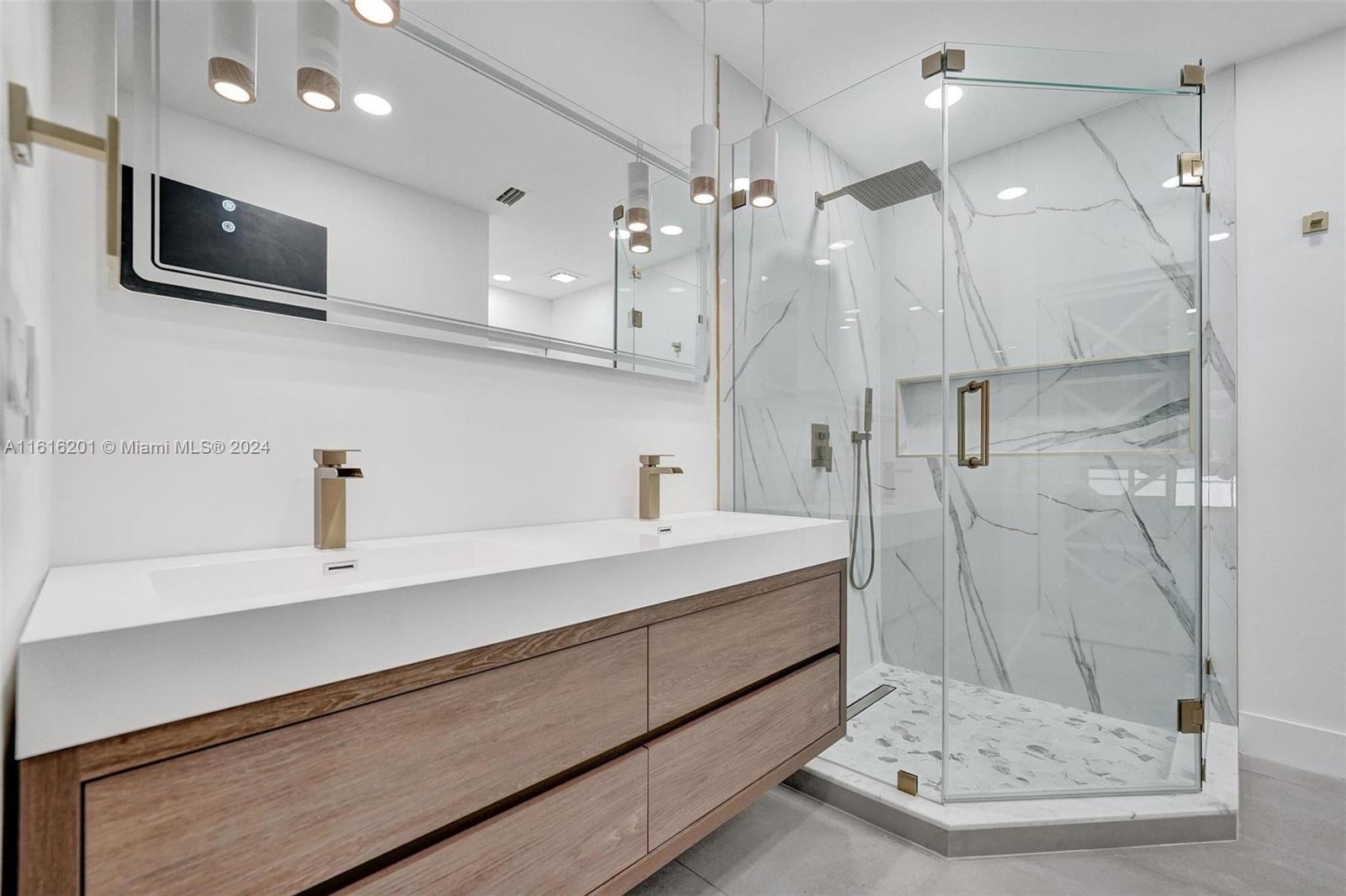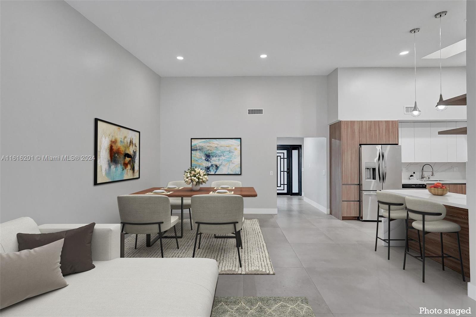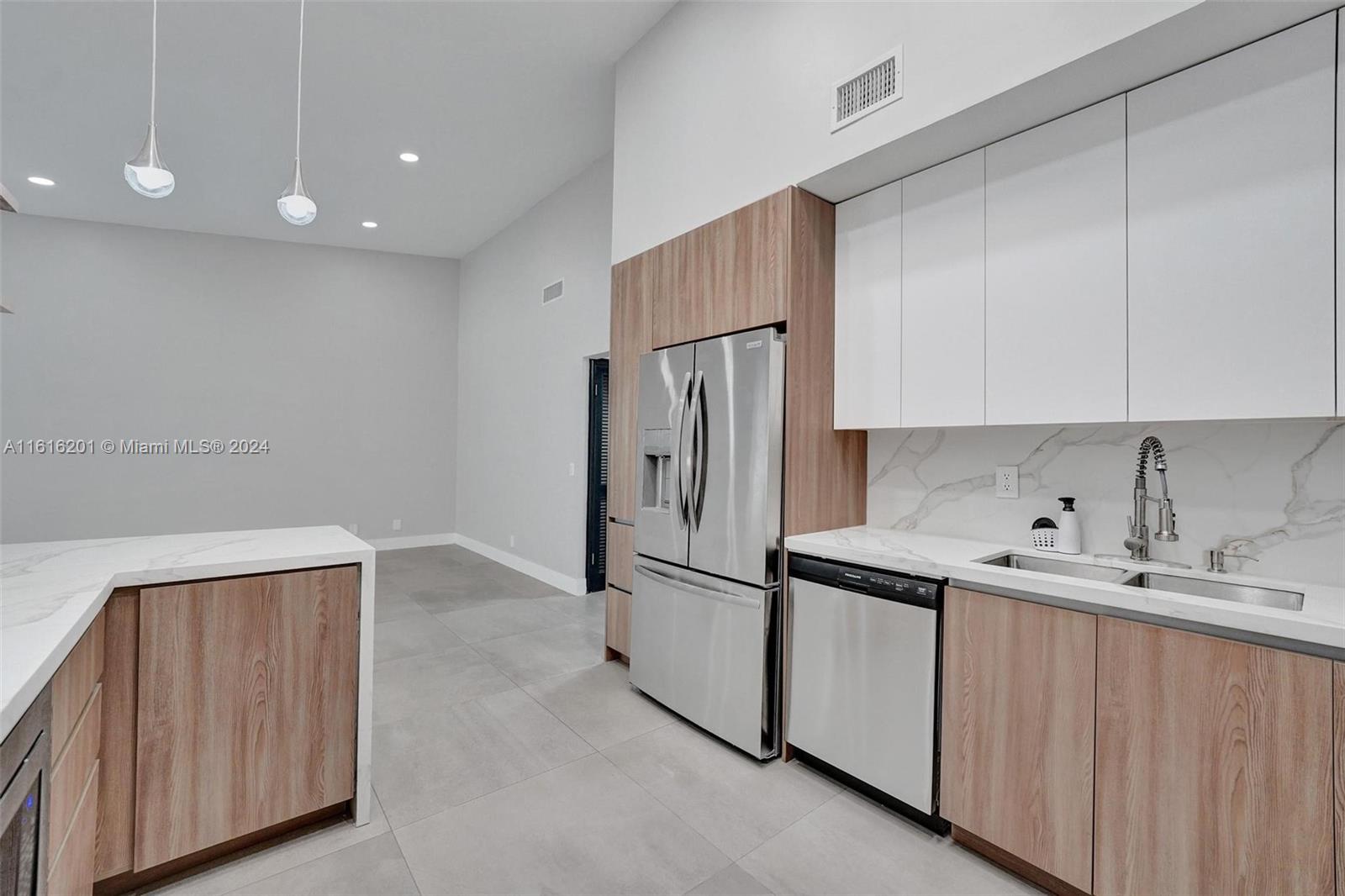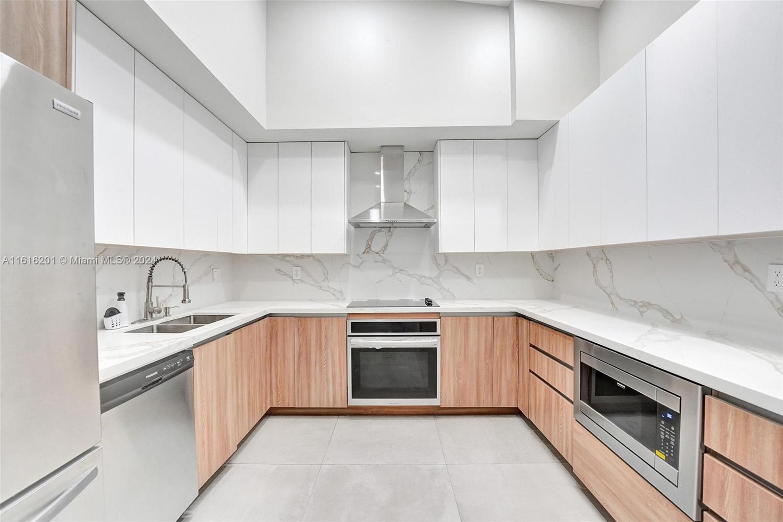 New and wow. Be the first to live in this gorgeous and modern completely renovated villa with new impact windows and doors, new kitchen with 25 cabinets, double sinks, quartz countertops, stainless steel appliances. New oversized tile flooring throughout, new recessed lighting, new baths with LED lighting in mirrors, wall toilet [you have to see it]. Custom closets. Separate laundry room. Cathedral ceilings. One car garage plus driveway and second space in front. Great location with community-paid shrubbery to be installed against back wall for privacy. Costain Villas is located in the Waterways section of Aventura adjacent to the marina, across from parks, including dog park. High school, Whole Foods, more shopping nearby. Easy access to beaches, highways. Internet, cable included.