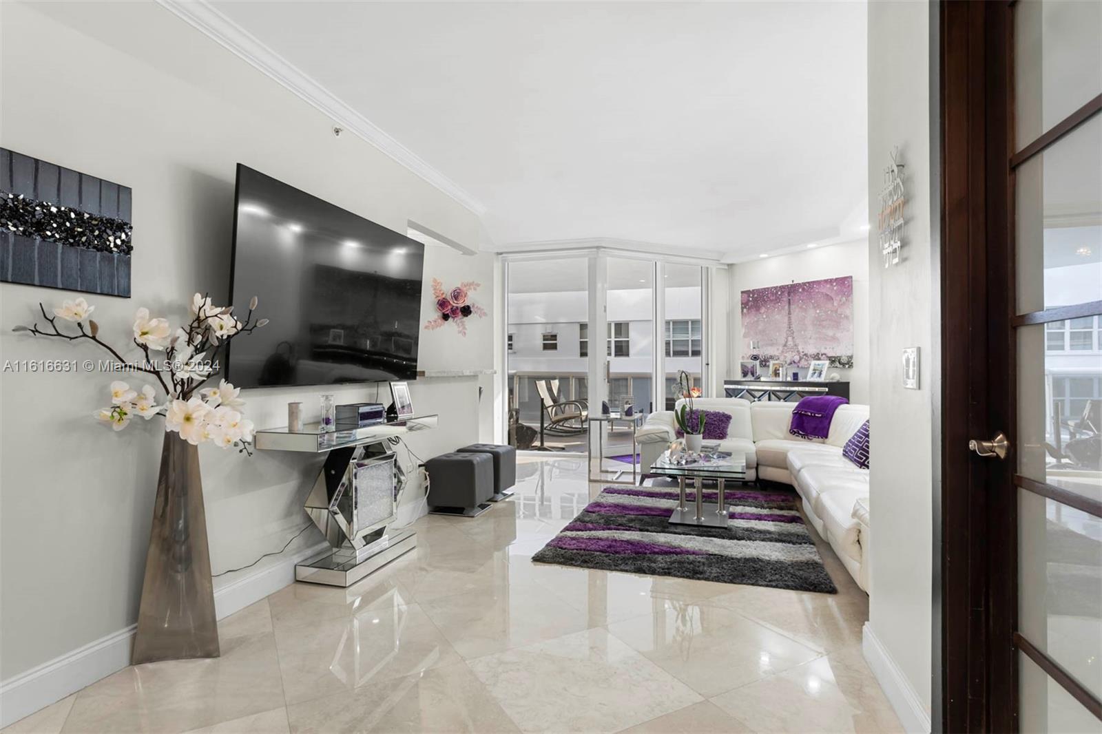 This stylish 2-bed, 2-bath unit features contemporary finishes throughout. The beautiful kitchen boasts stainless steel appliances, marble countertops, a wine cooler, custom wood cabinetry, and modern lighting fixtures. The entire unit has elegant marble floors. The main bedroom is en suite, with a spacious walk-in closet and a large bathroom that includes a Jacuzzi and separate shower. Both bedrooms have access to a large terrace with ocean and bay views. Situated in an oceanfront building in Miami Beach, this property offers excellent amenities.