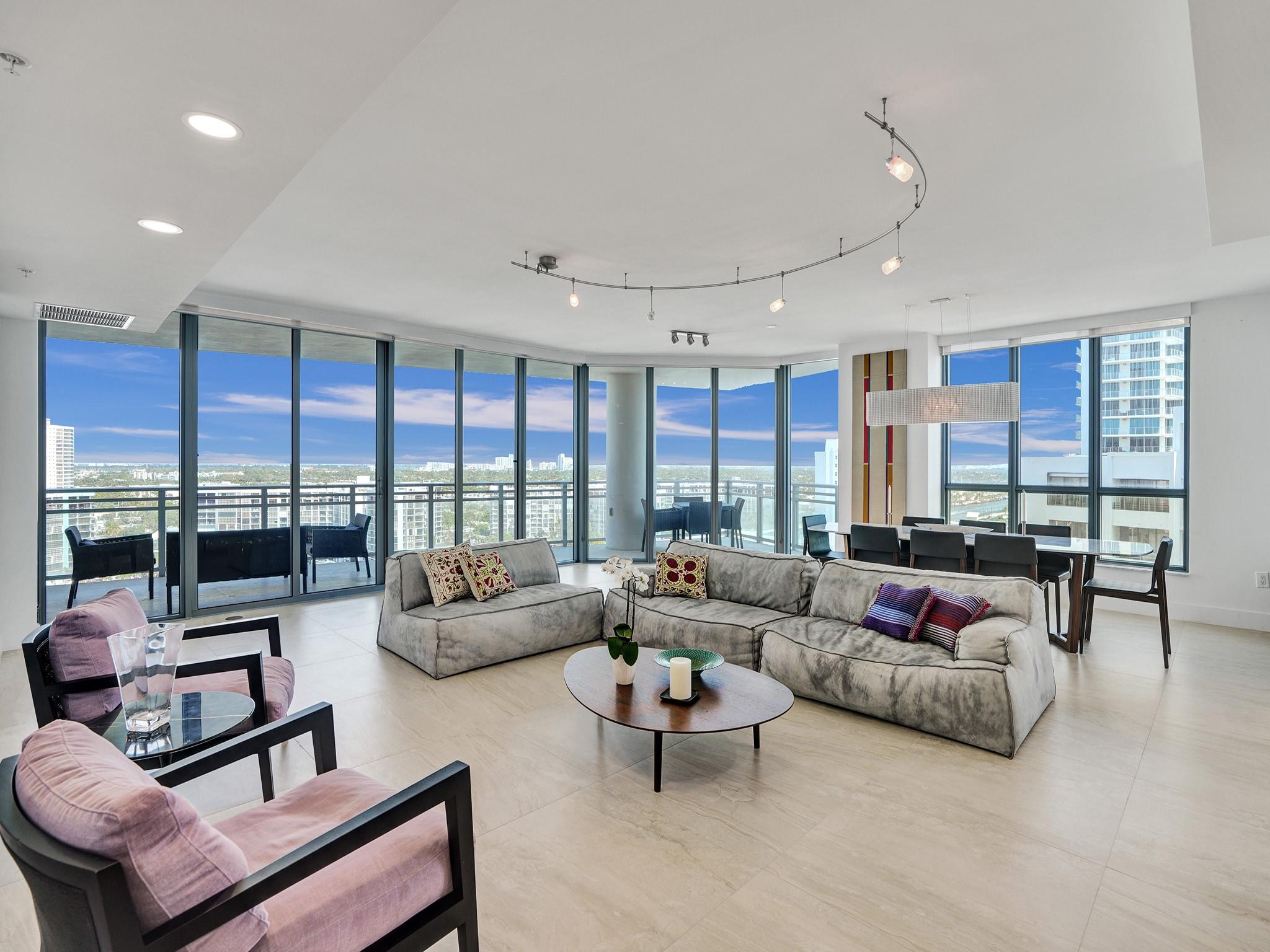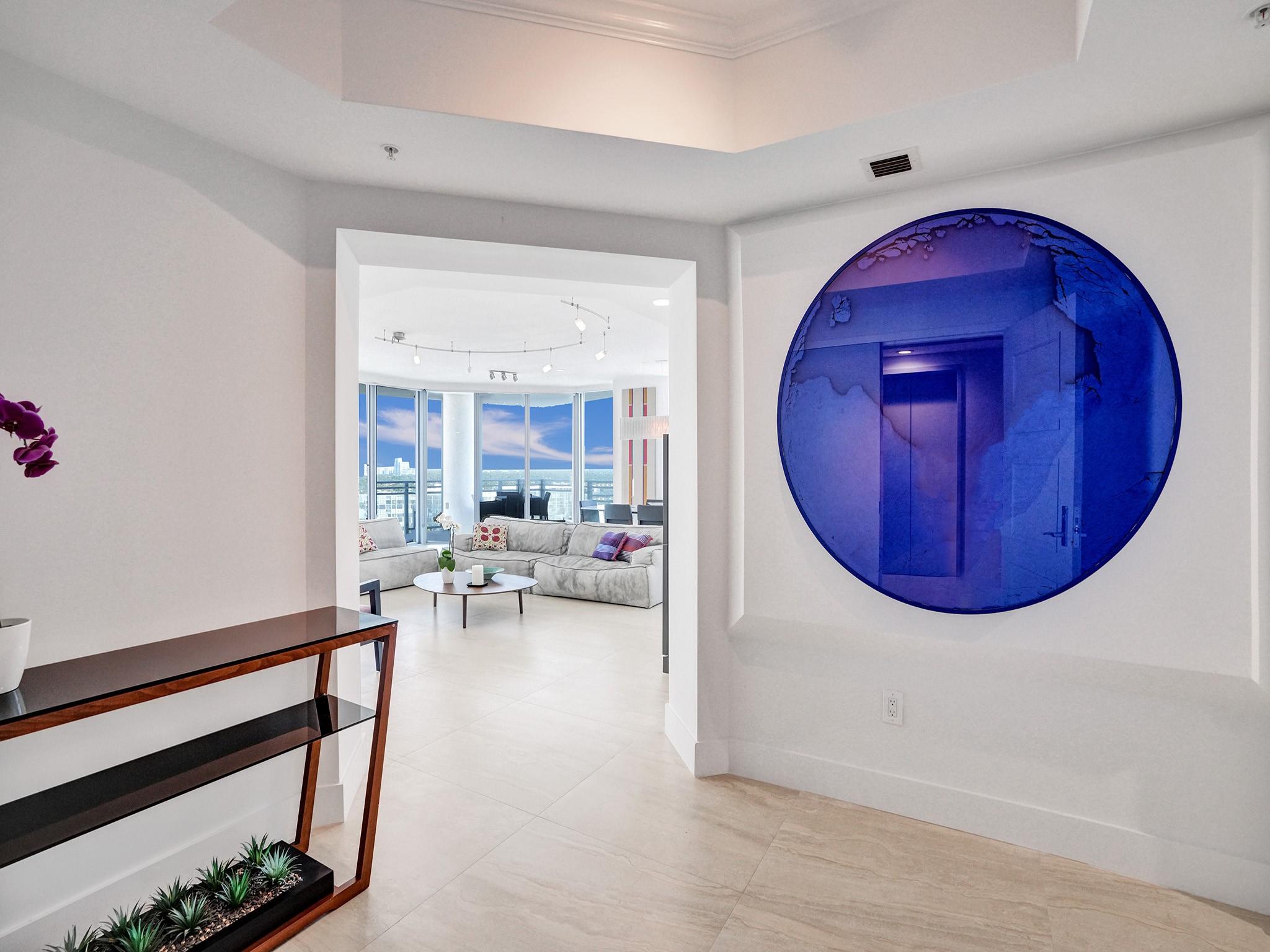Discover the pinnacle of luxury living at Diplomat Residences, an exclusive beachfront retreat offering views of the intracoastal and ocean. This magnificent 3-bedroom, 3 1/2-bathroom condominium features marble floors and can be accessed via your private elevator and foyer. Enjoy the spacious open floor layout with a gourmet kitchen equipped with stainless steel appliances and granite countertops, custom walk-in closets, LED recessed lighting, and over 500 square feet of wraparound terraces. Indulge in resort-style amenities such as a heated swimming pool, complimentary valet parking, a state-of-the-art fitness center, a private theater, a billiard room, barbecue areas, and beach service.