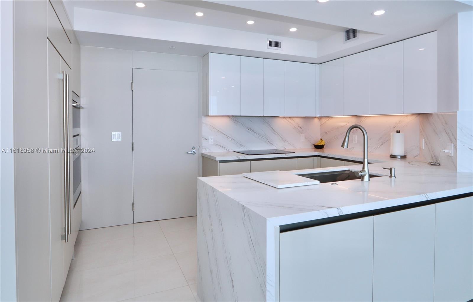 PRIME 32ND FLOOR LOCATION. DIRECT VISTAS OF OCEAN & INTRACOASTAL HIGH ABOVE THE NEIGHBORING BUILDINGS THAT WILL TAKE YOUR BREATH AWAY. ALL ROOMS HAVE DESIRABLE NORTH EXPOSURE WITH AMAZING FLOOR TO CEILING WINDOW VIEWS. THE ENTIRE 3 BEDROOM 3 FULL BATH RESIDENCE HAS JUST FINISHED A COMPLETE TOP OF THE LINE RENOVATION. 2 SEPARATE BALCONIES! NEW GOURMET OPEN CONCEPT KITCHEN OFFERS ITALIAN CABINETRY, WOLF AND SUBZERO APPLIANCES, QUARTZ SURFACES & MORE! ALL THREE BATHROOMS OFFER A SPA LIKE RETREAT WITH DESIGNER FINISHES THROUGHOUT. MASTER BATH HAS CONTEMPORARY FREE STANDING TUB FOR RELAXATION. LARGE PORCELAIN FLOORING,CONCEALED ELECTRIC WINDOW SHADES, LED LIGHTING & CEILING SOFFITS COMPLETE THE MODERN TOUCH! EUROPEAN BUILT IN FURNITURE REMAINS. YOUR PRIVATE ELEVATOR OPENS INTO A LUXURIOUS ENTRY