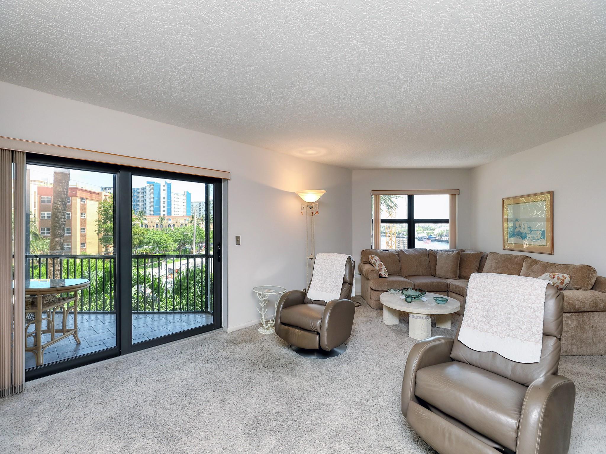 DON'T MISS THIS!! VERY SPACIOUS PRIVATE 2 BED | 2 1|2 BATH LIGHT, BRIGHT, AND OPEN WATERFRONT CONDO SHOWCASING INTRACOASTAL VIEWS WITH SPECTACULAR SUNSETS FEATURING THREE SEPARATE PRIVATE BALCONIES! BOUTIQUE BUILDING WITH ONLY THREE UNITS PER FLOOR, UNIQUE FLOOR PLAN, SELDOM ON THE MARKET! TWO MASTER SUITES (EACH WITH THEIR OWN BALCONY), NEW A/C (OCT 2024), LOTS OF STORAGE SPACE, SEPARATE LAUNDRY ROOM WITH FULL SIZE WASHER AND DRYER! IMPACT GLASS! PET FRIENDLY! WALK ONE BLOCK TO THE BEACH! WALK TO POMPANO PIER, FISHING VILLAGE, SKY-HIGH ROOFTOP BAR, OCEAN FRONT DINING, RESORT SHOPPING, AND COMMUNITY CULTURAL EVENTS! WELCOME TO FLORIDA'S FINEST!