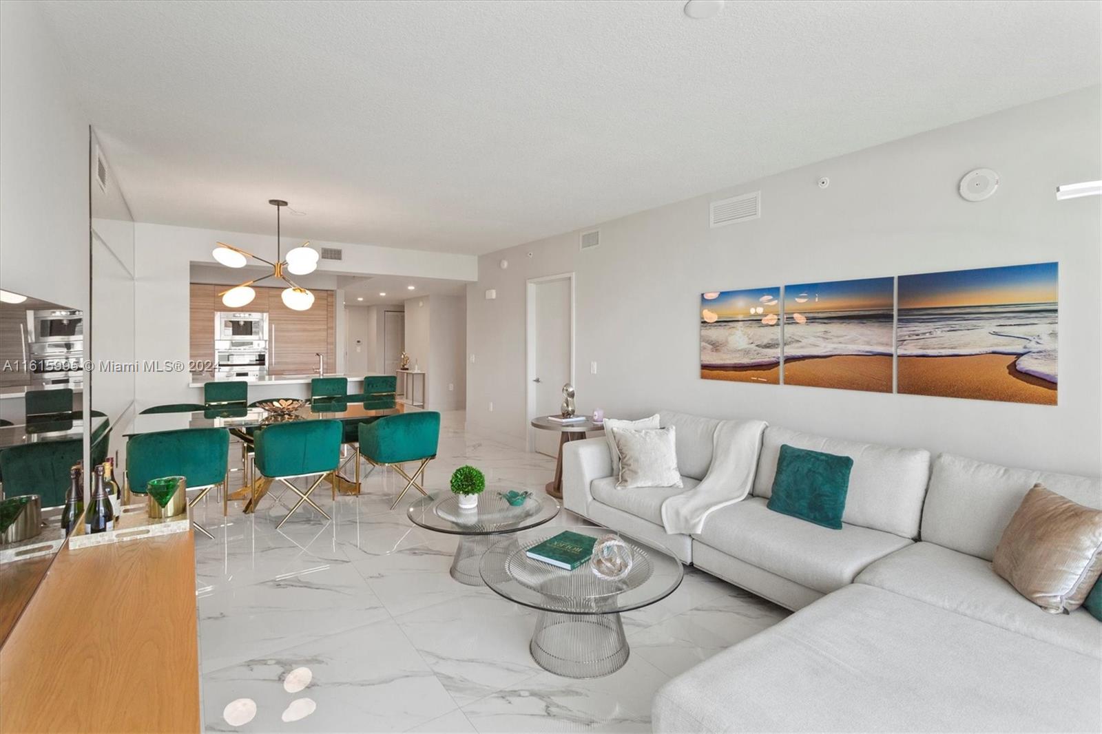 Welcome to phenomenal living in this 2 bedroom+Den/3 full bathroom unit at Parque Towers! Step inside and be greeted by a spacious kitchen with sleek countertops and plenty of storage space. The open concept living area is perfect for entertaining. Primary bedroom is very spacious and complete with not one, but two closets! The en-suite bathroom is a true oasis, with a luxurious separate shower and tub. The second bedroom is perfect for guests complete with its own private bathroom. The den offers flexibility for use as a 3rd guest room (if enclosed), office or playroom. Unit has been tastefully furnished, creating an inviting atmosphere. From the balcony enjoy views of the Sunny Isles Skyline. Building boasts great amenities including pools, gym, theatre, guest suites, and more!