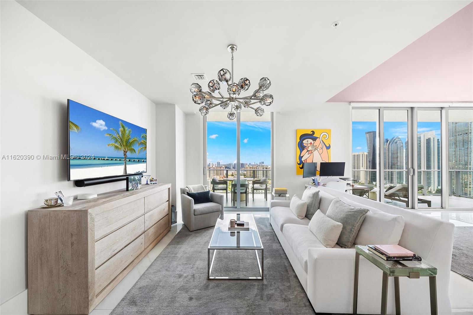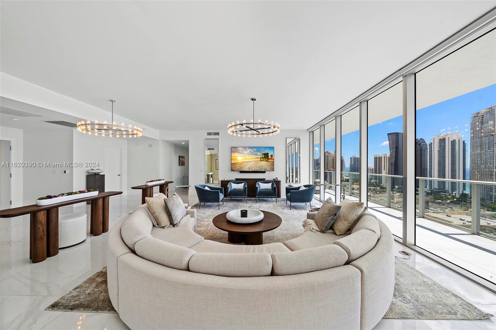 Welcome to the top of the world in Sunny Isles Beach at the penthouse of Parque Towers. Developed by J Milton and Associates and designed by the famous Siegel Suarez, this penthouse offers a spectacular design overlooking all of South Florida. Enjoy jaw-dropping views from every room with floor-to-ceiling windows. Fully furnished and designed by Restoration Hardware, the penthouse provides 360-degree views from downtown Miami to downtown Ft. Lauderdale and across the Atlantic Ocean. Every room is stunningly spacious, with an impeccably placed chef's kitchen overlooking the Intracoastal Waterway. The primary suite is tremendous, with oversized bedrooms designed to the nines. Located within walking distance to the ocean, this penthouse sits in the heart of South Florida.