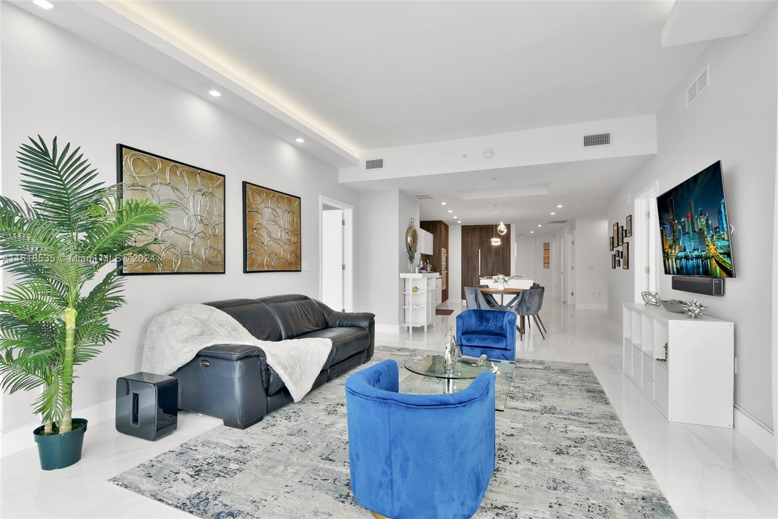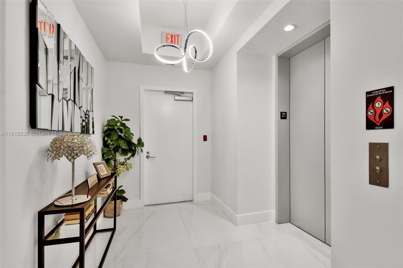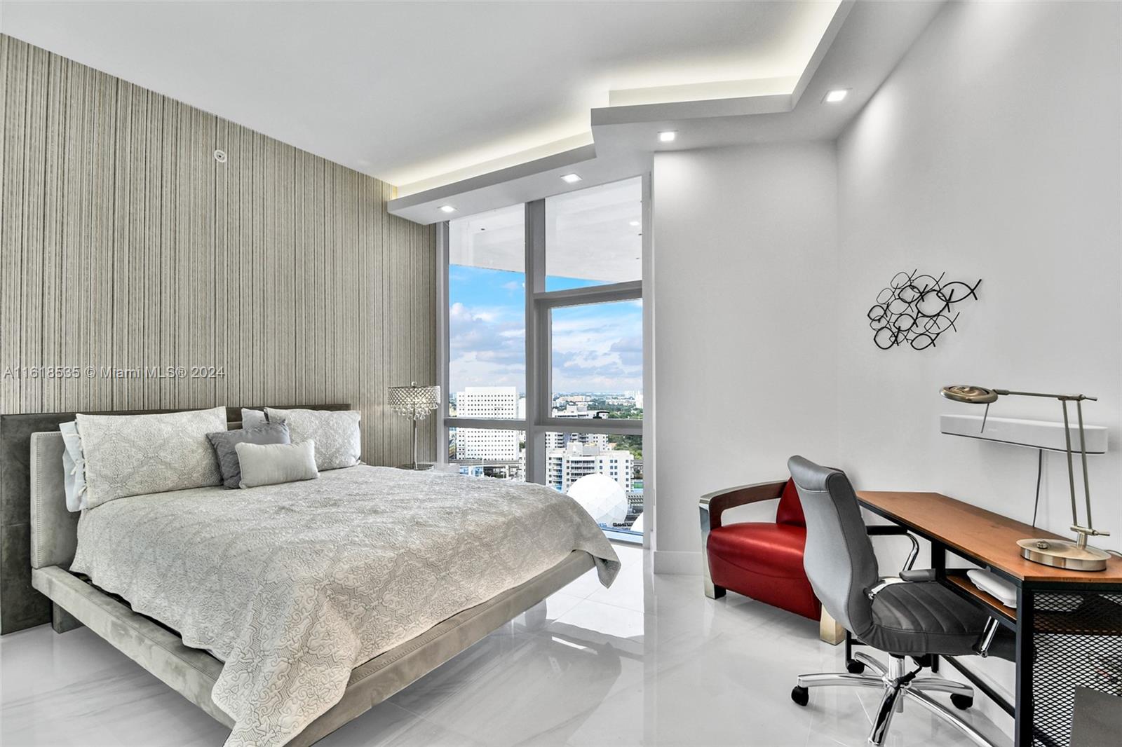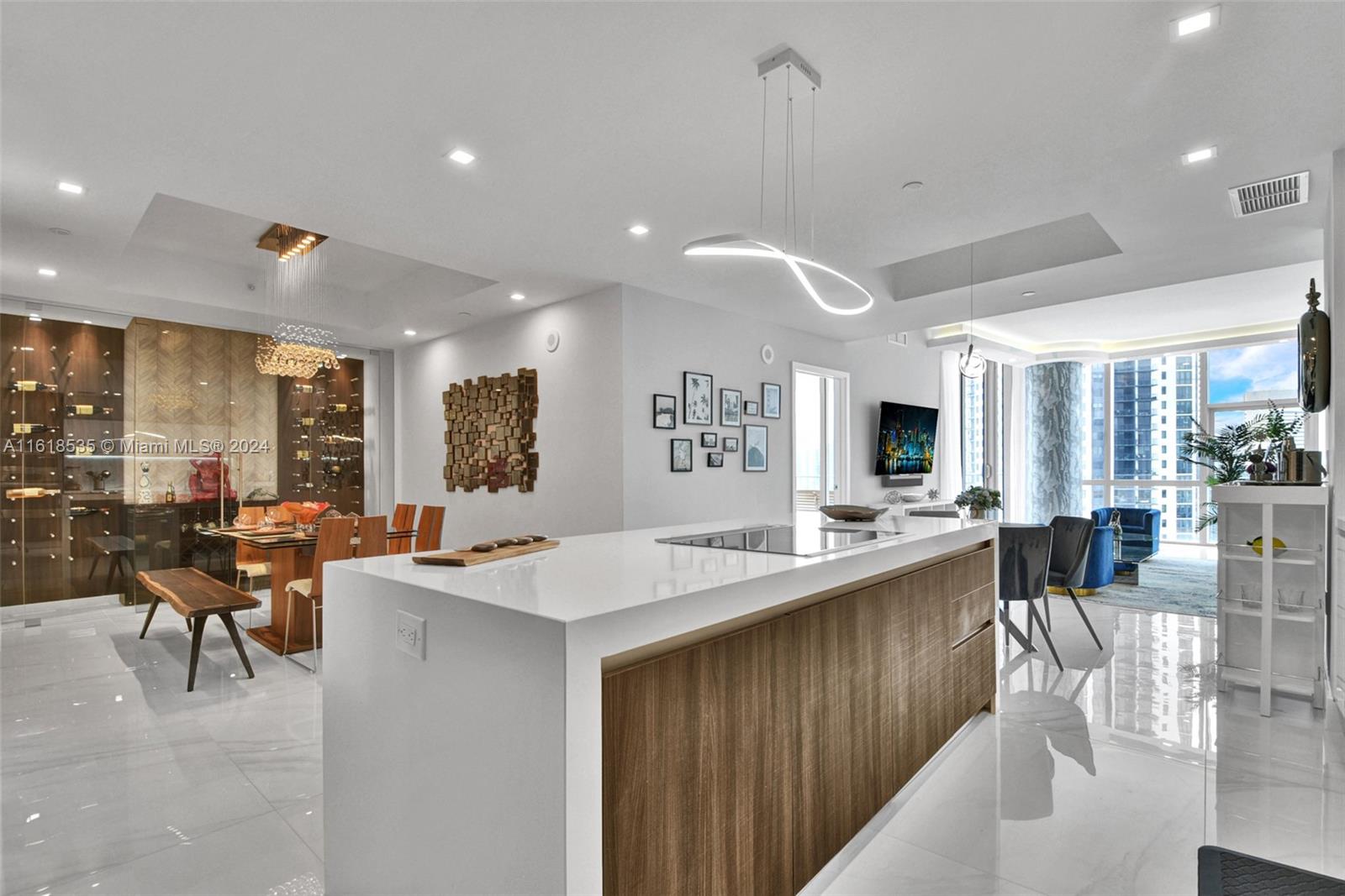 This exquisite unit features 3 bedrooms, 3 full bathrooms, and 1 powder room. Enjoy a private elevator with foyer, oversized terrace, private balcony in primary bedroom, over $300k in upgrades including a dining area with built-in glass wine cellar, custom wallpaper, electric blackout shades, recessed lighting, Italkraft kitchen cabinetry, custom wood panels, Bosch appliances, and a large kitchen island with stovetop and ample storage. Breathtaking views of the skyline and Biscayne Bay. Building amenities include multiple pools, fitness center, spa, tennis courts, soccer field, boxing studio, and game room. Located in the heart of Miami Worldcenter, surrounded by premier dining, shopping, and entertainment. 1 assigned parking space + the right to valet park a second vehicle complimentary.