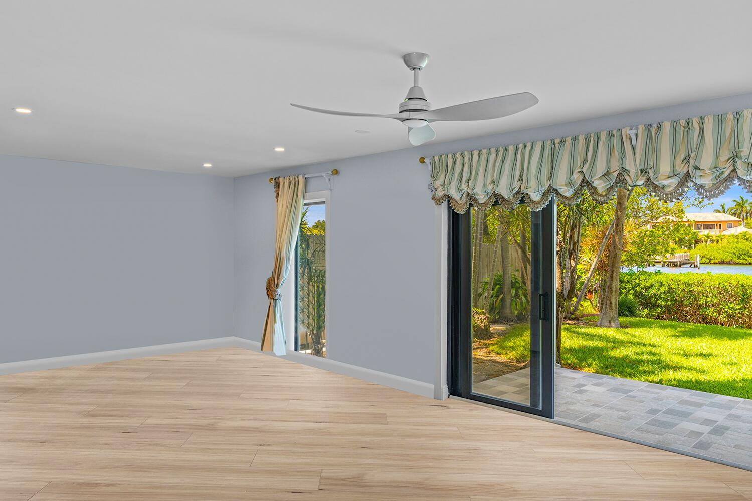 RENOVATED 2 bedroom WATERFRONT condo with PRIVATE backyard ''limited common area'' on the Intracoastal. Walk across the street to the OCEAN with PRIVATE gated BEACH access! Bright new kitchen with open concept dining & living room, with upgraded Impact hurricane windows & slider that is great for entertaining. This 2-bed (previously 3 bedroom), 2.5-bath home with large master bedroom & ensuite bathroom, walk-in closet & private laundry room. 2nd bedroom also has a full bathroom & walk-in closet.Located only steps to the heated waterfront pool and assigned parking near the unit at the end of covered walkway. BBQ area, doorman, on-site manager and the private beach access across the street. Only 20 minutes to to the Palm Beach airport, close to shops & the Old Key Lime House