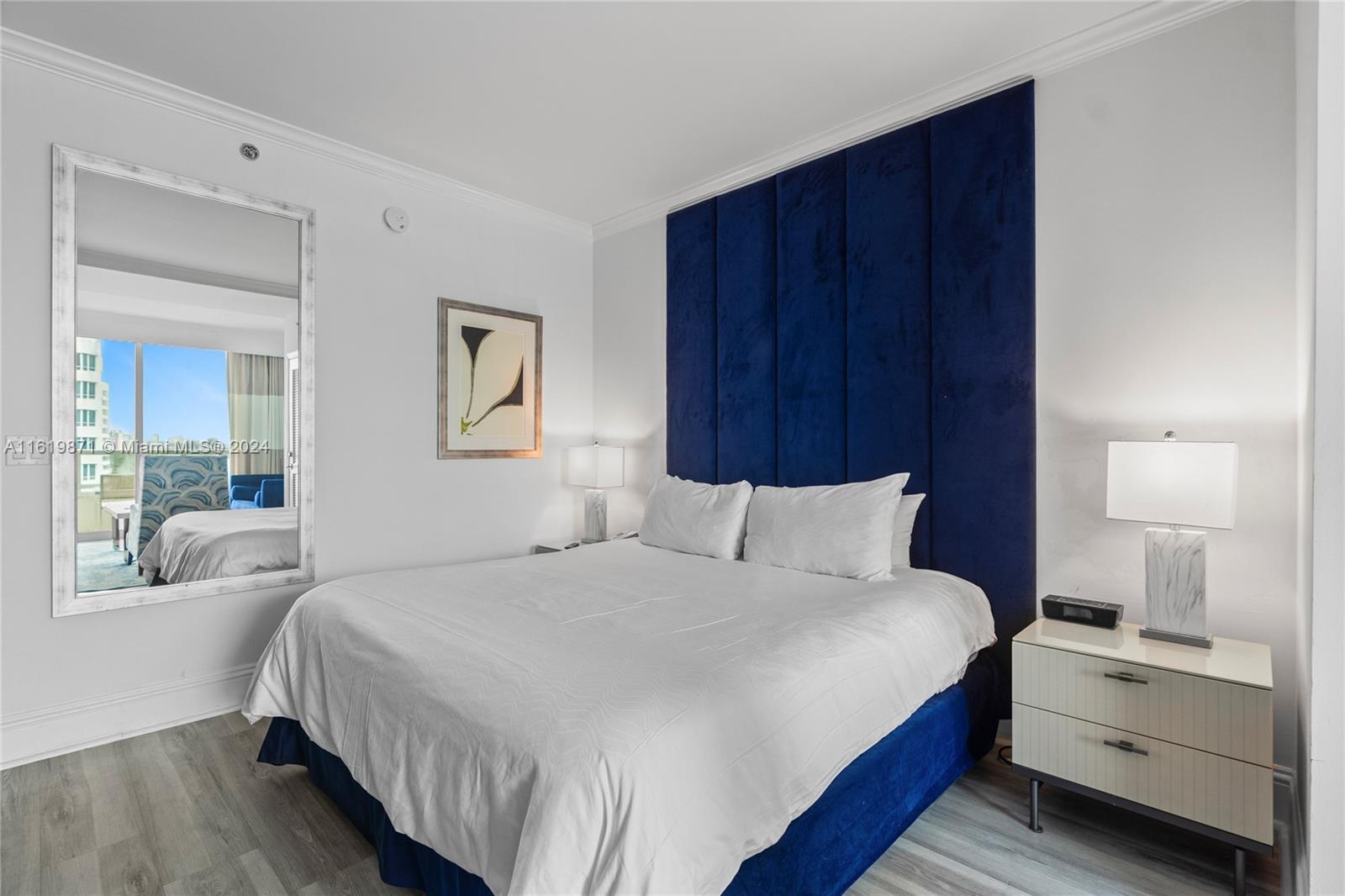 Beautiful Jr Suite w/ocean, bay & city views at Fontainebleau II. Enjoy full service, vacation-style living in a furnished turnkey unit with ample closet space and balcony. This unit comfortably sleeps four with a king bed, living area with sleeper sofa and kitchenette. The Fontainebleau resort offers award-winning restaurants, LIV night club, Lapis spa & state-of-the-art fitness center, bakery, shops, full-service salon and more. Maintenance fees include all utilities: AC, internet, cable, local calls, electricity, valet + daily free breakfast in owner's lounge. Please click the virtual tour link to see a video of the property.