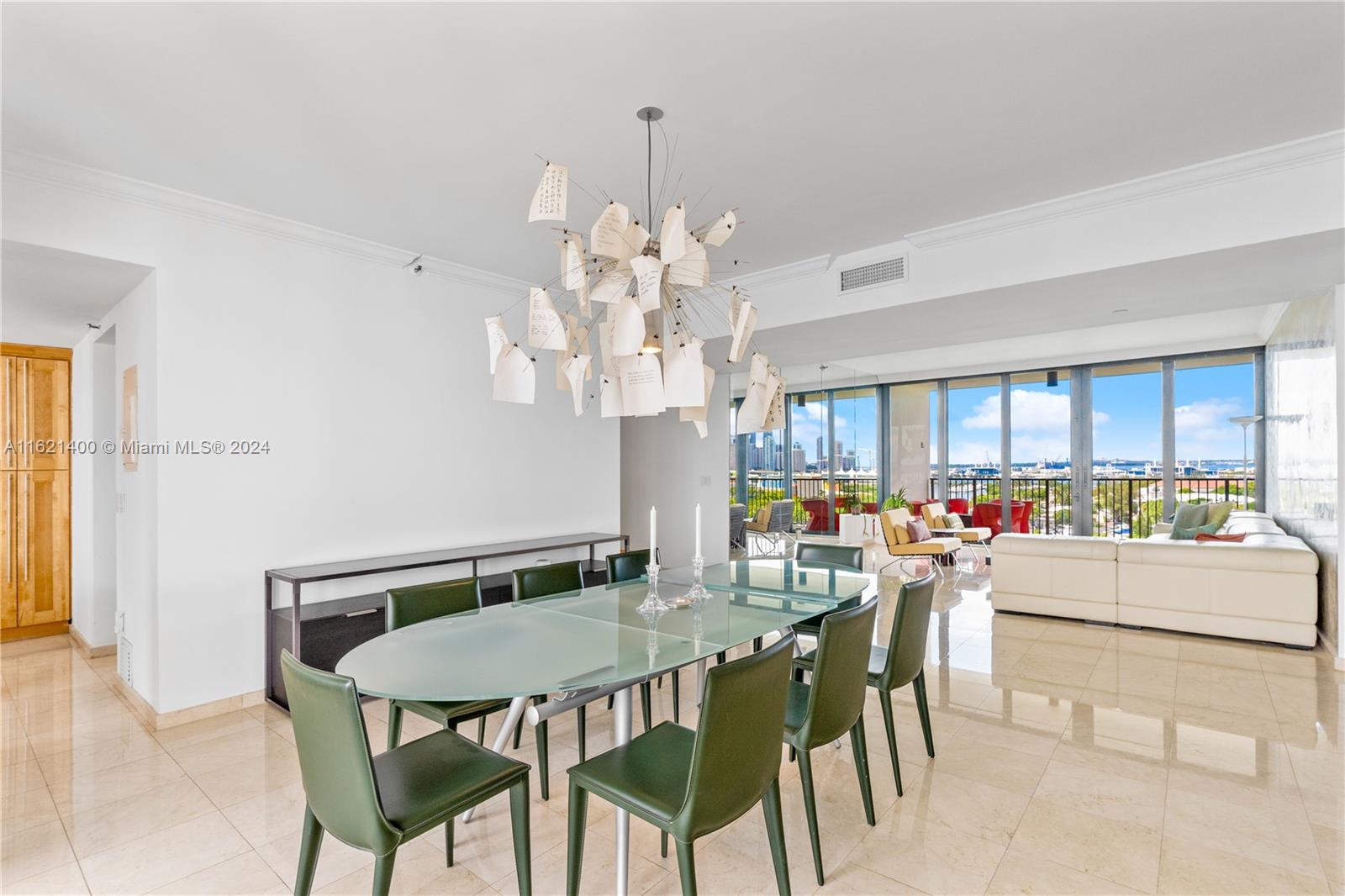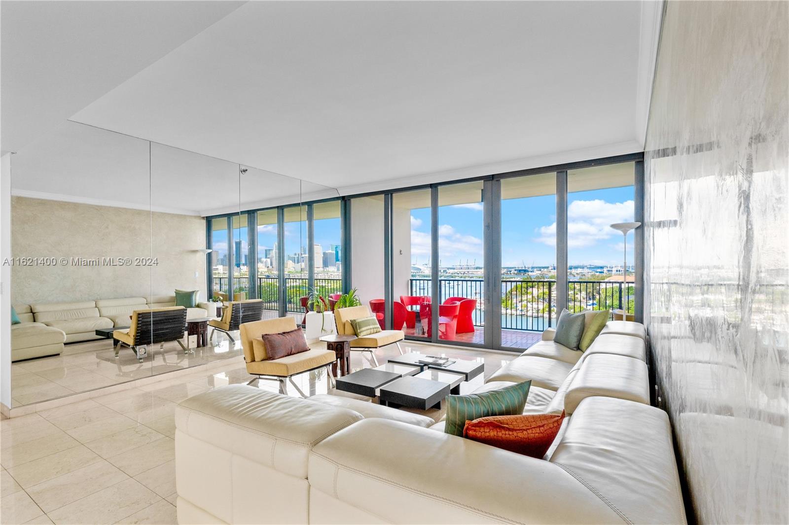 Experience the best of Miami at 1000 Venetian, an exclusive boutique building set in its own private park on the first Venetian Island closest to downtown Miami This residence boasts 3 bedrooms, 2.5 bathrooms, offering extraordinary views of Downtown Miami, Miami Beach, and Biscayne Bay. The LR and FR offer expansive terraces, north and south facing, ensuring captivating views. High impact windows seamlessly blends modern comfort with stunning panoramic views. Each bedroom features built-in bookshelves, adding both functionality and charm, and floor to ceiling windows leading to the terraces. Residents of 1000 Venetian enjoy an array of luxury amenities: 24-hour concierge, two pools, jacuzzi, fitness center, two tennis courts, a basketball court, a children's play area, and a dog park.