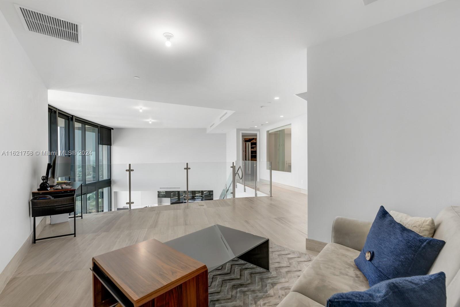 Discover luxury living in this 3-bed, 4.5-bath 3,100 sq ft apartment spanning 3,100 sq ft of sheer opulence. As you enter, you'll be greeted by soaring 21-foot ceilings adorned with floor-to-ceiling windows that offer breathtaking panoramic views of the sunset, downtown Miami, & the tranquil Intracoastal waterway. Indulge in the epitome of modern living with a sprawling balcony, providing ample space for al fresco dining or simply basking in the beauty of Miami's skyline. The sleek & contemporary design features a carbon fiber kitchen, perfect for culinary enthusiasts & entertainers alike. With a 2-car garage & Dezervator car elevator, convenience is key. Elevate your lifestyle with 5-star amenities including concierge service. Welcome home to unparalleled elegance & comfort.