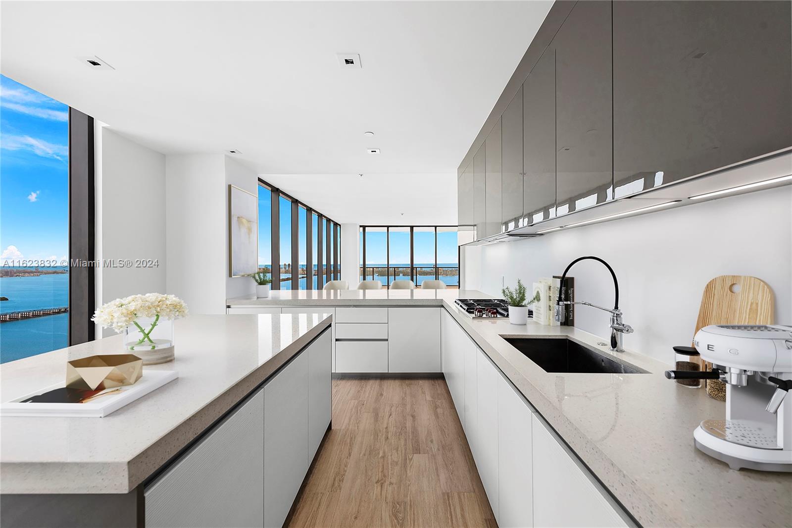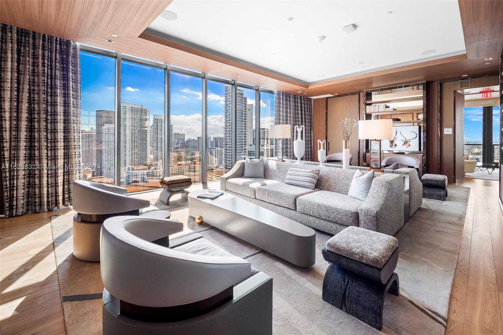 This is your opportunity to experience the PINNACLE of elevated Miami living - bar NONE. Positioned on the 55th Floor of the Elysee building, the panoramic views of the ocean, bay and Miami Beach skyline will mesmerize you upon entry. This flow-through unit spans East to West, encapsulating 4 beds/4.5 bath plus a large media room/den. The state-of-the-art kitchen is designed to entertain: Equipped with Italkraft cabinetry, Wolf and Subzero appliances and a gas cooktop, the kitchen is rivaled only by the memories you will create. Amenities include: a sunrise and sunset pool, top-tier gym, 30th floor private owner’s lounge, kid’s playroom, valet and 24-hour concierge. With entry via your own private elevator foyer, this “house in the sky” provides unmatched privacy and tranquillity.