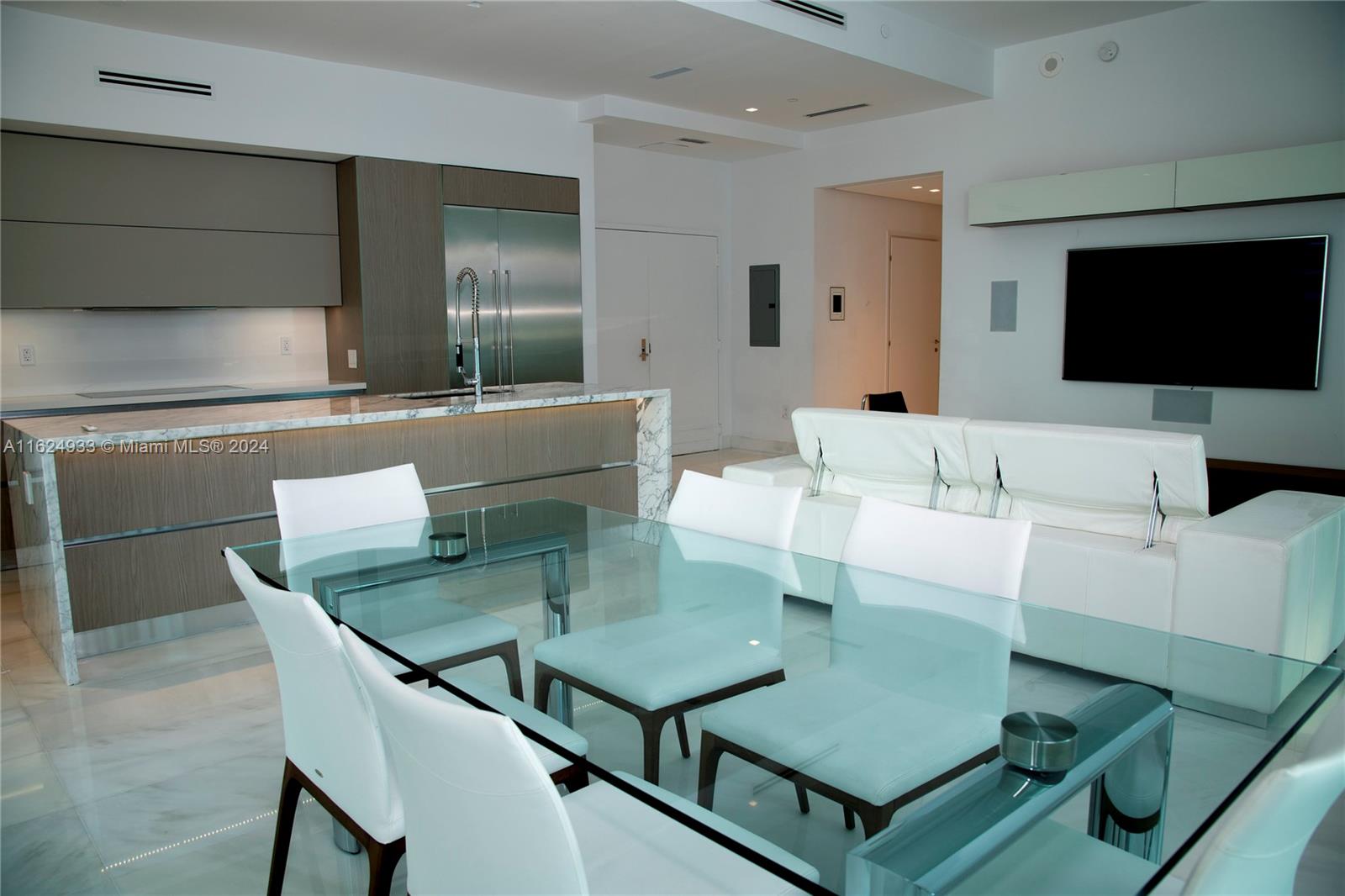 Discover unparalleled luxury in the completely redesigned penthouse, Unit 3902, at the prestigious MET 1 building, where stunning panoramic views of the bay and Miami skyline greet you from every angle. With elegant marble floors and high ceilings, this exquisite penthouse features 3 beds & 3 1/2 baths, each meticulously designed to provide maximum comfort and privacy. The modern open-concept kitchen, equipped with top-of-the-line Gaggenau appliances and a striking white Carrara marble island, is any artist's dream. Enjoy the serene sea breeze, spectacular sunrises, and vibrant city lights from the expansive private balcony, perfect for relaxing and entertaining. With three designated parking spaces, convenience and security are assured.