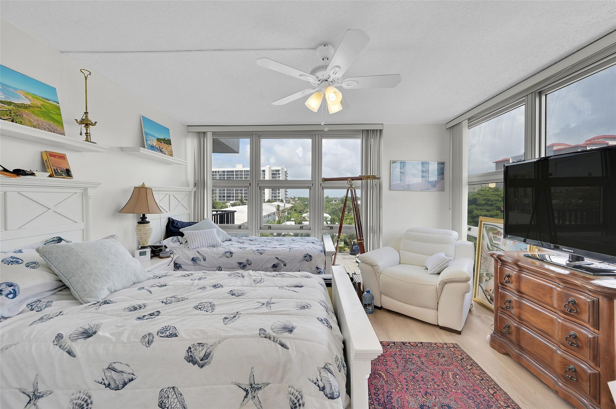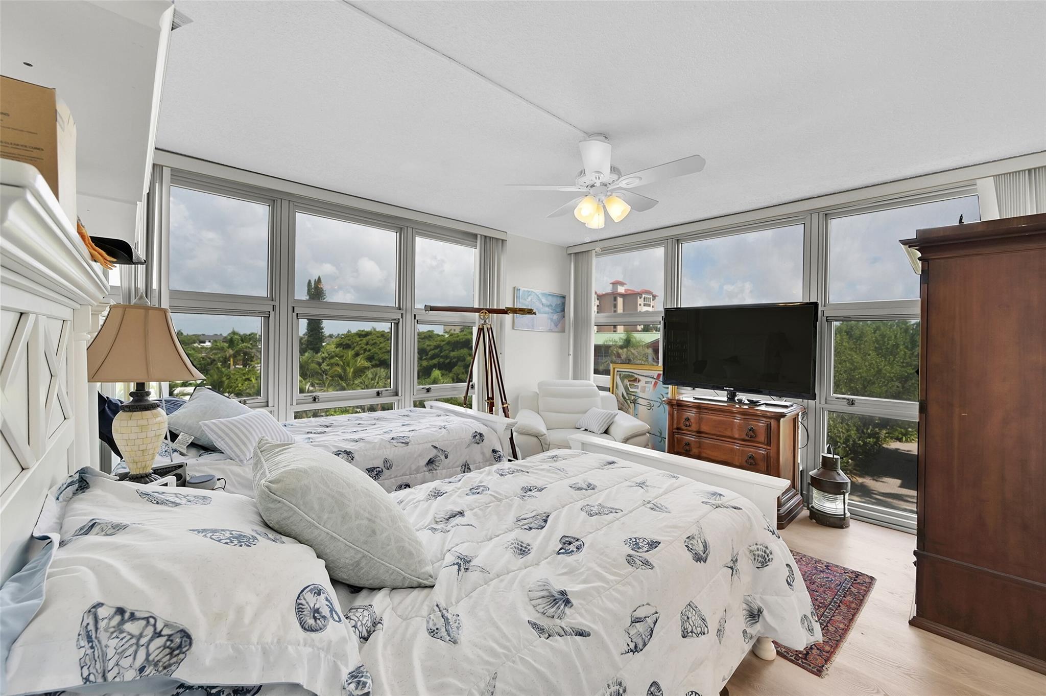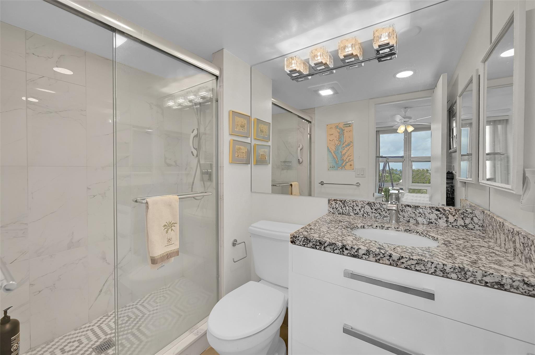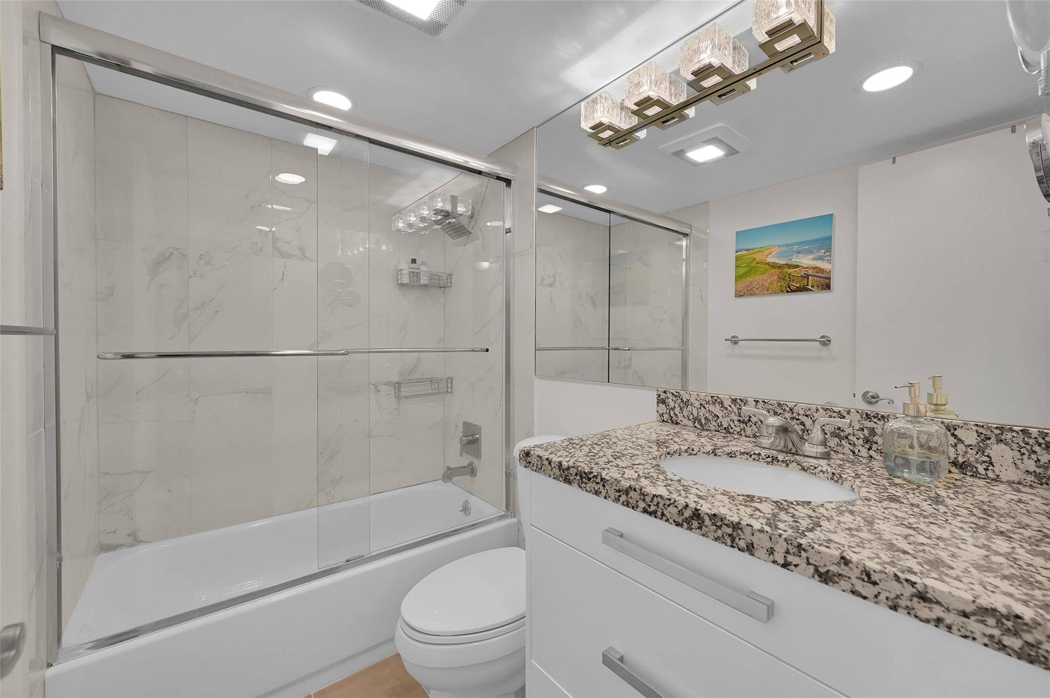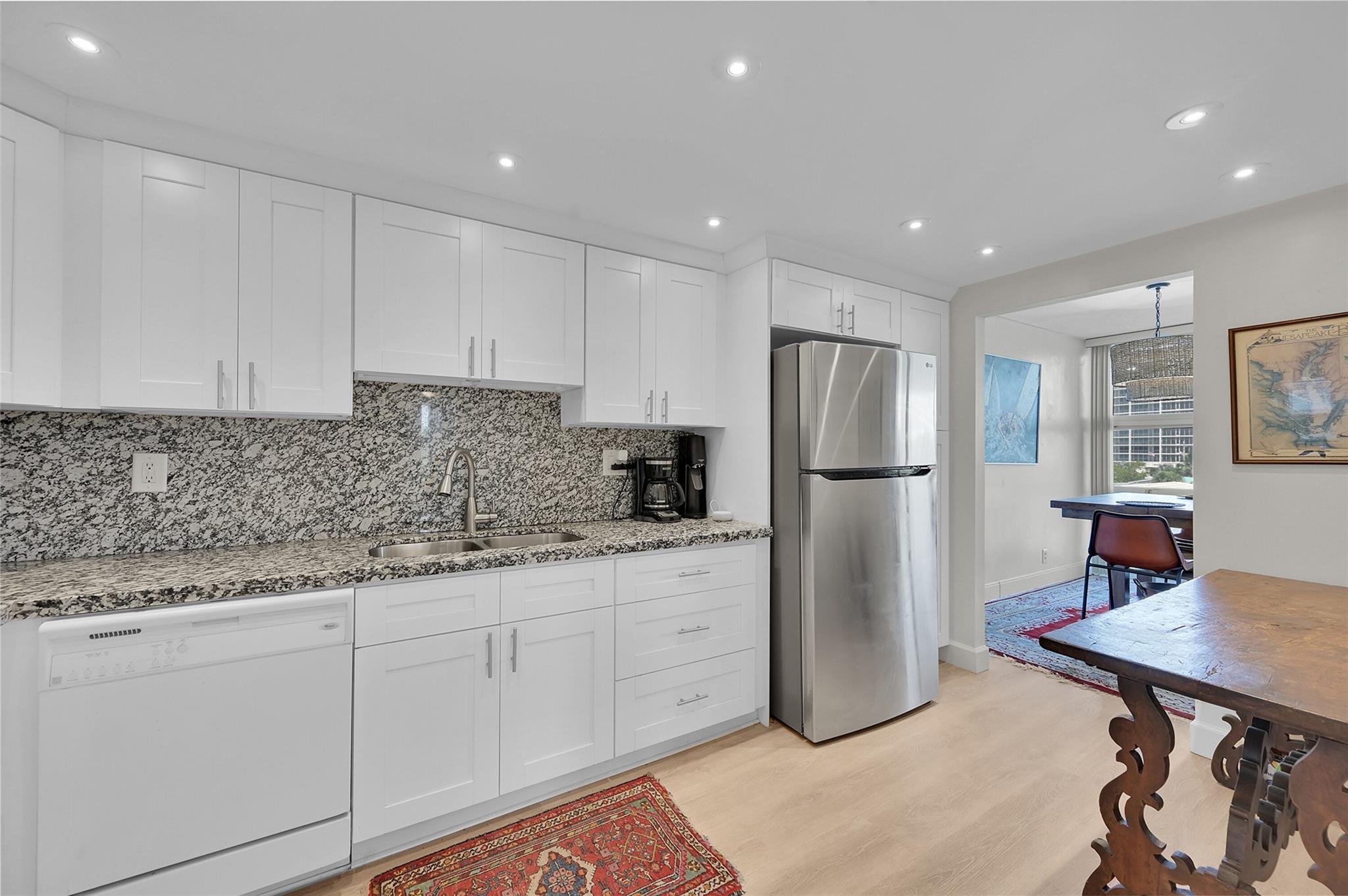 Newly remodeled corner unit with floor to ceiling hurricane impact windows and slider to the balcony. Kitchen has white cabinetry, granite counters and stainless steel refrigerator & stove. Updated bathrooms, new a/c, spacious floor plan, ample closets, separate storage space and 1 covered garage parking space. This fourth floor location is steps to the amenities deck with a heated pool, sun deck and new covered barbecue area. Silver Thatch also offers 24/7 security, tennis, pickleball courts, bocce, fitness center and sauna. Prime location walking distance to the fishing pier, restaurants, shopping and a short drive to boating, golf, and more.
