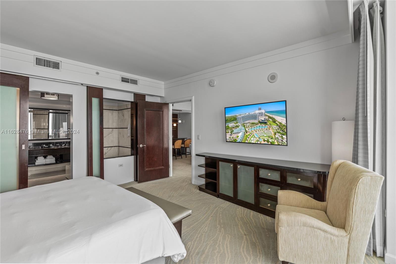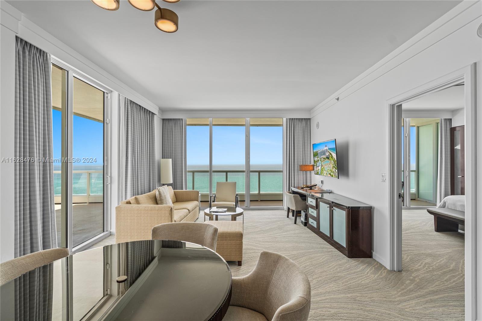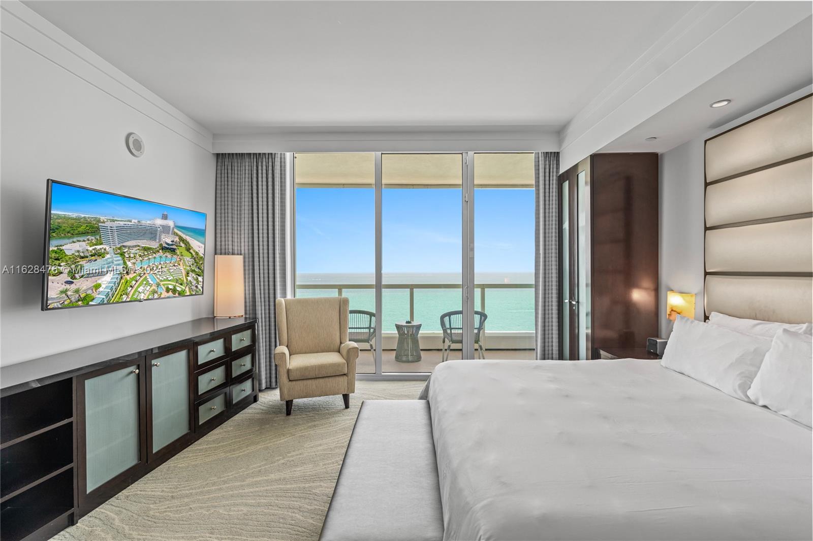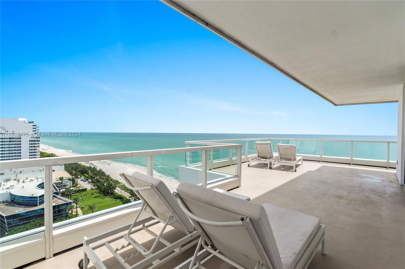 Enjoy breathtaking unobstructed ocean, bay, & city views from this 18th-floor, fully furnished 2BD/2.5BA corner unit at Fontainebleau III resort. This direct oceanfront double unit features a private entrance foyer, 2 balconies including a unique 621 sqft expansive wrap-around balcony perfect for entertaining, 2 king beds, 2 sleeper sofas, a complete kitchen, & a washer/dryer. Enjoy full service, vacation-style living! Option to enroll in hotel rental program & receive income while away! The Fontainebleau resort offers award-winning restaurants, LIV night club, Lapis spa & gym, bakery, shops, salon and more. Maintenance fees include all utilities: AC, internet, cable, local calls, electricity, valet + daily free breakfast in owner's lounge. Click the virtual tour link to see a video.