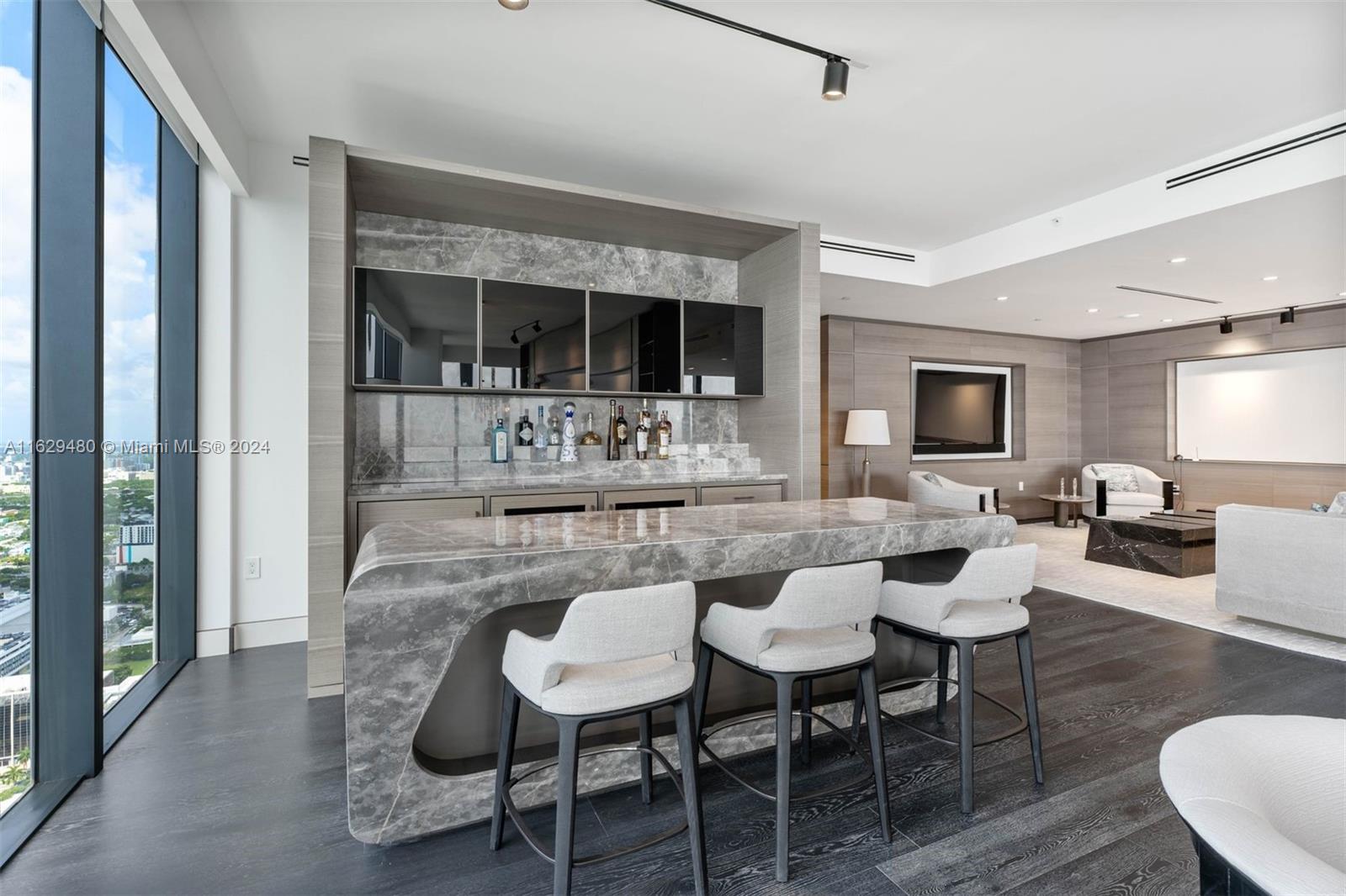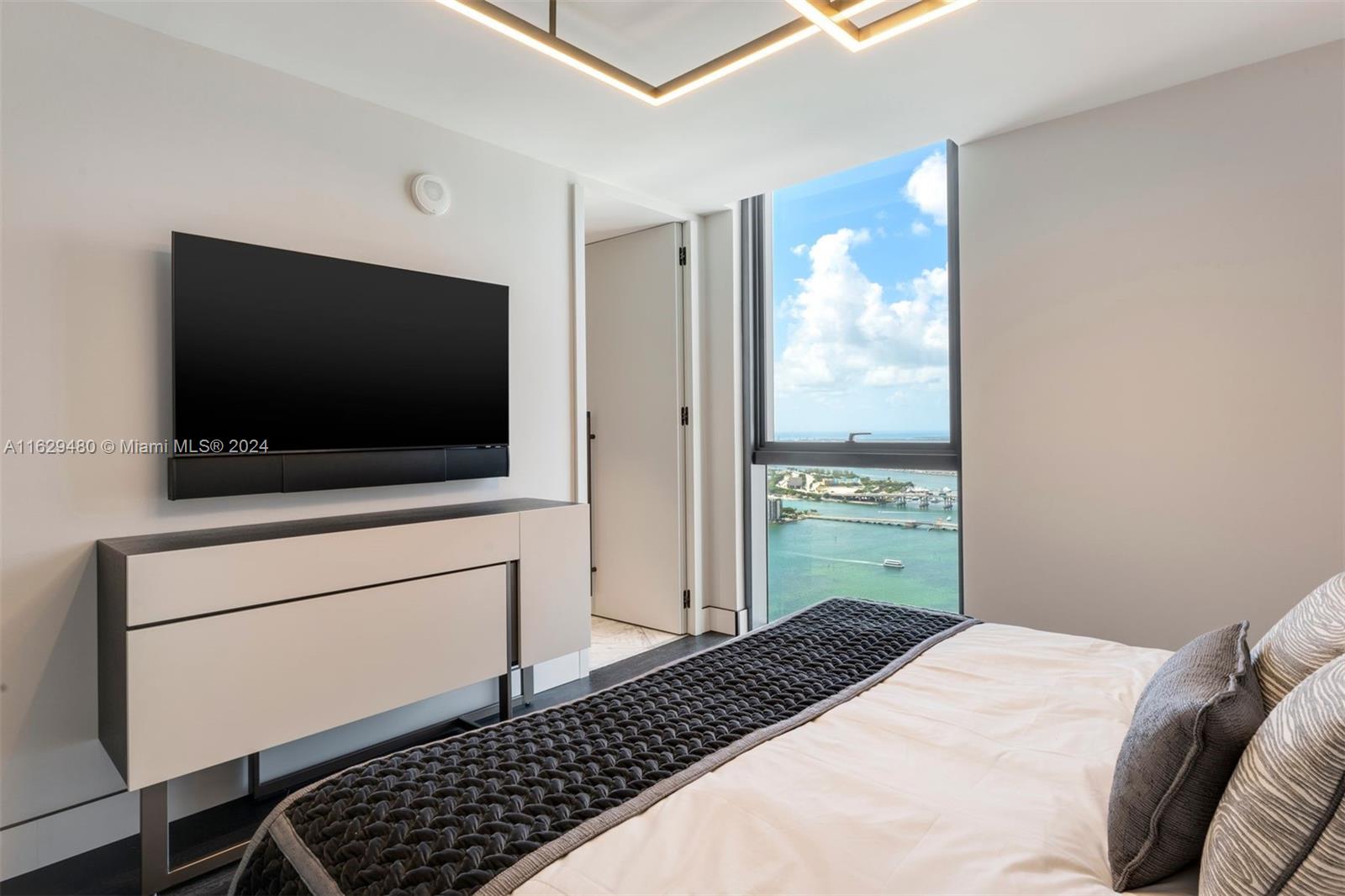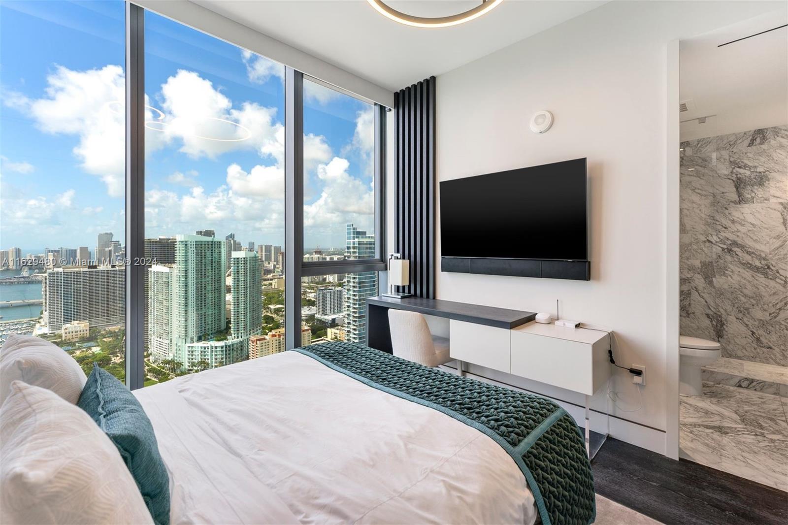 Indulge in luxury living with this 3 BR, 3.5 BA home in the sky, offering unparalleled elegance & sophistication. Spanning 3,500 sq ft, this residence features bespoke finishes, Italian-designed furniture, & rich hardwood flooring. A private foyer leads to a grand salon w/ panoramic views of Biscayne Bay, Miami Beach, & city skyline. The European-style kitchen boasts custom cabinetry, Wolf appliances, & a natural gas cooktop. Primary suite includes a dressing area, walk-in closet, & formal office. Advanced tech features include Lutron Lighting, Josh AI voice control, & Sonos. Fully furnished, turnkey & move-in ready. 5-star Amenities include: gym, spa, business center, 2 pools w/ bar, catering kitchen, & exclusive Sky Lounge designed by Jean-Louis Denoit.