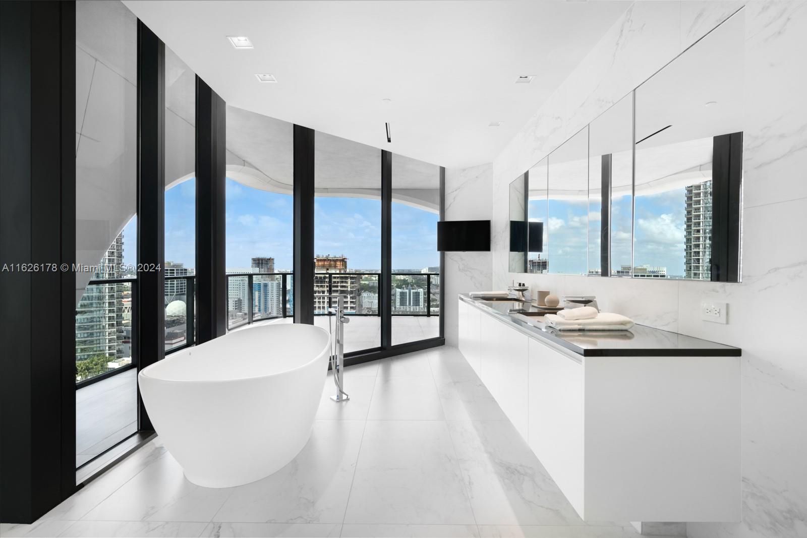 Experience the epitome of luxury in this extraordinary residence at One Thousand Museum, Miami's most prestigious residential tower, designed by the legendary architect Zaha Hadid. This impeccable SE corner half-floor unit offers 4 bedrooms, 5.5 bathrooms, a flow through layout, an expansive 872 SqFt terrace, staff quarters & boasts the finest finishes, including custom closets & exquisite marble flooring, blending elegance & functionality. Enjoy spectacular views of the ocean, Biscayne Bay & the city skyline. Amenities include a rooftop helipad, a private beach club, 5-star spa, gym, indoor & outdoor pools & sky lounge. This development sets a high bar with its extraordinary amenities & unparalleled service. One Thousand Museum is not just a residence; it's a blend of art and engineering