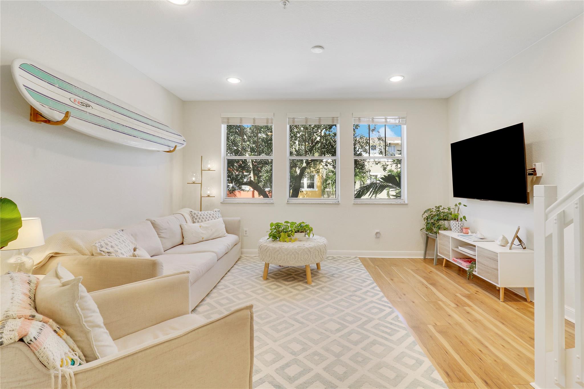 Welcome to this extremely spacious 1,448sqft townhome in the beautiful neighborhood of CitySide. This coastal oasis offers 2 bedrooms, 2.5 bathrooms, and a den that could be converted to a 3rd bedroom if desired. This townhome has new flooring in the den, kitchen, and half bathroom. It also has new carpets installed on the steps and new paint throughout, as well as a new oven and microwave. This unit also has an oversized 1-car garage. 1.5 mile bike ride/ walk on the newly renovated trail around Clear Lake into downtown West Palm Beach. Conveniently located less then a mile from the palm beach outlets, close to 95 for an easy commute, downtown, PBI airport, and Palm Beach Island.