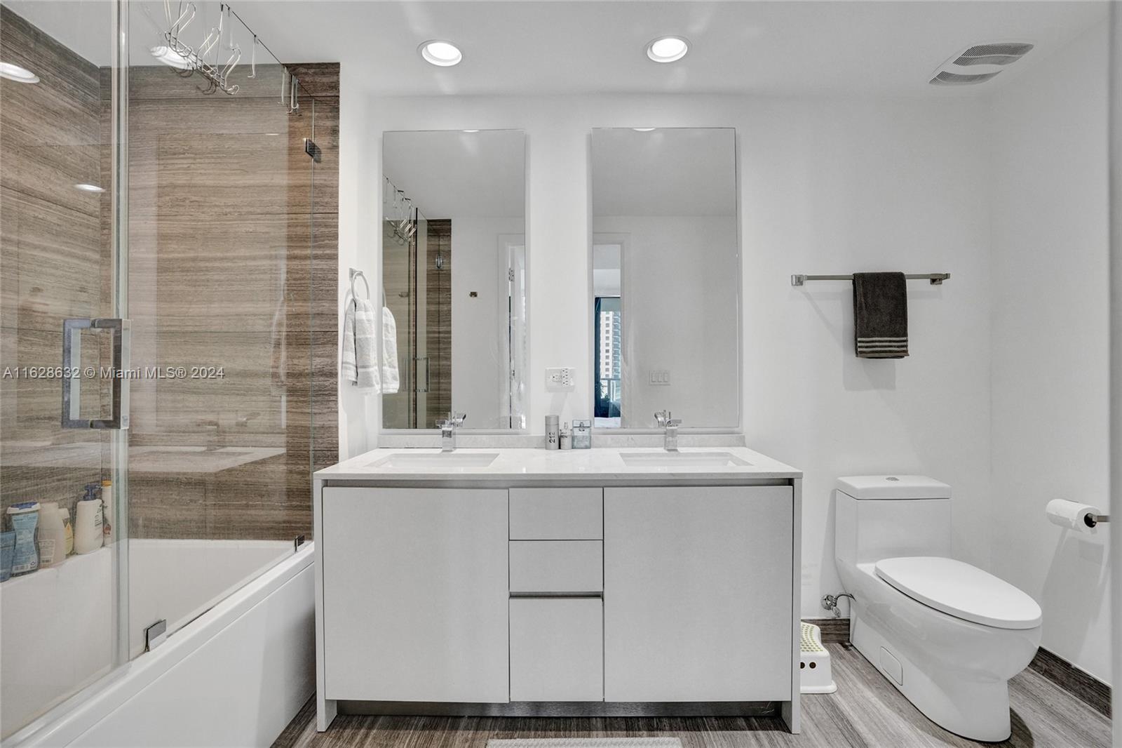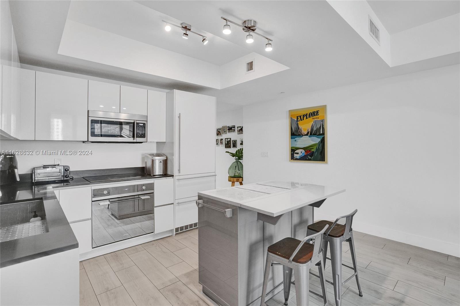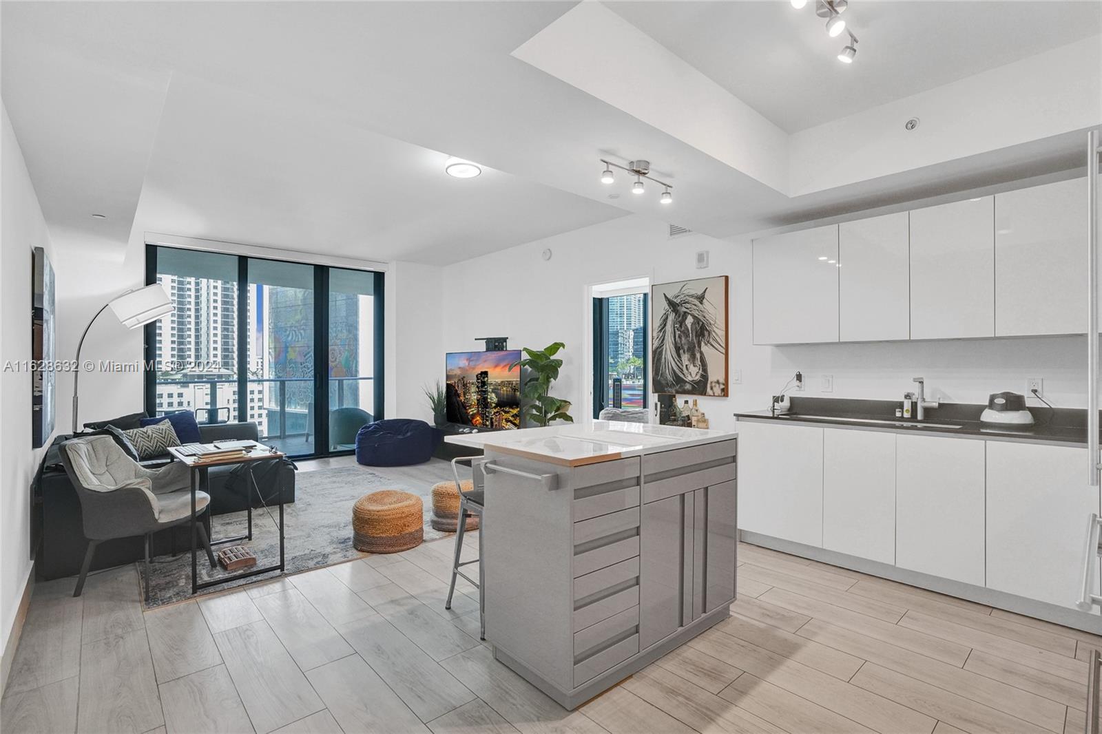 Discover this spectacular upgraded corner unit at the iconic 1010 Brickell Condo. This residence features 1 bed plus enclosed DEN, 1.5 baths, and elegant stone-like porcelain tile flooring. Enjoy the luxury of a glass-enclosed shower, custom-made closets, and 9-foot ceiling heights. The kitchen is equipped with top-of-the-line Smeg appliances. This unit also includes 1 parking space. Enjoy luxury amenities like a rooftop pool, outdoor movie theater, and restaurant. The 12th floor features a co-ed Hammam spa with Jacuzzis, massage rooms, sauna, and steam room. Additional features include basketball and racquetball courts, a running track, indoor pool, fitness center, party room with kitchen, BBQ terrace, and a kids' room with bowling, virtual golf, and ping-pong. Schedule a showing today!