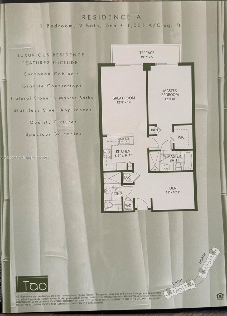 Enjoy resort style living in this luxuriously appointed, one bedroom, two full bathroom + den condo perched high up on the sixteenth floor of the majestic Tao Condominium. This "like-new" luxury condo has served as a second home for the same tenant since it was built. A foyer entrance welcomes you into a spacious living room with water and sunset views that will take your breath away. Cater to guests from your gourmet kitchen, with top of the line, stainless steel appliances and ample granite countertops. No expense was spared! The unit boasts 24"x24" marble floors throughout, a built-out walk-in closet, and a generous den that is suitable for a second bedroom or WFH office (photos are virtually staged). Don't miss this opportunity!! A life of luxury awaits at Tao Condominium.
