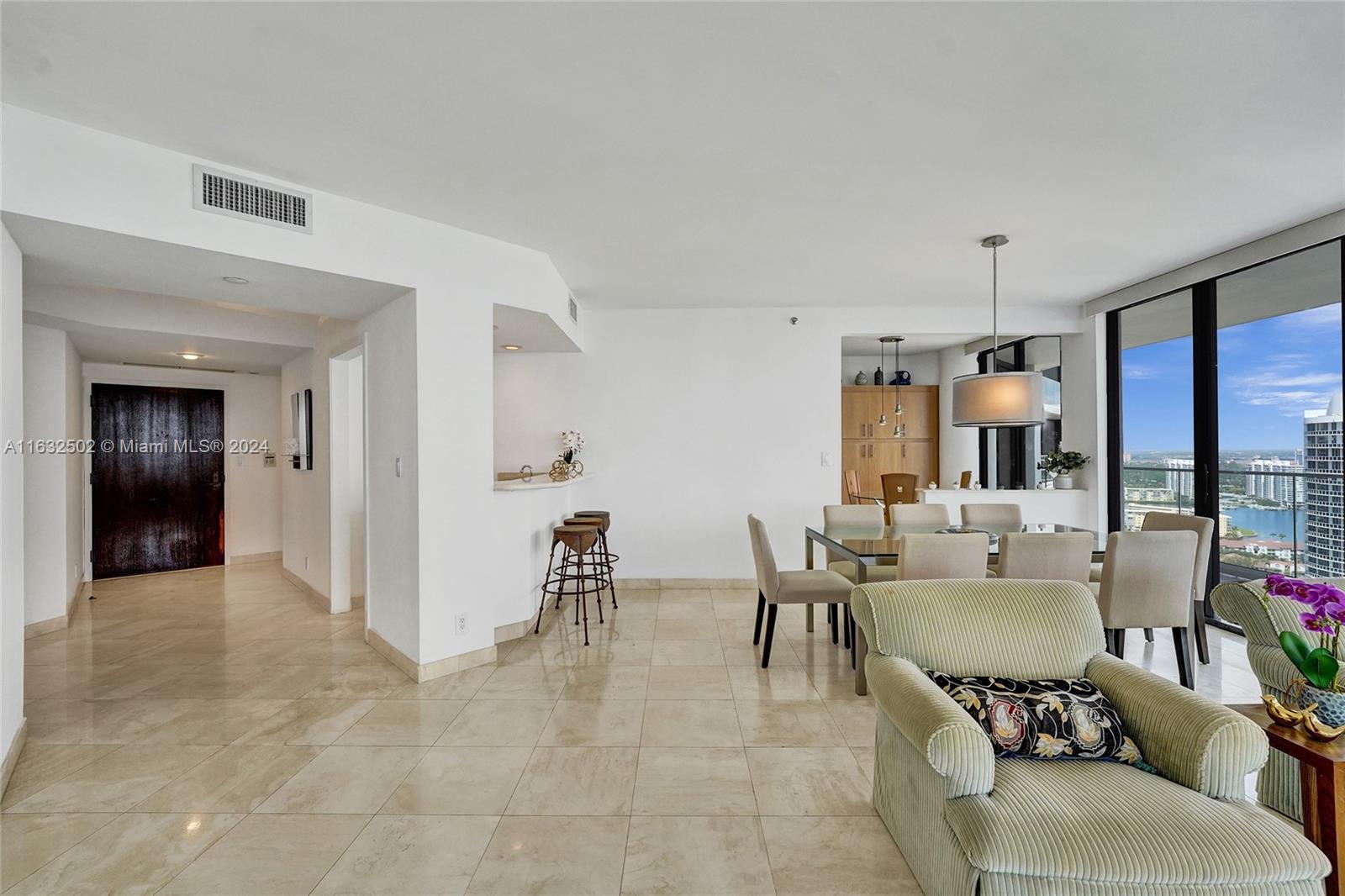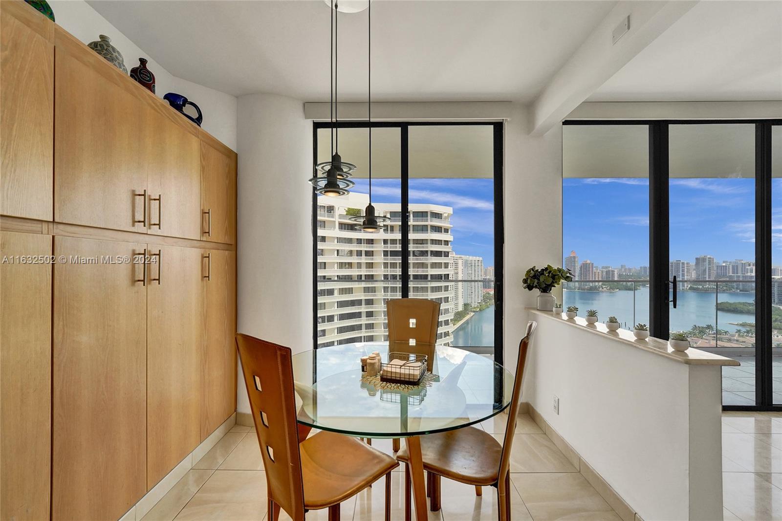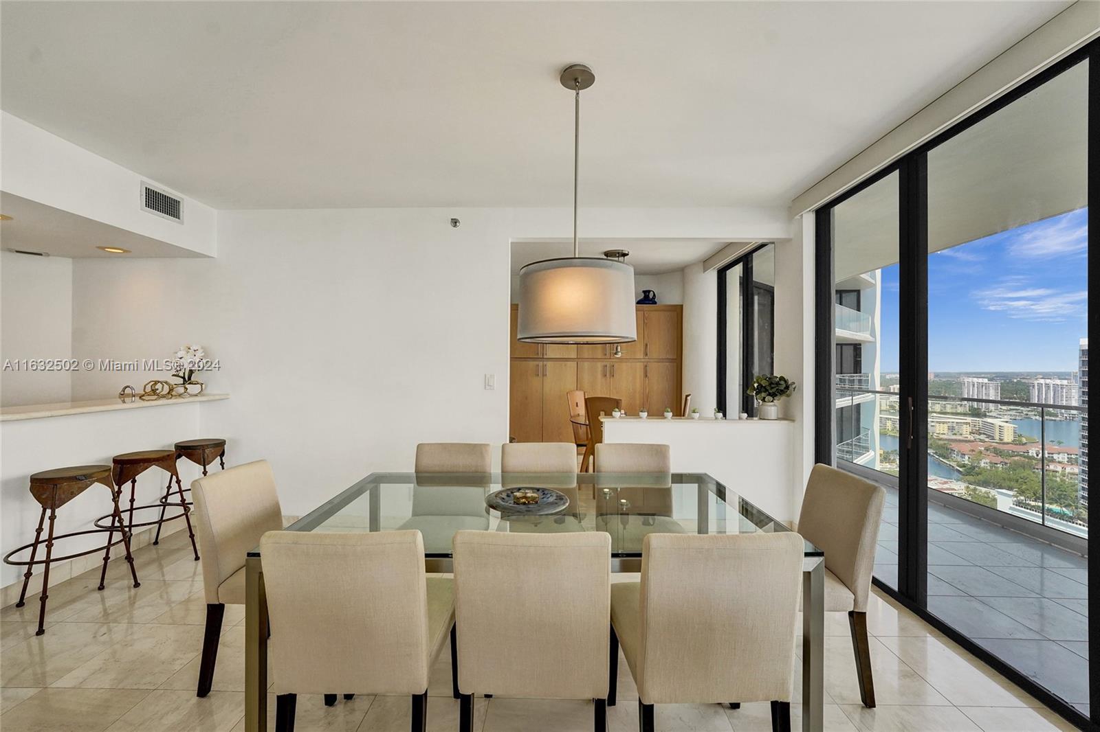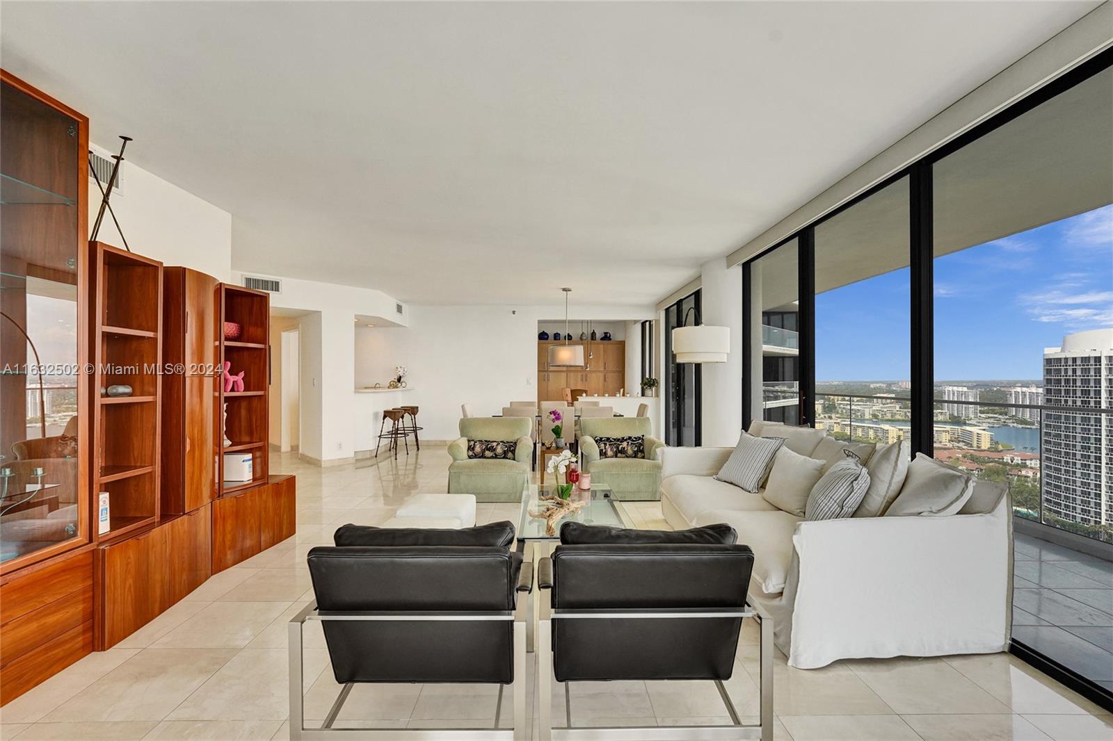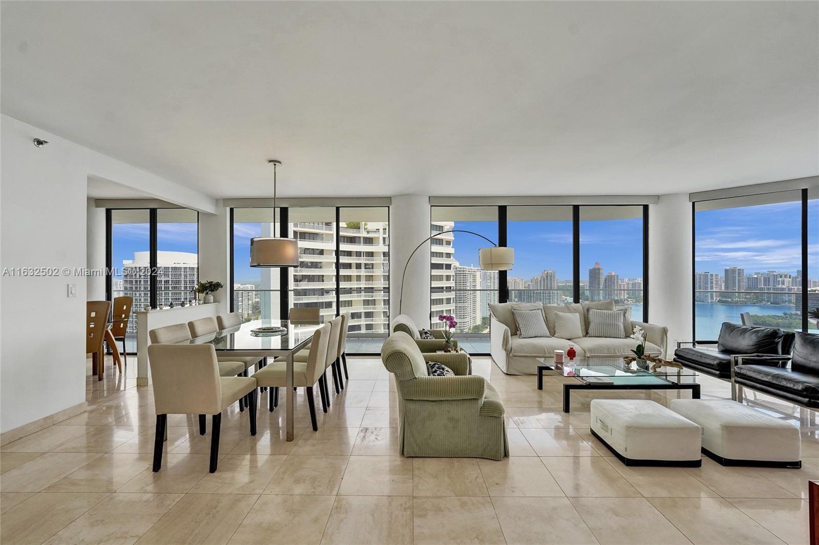 Experience stunning Intracoastal water views from every room in this turnkey 3-bedroom, 3-bathroom sky-high residence with a wraparound balcony, offering both sunrise and sunset vistas. The open floor plan features an expansive master suite with ample closets and an open kitchen. This home is equipped with elegant lighting and shades on every door. Includes a 2-car garage valet parking. Nestled on the prestigious Williams Island, which offers an exclusive and private lifestyle. The 2800 building boasts full-service amenities including a pool, jacuzzi, gym, and more. A pleasure to show.