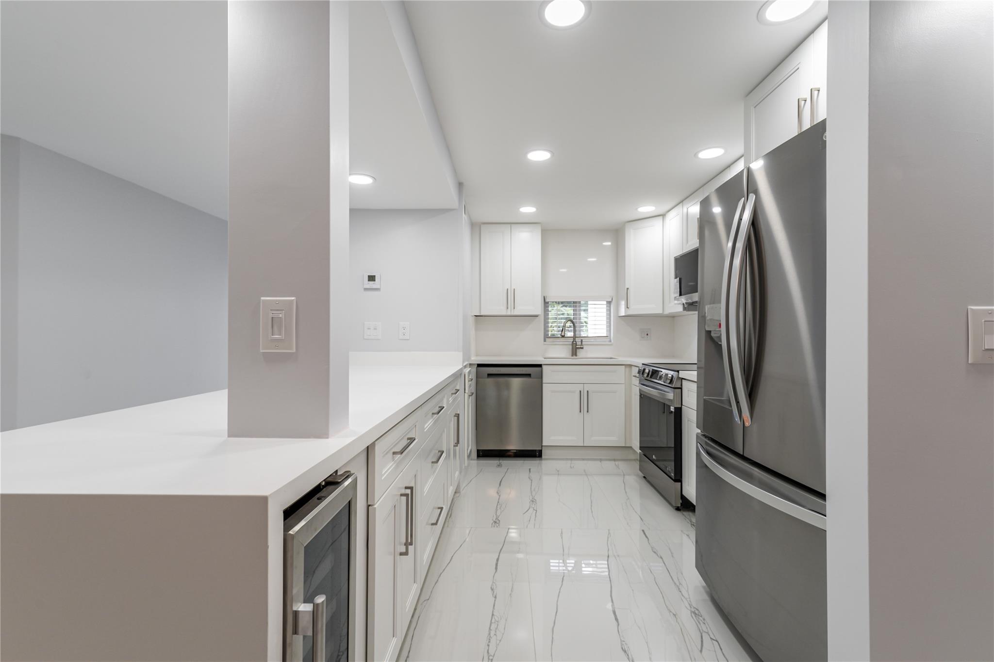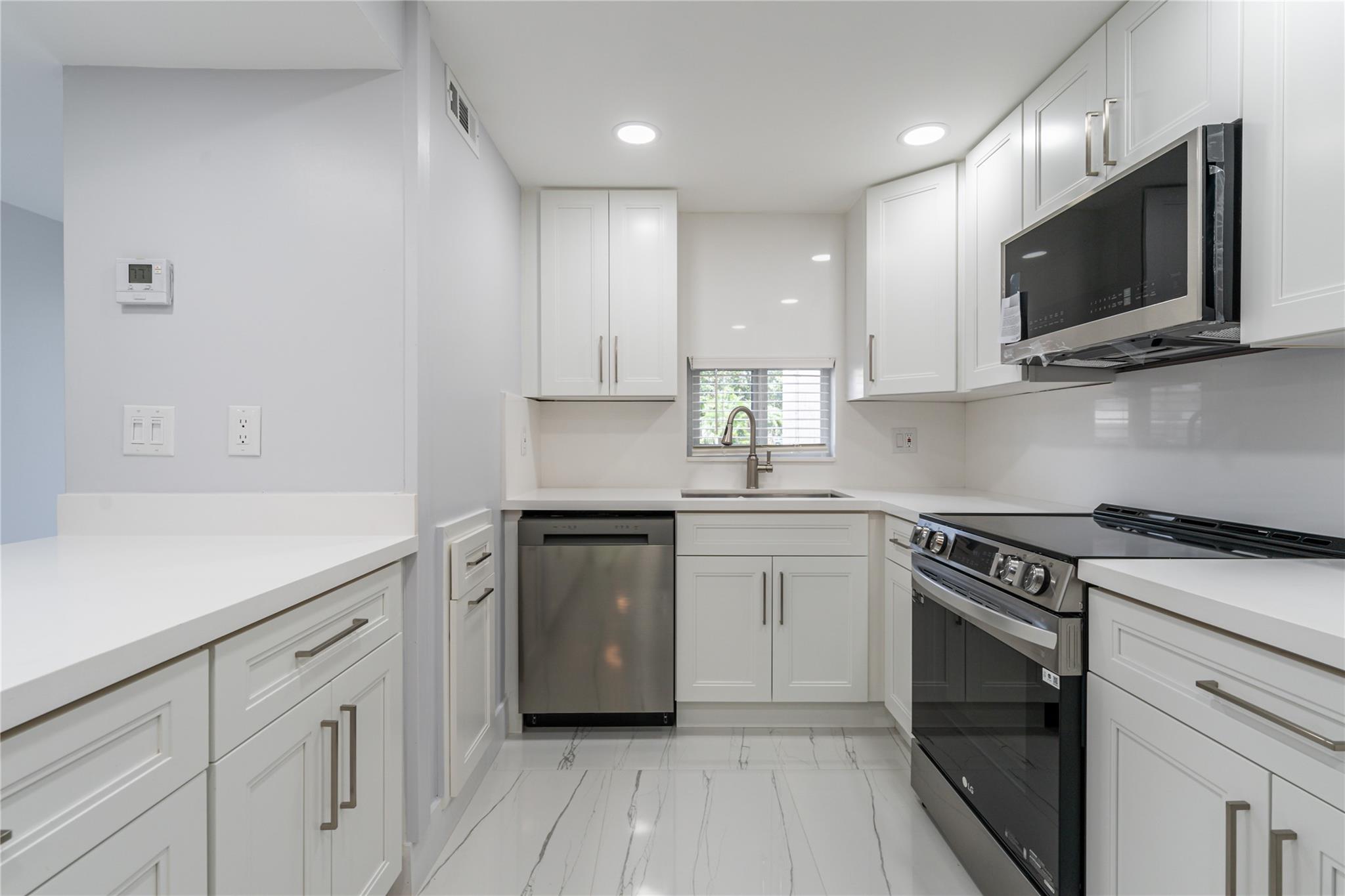 NEW! NEW! NEW! TOTALLY UPDATED! WASHER/DRYER! 2BR/2BA. Wide Open updated & expanded kitchen features large counter for 4 chairs, high ceiling, LED lighting, soft close cabinetry, & stainless steel appliances. LARGE CERAMIC TILE THROUGHOUT! Large walk-in closets. IMPACT GLASS! Two bathrooms feature beautiful showers and lighted vanity mirrors. Clubhouse across the street. FREE golf (except cart fees) on two 18 hole courses (PGA & Par3); Amenities include Restaurant, Billiard Room, Bbq-Picnic Area, Clubhouse, Courtesy Bus, Exercise Room, Heated Pool, Library, Putting Green, Sauna, Shuffleboard, Tennis, Pickle Ball, Vehicle Wash Area, Electric Car Charging Station. Close to shopping, dining & highways. 15 minutes to beach. Association says 55+ age required; ELEGANT! BETTER THAN PERFECT!