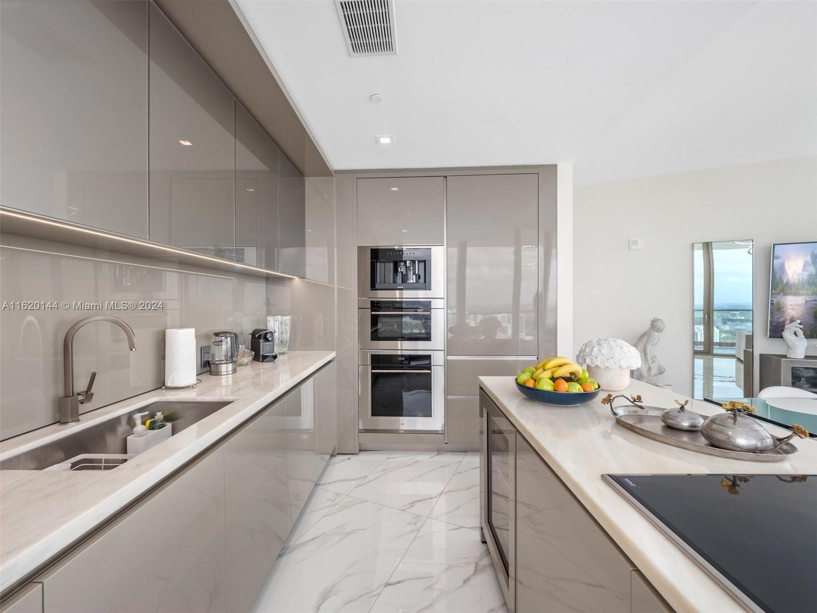Stunning beachfront gem in Sunny Isles at the exclusive Residences by Armani Casa. This 2 bedroom, 2 bathroom retreat features marble floors, Italian wood throughout the bathrooms, walking closet and kitchen. The glass floor-to-ceiling walls open up to a vast balcony, offering breathtaking panoramas of the bay, beach and cityscape. Enjoy culinary excellence with brand new Wolf and Sub-Zero kitchen appliances complemented by Italian marble countertops. Experience a resort style of living with amenities/ services such as the following: restaurant, private beach/pool with food/towel service, state-of-the-art gym, spa steamroom/sauna, cigar room, wine room and more.