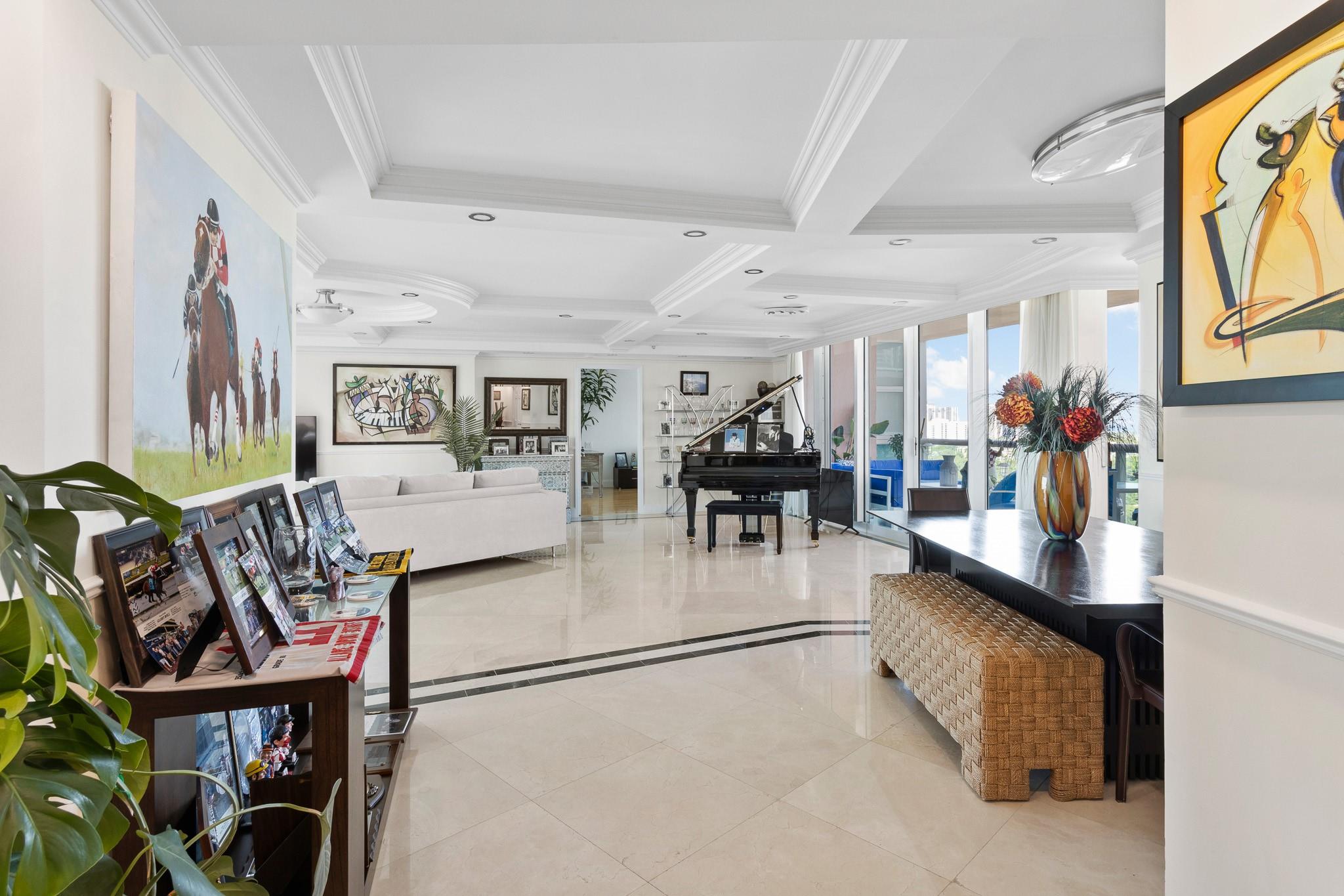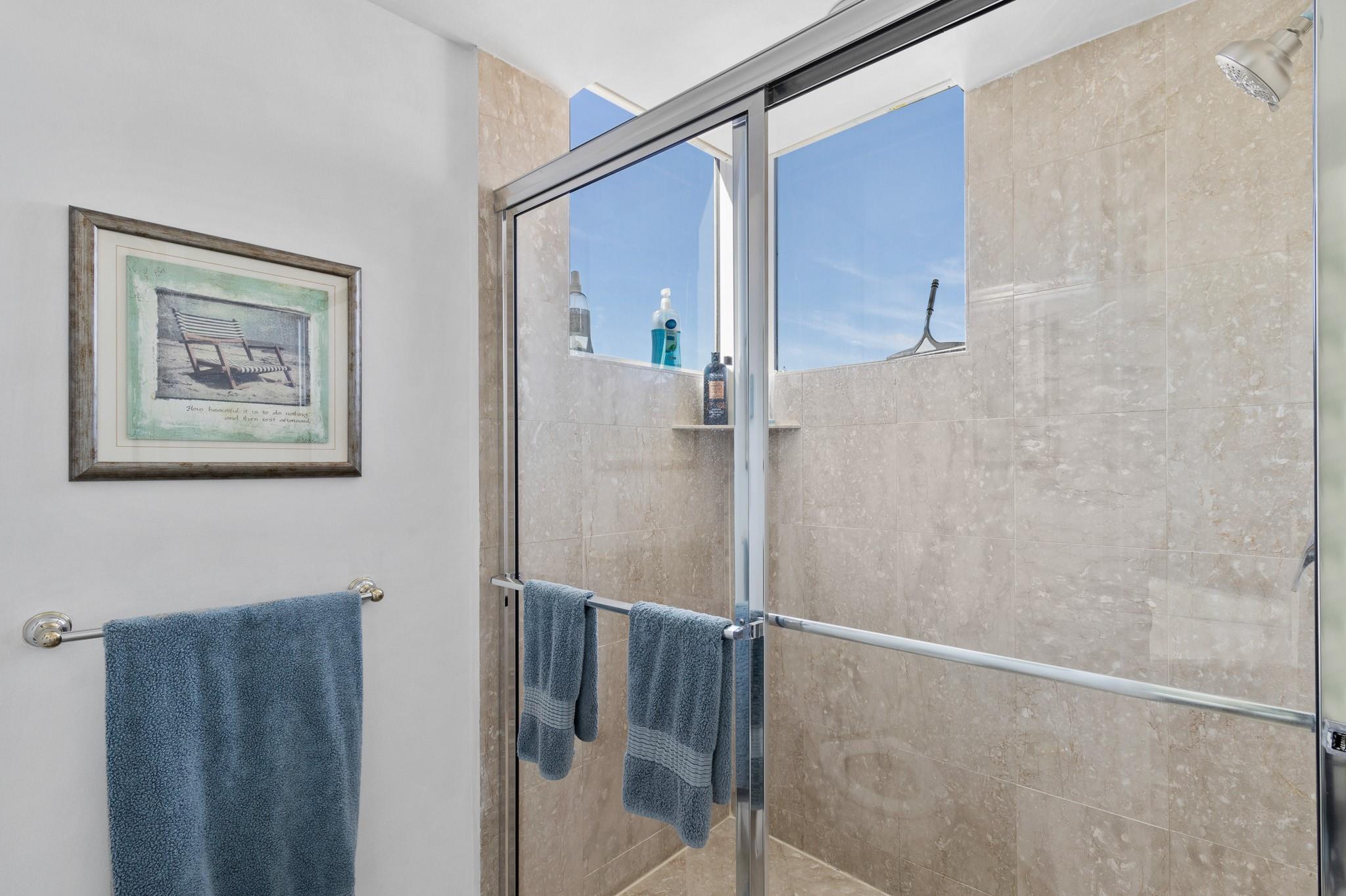 Immaculate oversized 2+2.5 Penthouse with rare see through views in living area of Ocean and Intercostal. Fully remodeled Kitchen including appliances; wainscoting; glazed subway tile; natural wood like porcelain tile flooring; plus comfortable breakfast bar, enhances this one of a kind kitchen. The custom coffered ceilings in living room and dining room, blends retro with elegance. Enjoy your evening views from your penthouse balcony or from every room inside your home. Each bedroom has a private ensuite. Primary ensuite has dual sinks, sinking tub and a private shower. Guests will welcome the custom powder room. Every room showcases one of a kind design. Pickle ball; tennis courts; workout room; community patio; and winding pool are just a few of the amenities. Pride of ownership shows.