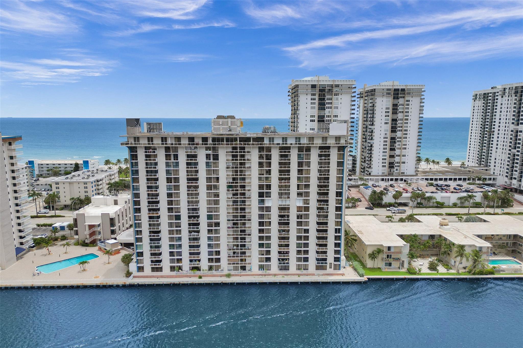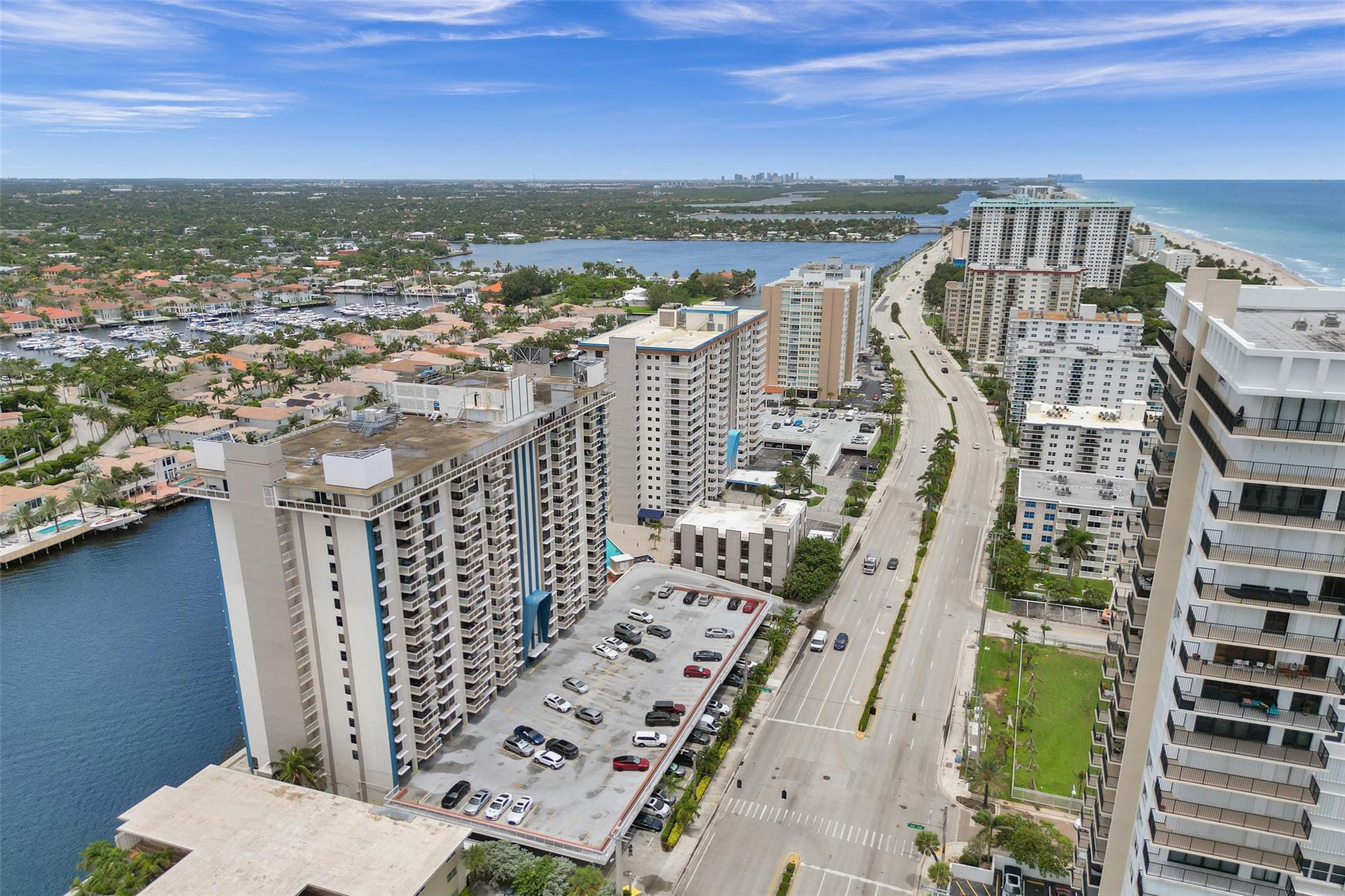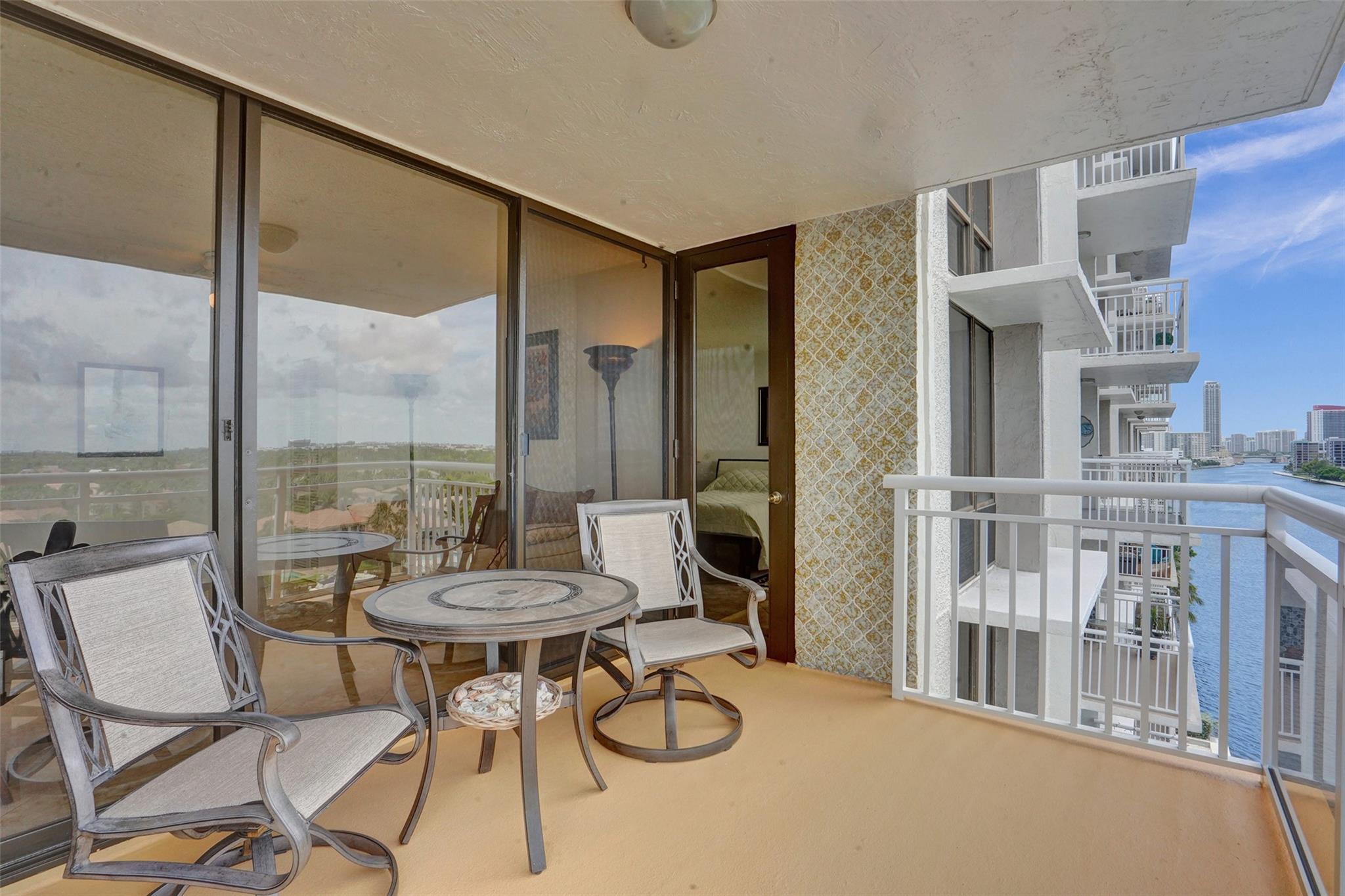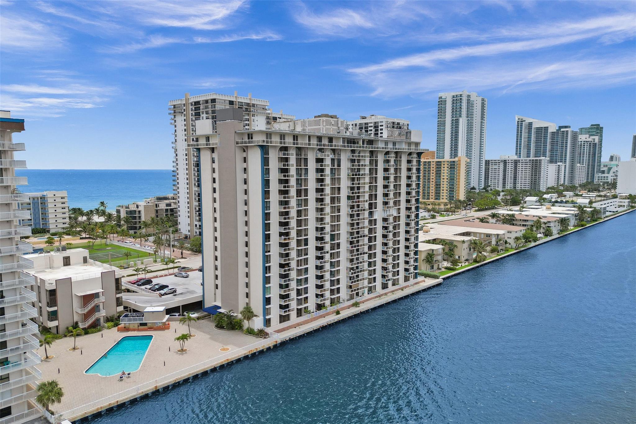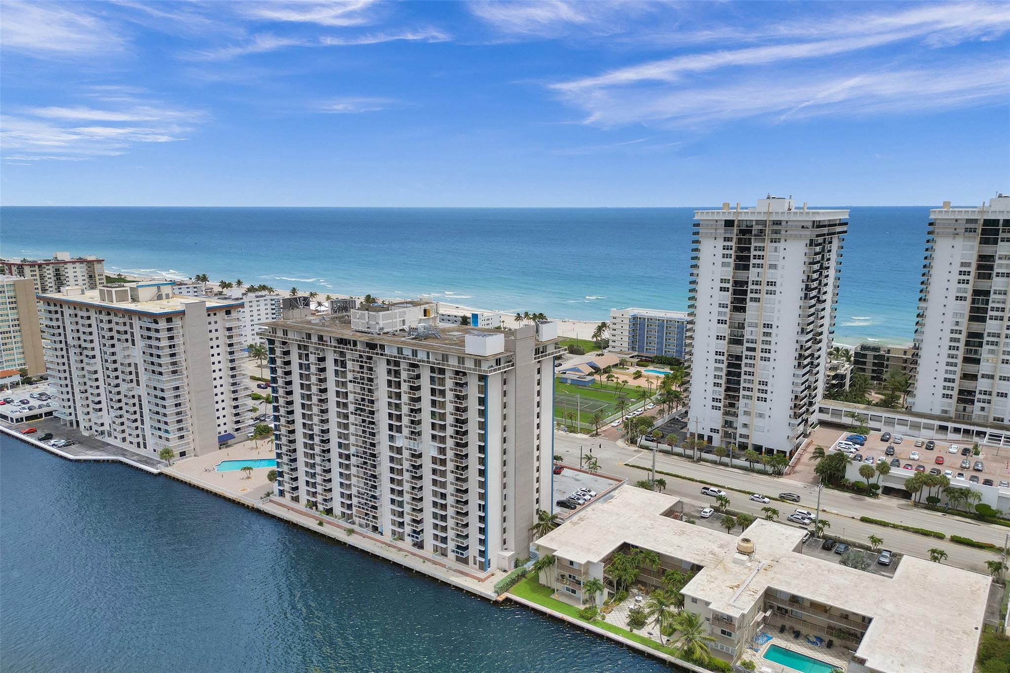 Stunning Allington Towers Condo just hit the market in Hollywood Beach! This brilliant corner-unit condo features 2 bedrooms, 2 bathrooms, and 1400 square feet of bright and airy living area with captivating panoramic views of the scenic intracoastal, overlooking the opulent water-front mansions of Harbor Island. Enjoy the daily scenic sunsets from the comfort of your covered balcony. The kitchen with breakfast nook features stainless-steel appliances, granite countertops, and ash hardwood cabinets. The master-suite includes a walk-in closet, sitting area, and a sliding-glass shower enclosure with access to the balcony. One permanent assigned covered parking space included. Centrally located within walking distance to Hollywood's finest dining, shopping, entertainment, and beaches.