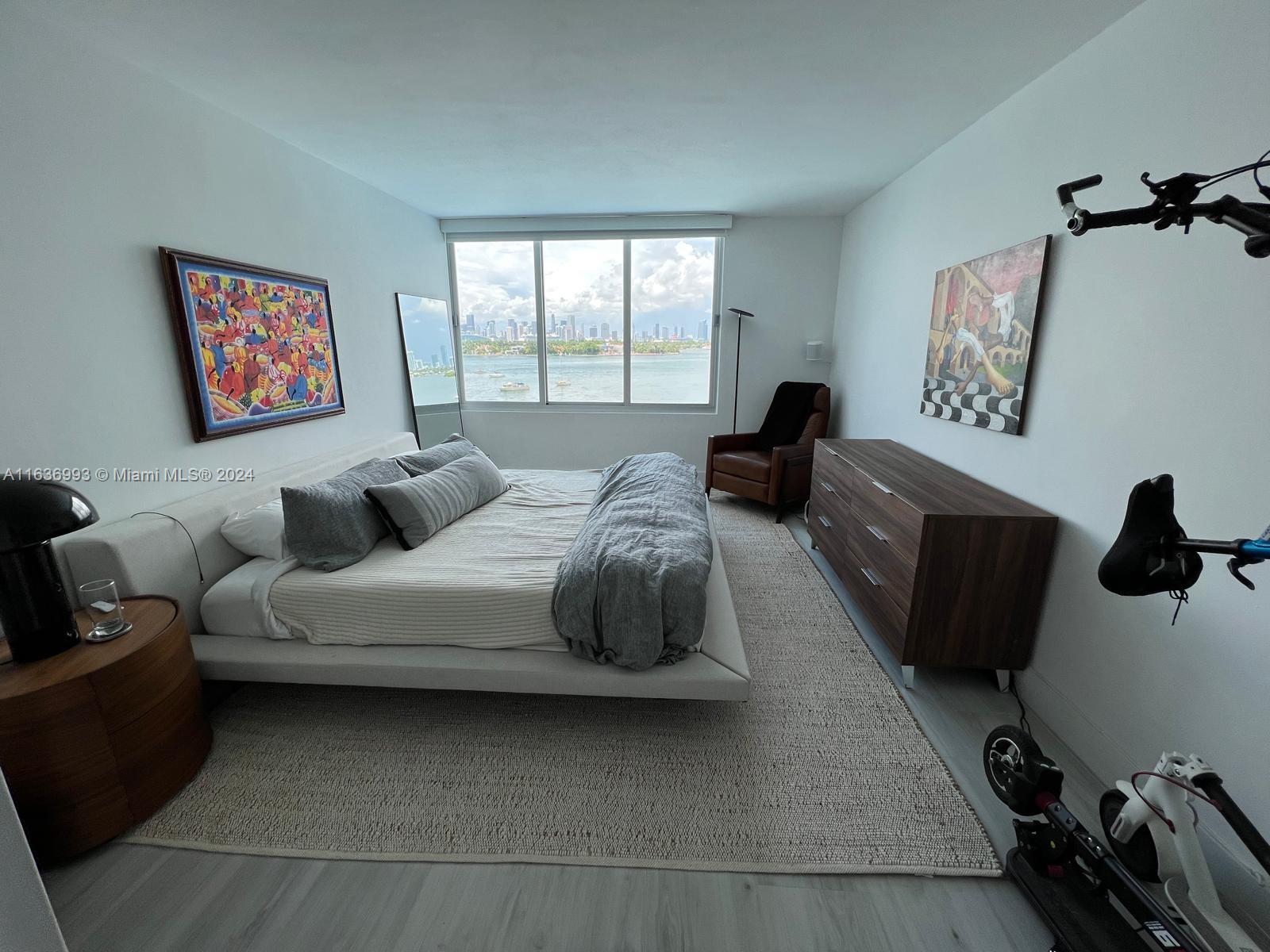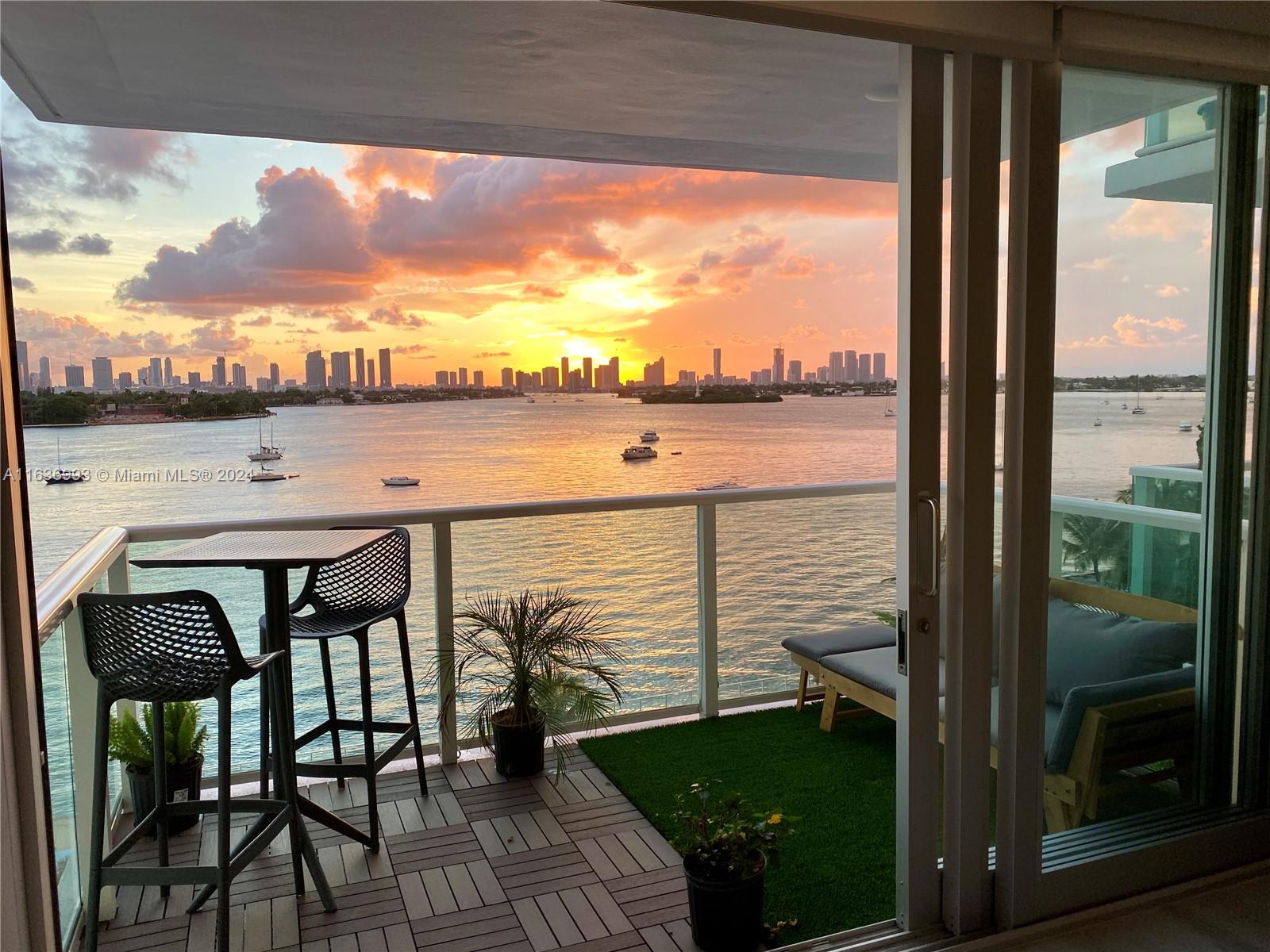 Breathtaking direct water views of Downtown Miami, Star and Hibiscus Island from every window! Best sunset views on South Beach. Meticulously renovated 1/1 unit in the Mirador South featuring modern, open kitchen with stainless steel appliances and stone counter tops. Upgraded bathroom featuring open shower and modern fixtures. New hurricane proof windows and all glass balcony. Electric blackout shades. Assigned parking space in the garage for additional 25K. Mirador offers full-service amenities with 24-hour concierge, security, pool, jacuzzi, valet and 5000 sq ft fitness center. High speed internet and cable included in the maintenance. All special assessments paid.