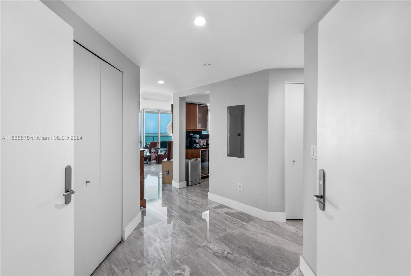 Experience luxury waterfront living in the heart of Brickell with this sophisticated resort-style unit boasting stunning views and unparalleled elegance. Just steps from all the booming action, this location offers five-star amenities including a state-of-the-art fitness center with bay views, an infinity-edge pool with cabanas and towel service, a spa, sauna, and steam room, as well as a roof-top sky lounge, library, media room, observation deck, business center with conference room, racquetball court, and on-site restaurant. With a private entrance from the elevator direct to your unit and two parking spaces (one assigned and one valet), this excellent building promises an unmatched living experience in the prime location of Brickell.