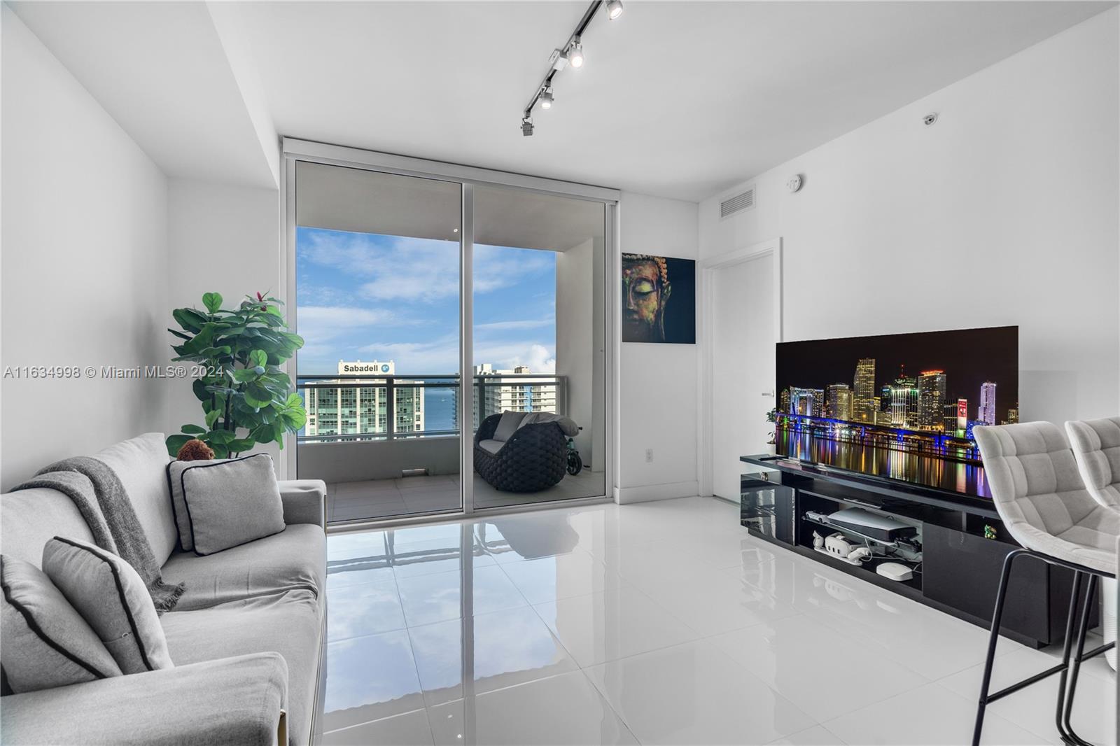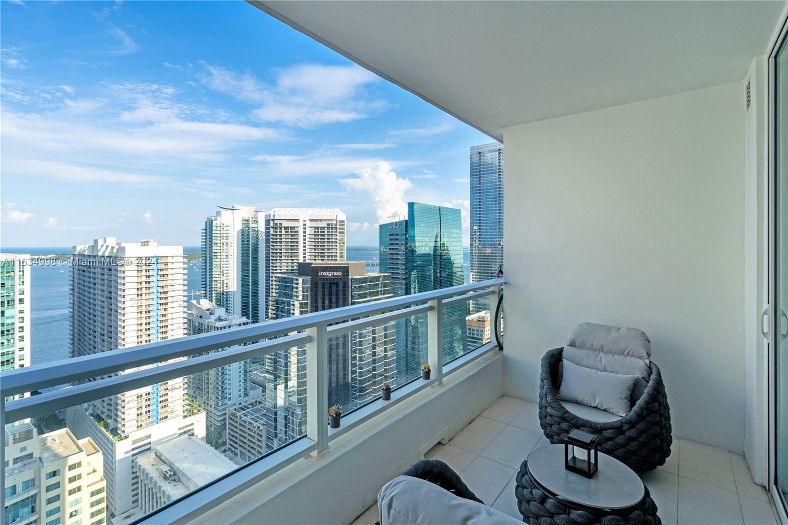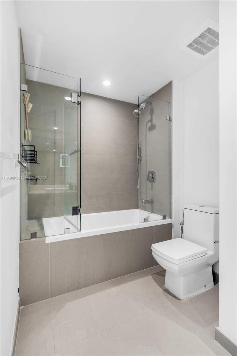 Experience breathtaking water views from this modern 1-bedroom, 1,5 bath unit, plus a huge den, featuring spectacular bay and city vistas along with a spacious balcony. The Italian kitchen boasts high-end appliances, while abundant natural light, white porcelain flooring, and elegant ceramic in the bathroom create a fresh ambiance. Enjoy the convenience of a new washer & dryer and a newly built closet. Located steps from Brickell City Centre, this condo includes one assigned parking space. The Bond on Brickell is a luxurious residential skyscraper offering resort-like amenities, including a pool area with jacuzzi, summer kitchens, stylish lounge, children's playroom, fitness center, sauna+steam room, valet, business center, and an on-site Starbucks.