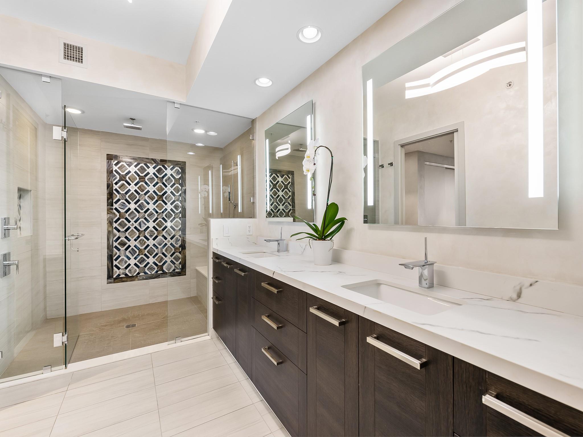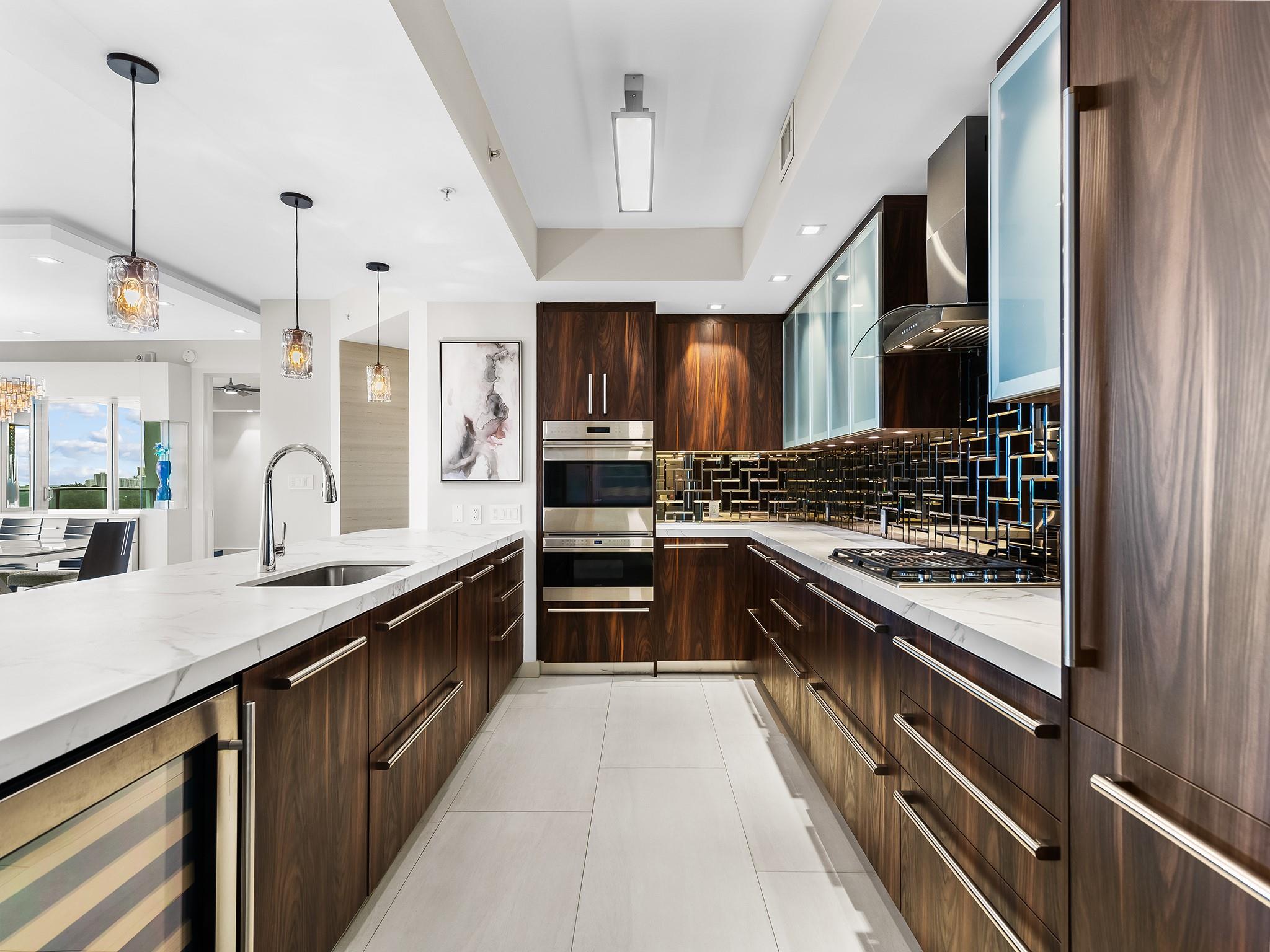 Experience true luxury living in this custom-designed 10th floor unit! Private foyer entry welcomes you to the grand open-concept living areas bathed in natural light from floor-to-ceiling windows/doors - offering breathtaking river & ocean views! Thoughtfully designed dream kitchen has Italian cabinetry with roll outs, Wolf GAS cooktop, Subzero frig, wine cooler and oversized waterfall edge island. Modern glass-enclosed home office provides an efficient & private workspace. Bedrooms are ensuite, with built-out closets; also Lutron Smart Lighting, electric blinds. Massive & deep 70’ long terrace invites fresh-air dining/living w/its built-in gas summer kitchen. Also: Indoor Laundry, 2/pkg spaces, large 50 SF storage locker & superior resort-style amenities ensure an unparalleled lifestyle!