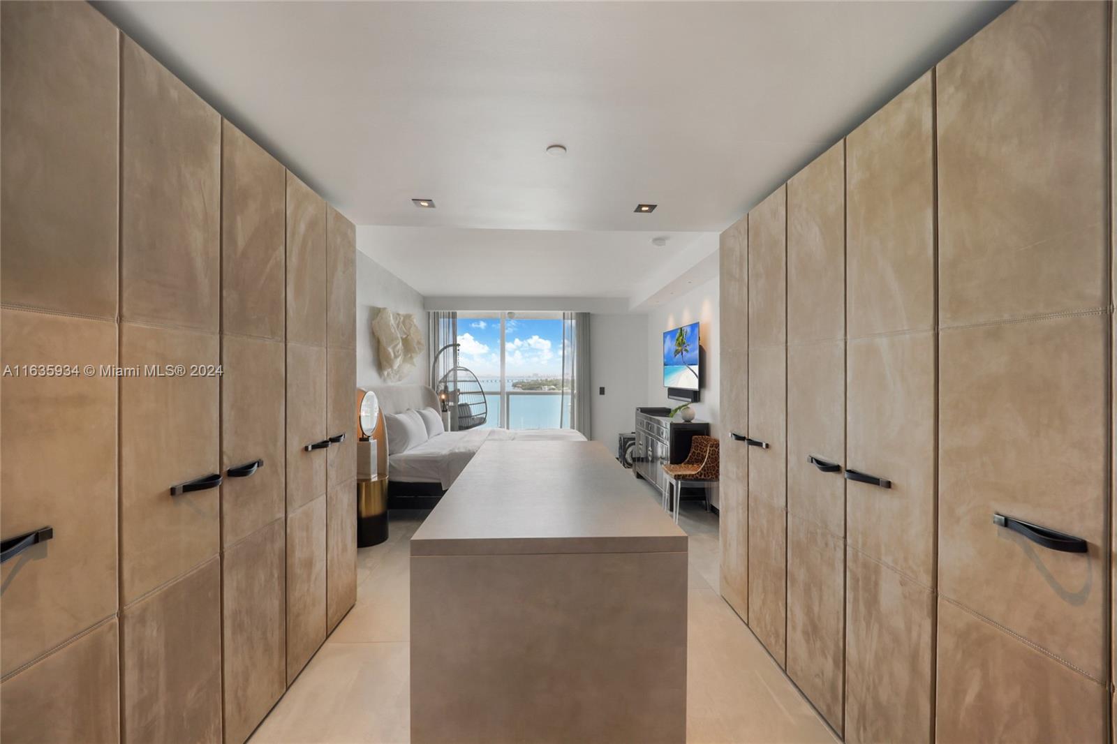 Exquisite designer-furnished Belle Isle residence with stunning views of the bay. Designer finishes featuring Poggenpohl kitchen with Gaggenau appliances. Frameless Italian doors throughout, Refin ceramic floors, and custom Italian suede closets in the primary bedroom. Keuco vanities and Rubinet fixtures elevate the bathrooms. New impact windows and AC enhance comfort. Smart home integration controls audio, video, lighting, and window treatments via an app. GV offers valet, concierge, tennis courts, fitness center, pool, and tennis courts. All within walking distance to The Standard, Sunset Harbour shops and restaurants, and a beautiful park.