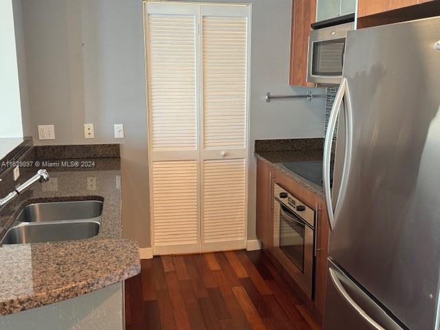 Updated Price! Beautiful unit on the 25th floor of Met 1 in downtown Miami. This split floor plan faces Southeast and has great water views. The unit features stainless steel appliances and a spacious pantry for extra storage. The master bedroom is large with a great walk-in closet. The master bath has a double sink along with a tub and a separate shower. The second bedroom also has a large walk-in closet. Walking distance to everything Downtown Miami has to offer including Joe and the Juice and Silverspot Cinema downstairs. The building has a fitness center, business center, children’s playroom, business center and also 24-hour security and valet.