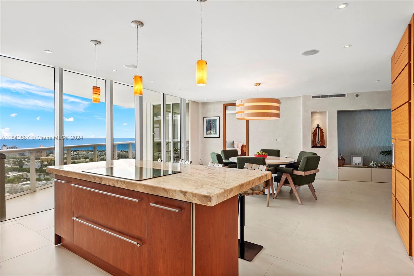 This rarely available 04-line flow-through residence offers stunning sunrise and sunset views, an open floor plan, and in-wall speakers in every room. The living area features intricate millwork and two elegant sitting areas, perfect for entertaining. The master suite includes a rain shower with jets and an in-wall mirror TV in the bathroom. Located in the sought-after South of Fifth neighborhood, this 3,000 sq. ft. home showcases floor-to-ceiling glass windows, Sub-Zero and Miele appliances, and breathtaking views of the ocean, bay, and city. Murano Grande offers luxury amenities, including a full-service pool, lighted tennis court, 24-hour valet, and concierge services, all within walking distance to South Pointe Park and top restaurants.