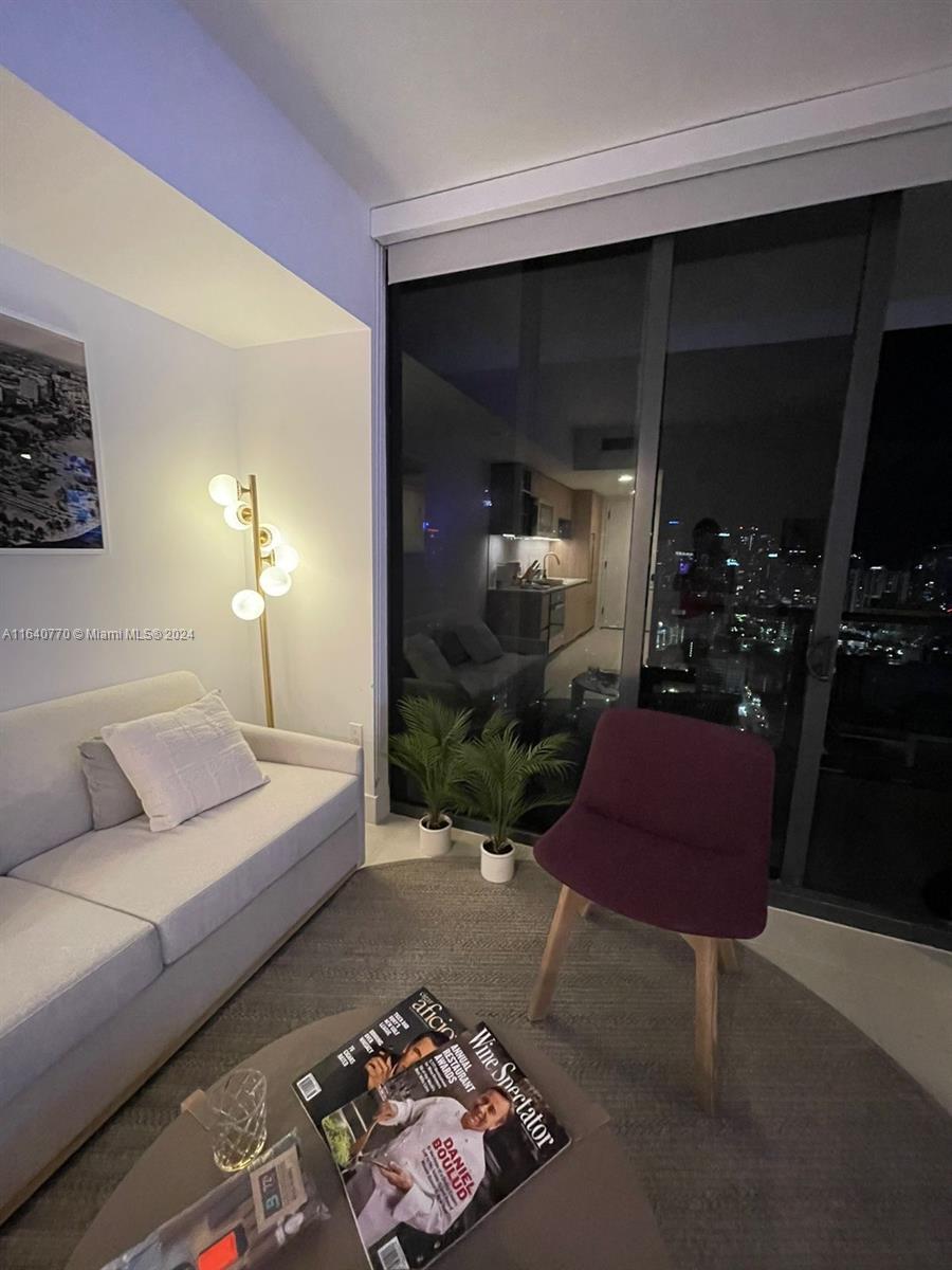 Elevate your lifestyle in this luxurious 1-bedroom, 1-bathroom unit on the 44th floor of Natiivo Miami. Enjoy breathtaking views of the Miami skyline and Biscayne Bay through floor-to-ceiling windows, with a private balcony for added allure. The open layout features a modern kitchen with stainless steel appliances and quartz countertops. Natiivo Miami offers unparalleled amenities, including a rooftop pool, state-of-the-art fitness center, yoga studio, spa, and 24/7 concierge. With no short-term rental restrictions, this unit is perfect for both living and investment. Located in the heart of Downtown Miami.