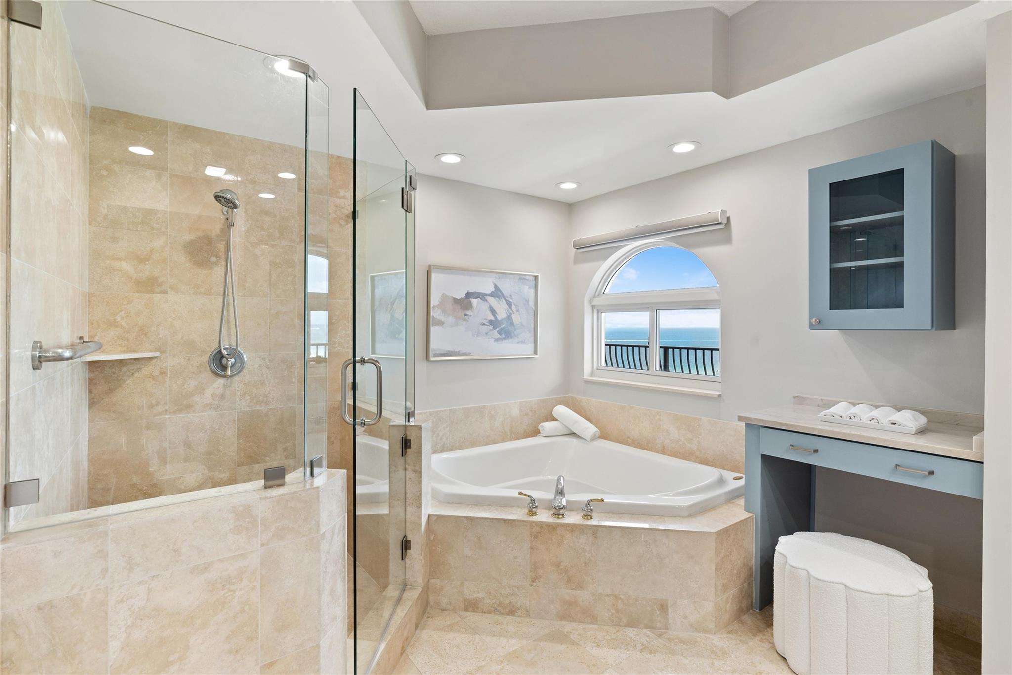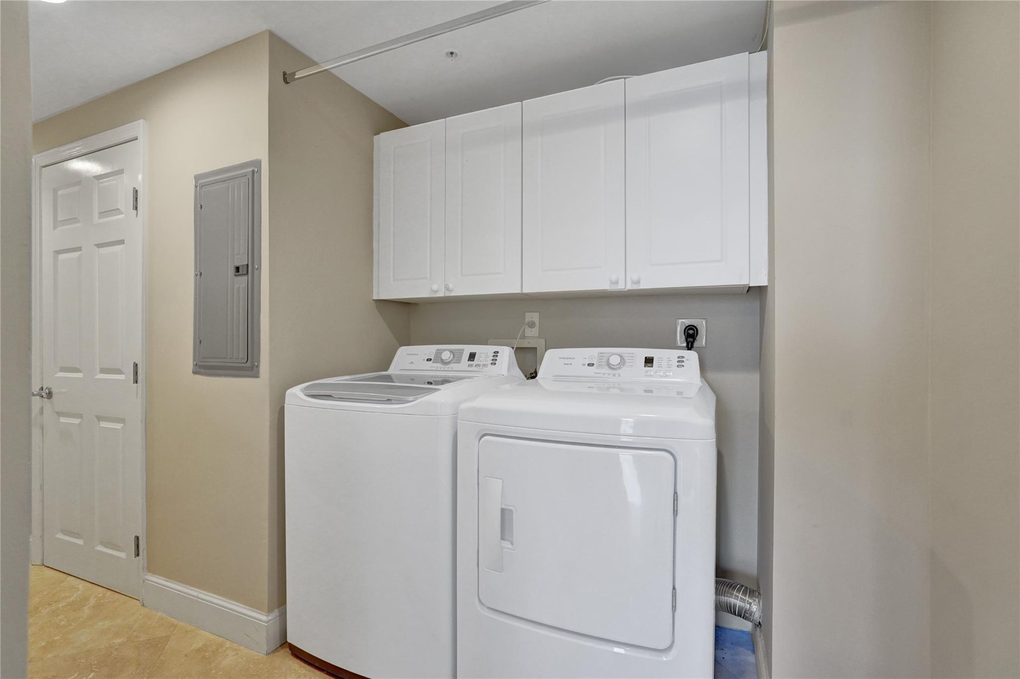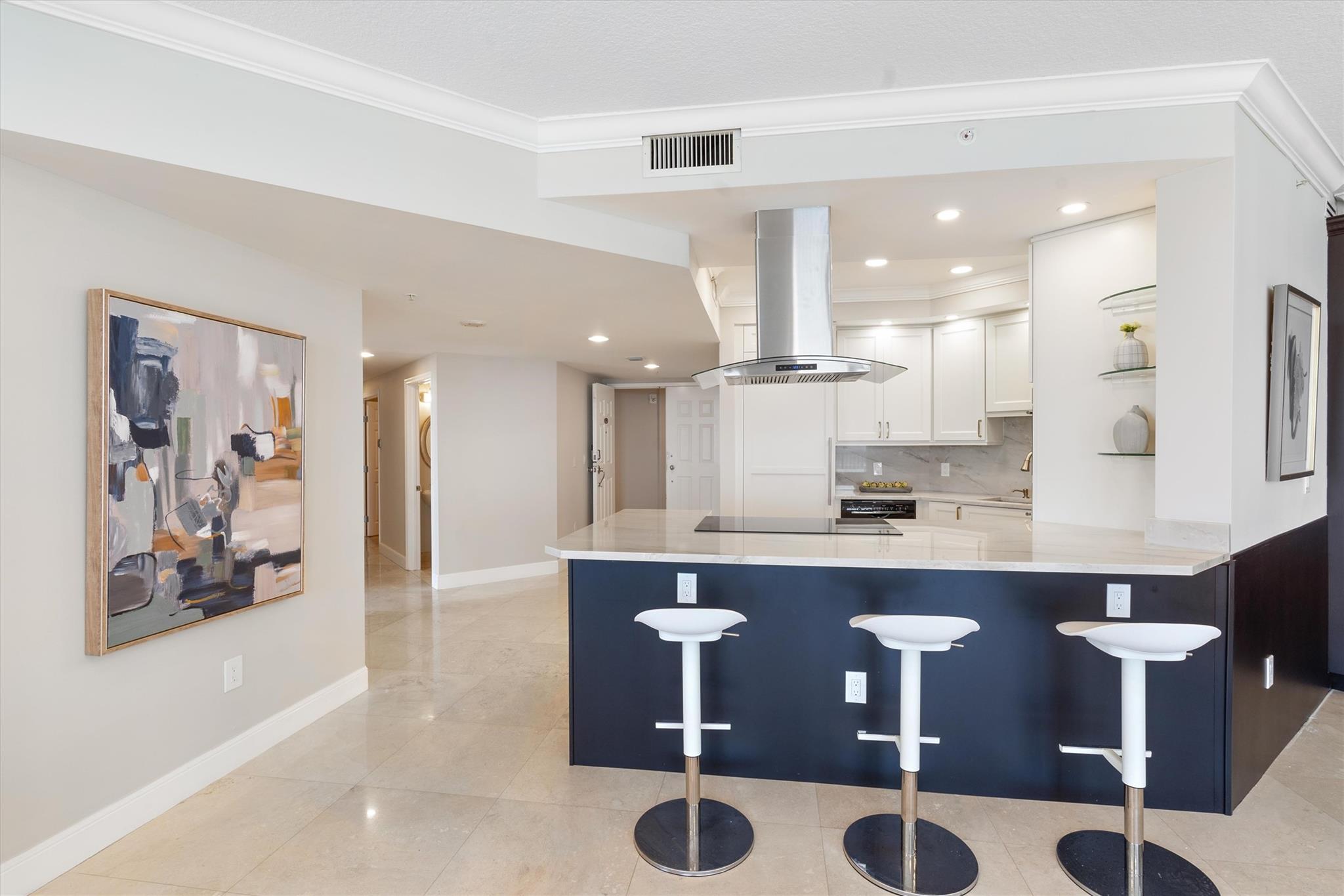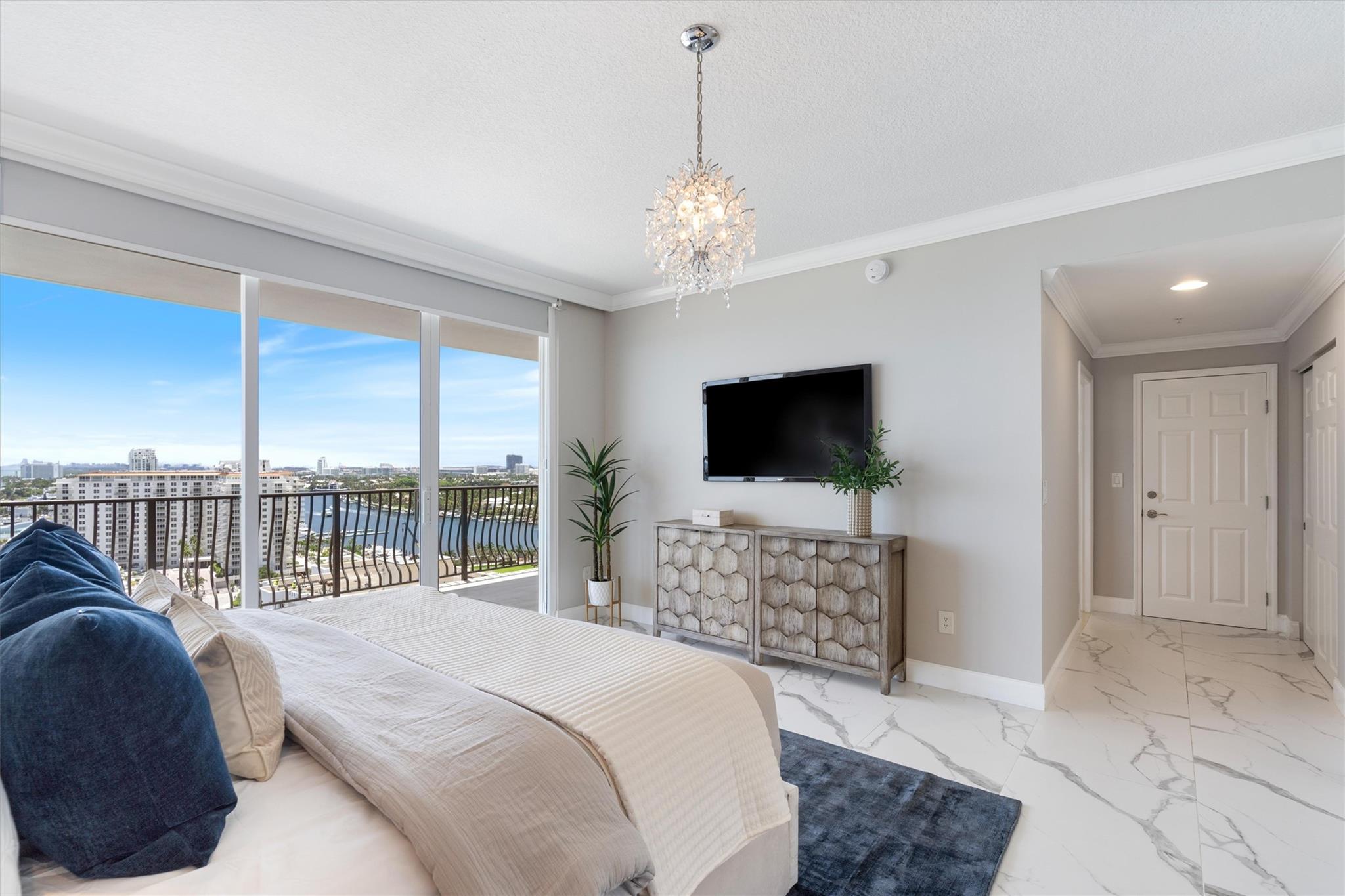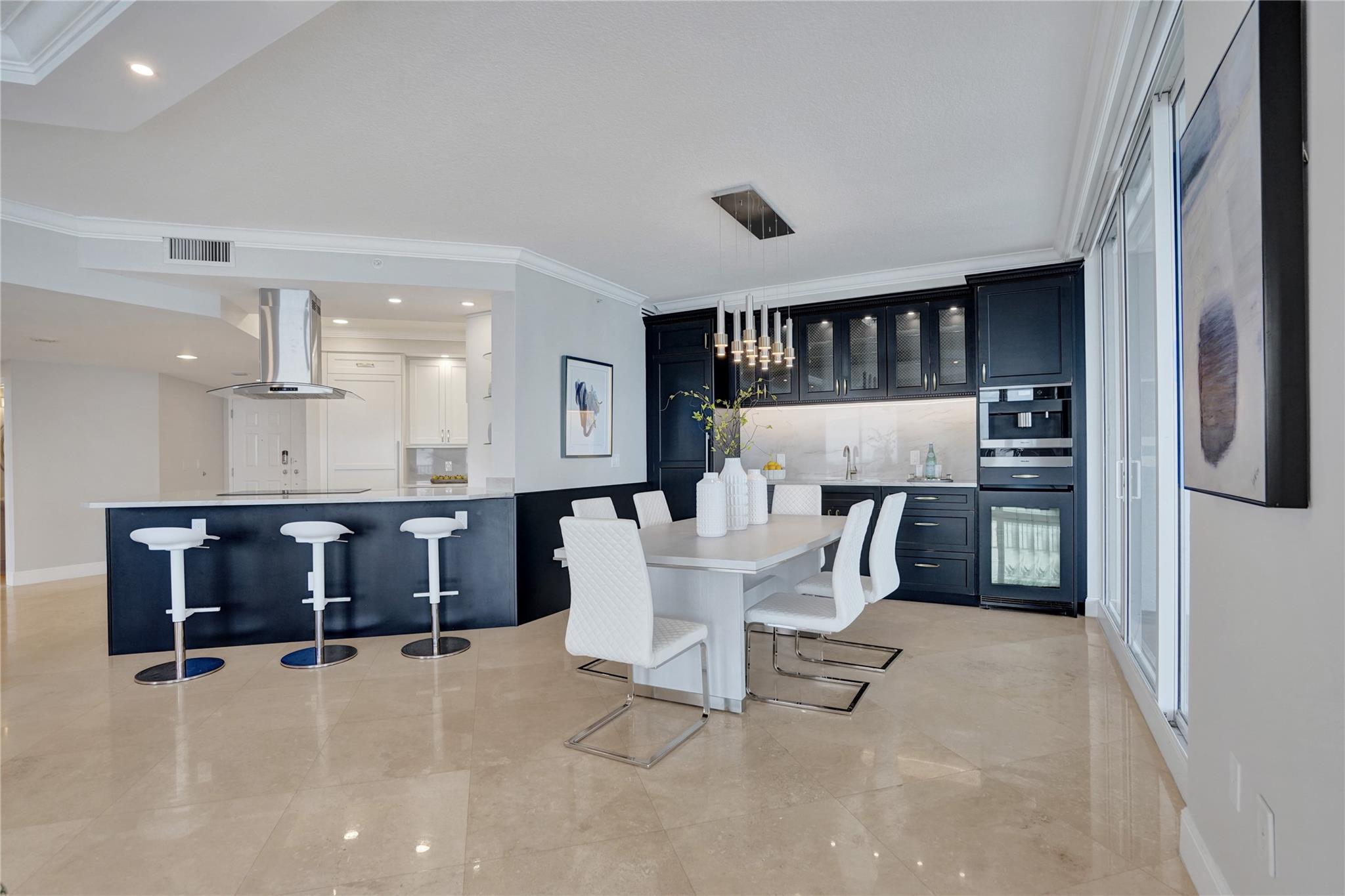Spectacular panoramic views of the ocean, Intracoastal and city await from this graciously appointed and sought after southeast corner unit. Featuring 2 bedrooms, two and a half baths, plus office/den and oversized 1,100 SF wrap around terrace with brand new tile. Kitchen renovated with high end appliances, quartz countertops and beautiful cabinetry including wet bar in dining area with Miele coffee system, warming drawer and wine cooler. Spacious primary suite with double closets and primary bath with double vanity walk-in shower and jacuzzi tub. Both the primary suite and second bedroom have direct to access to the terrace and share those amazing ocean & Intracoastal views. Brand new washer and dryer, California Closets throughout. Two garage parking spaces. Pet Friendly Building!