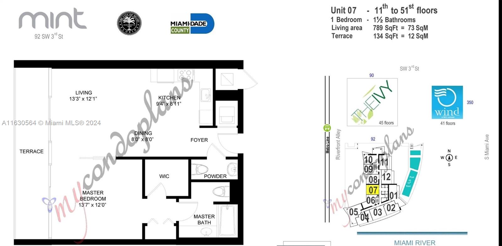 Seller offering Buyer incentive! Enclosed one-bedroom residence at Mint at Riverfront. Enjoy this bright and comfortable unit with large balcony for morning coffee or afternoon unwind overlooking beautiful Miami sunsets. Unit includes all appliances, spacious bedroom and main bathroom on a great floor. Building is fully amenitized and offers resort-style amenities great to use all year round. Easy in and out access from main travel streets without the Brickell traffic headache. Walking distance to top of the line restaurants and entertainment, BCC and Kaseya center and minutes to connect to MetroMover and TriRail. Enjoy Miami living in your own secluded oasis.