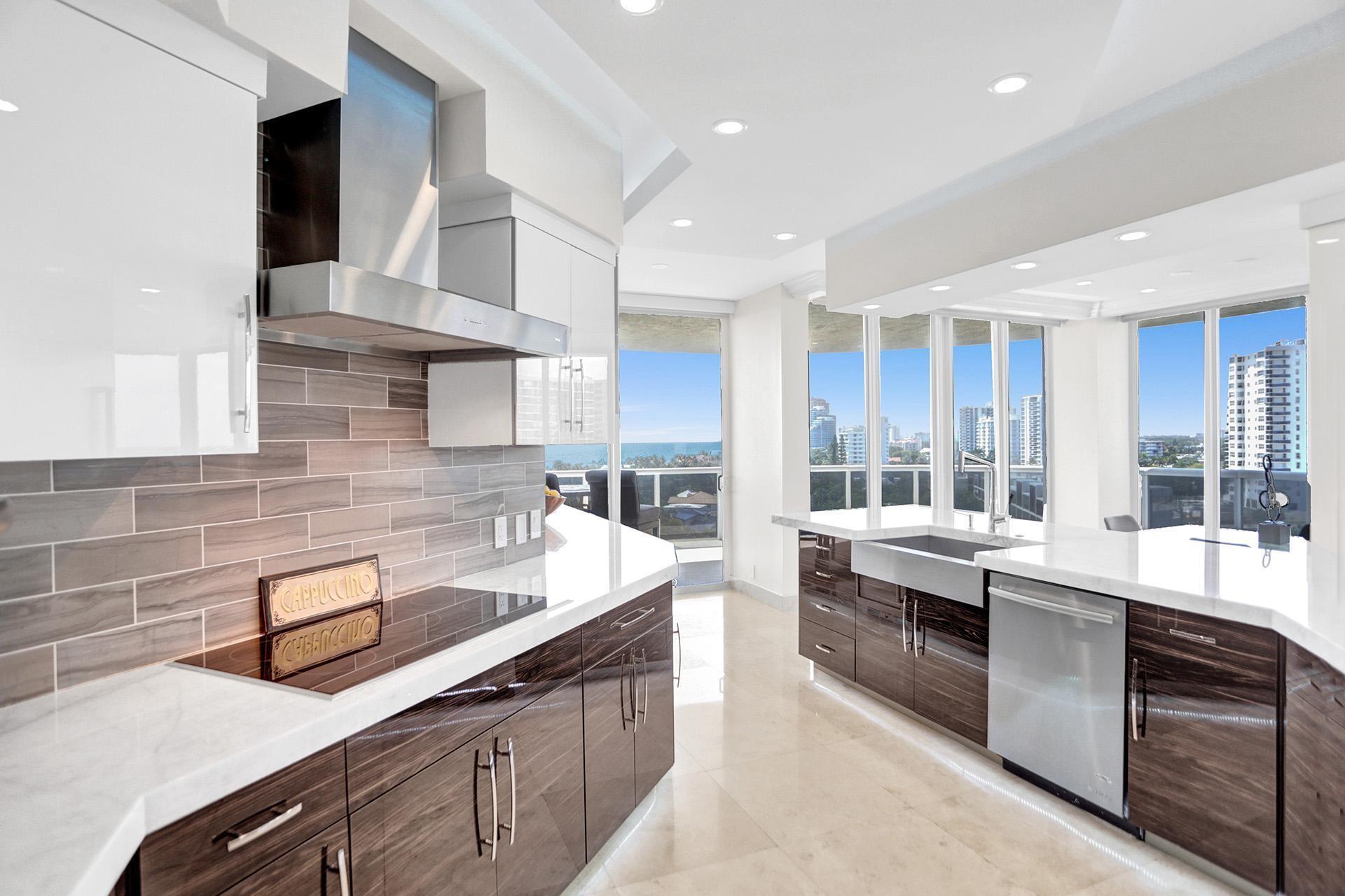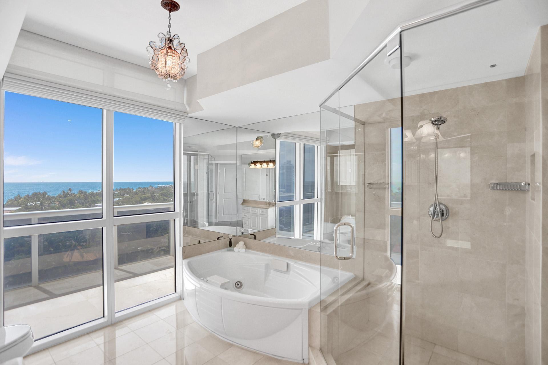 Stunning contemporary 3 bedroom 3.5 bath condo with direct ocean, city and Intracoastal views. Two Expansive wraparound balconies. 9' ceilings w/marble floors in living areas. Gorgeous renovated contemporary kitchen with endless SE views. Architectural ceilings with LED lighting. Private elevator entryway. Gated complex with 24/7 security and manned front desk. L'Hermitage is one of Fort Lauderdale's most sought-after high-rise complexes sitting on 10 acres overlooking the ocean. Close walking distance to an array of restaurants and shops. Resort-style complex. Amenities include valet parking, tennis courts, 2 pools, poolside cafe, fitness center, billiards room, card room and library.